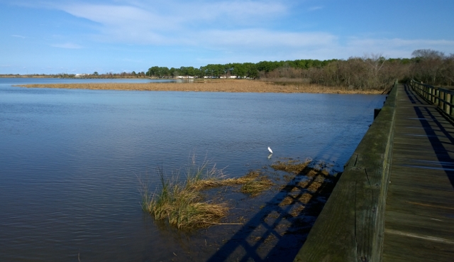 Meaher SP Boardwalk and Campground with Snowy Egret