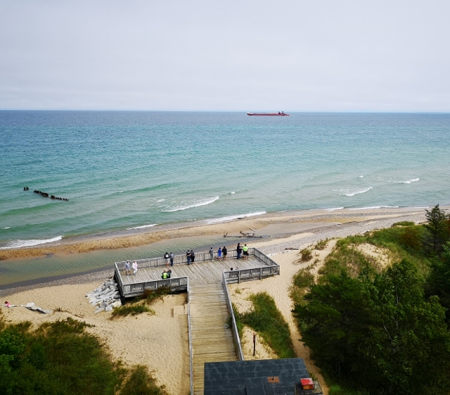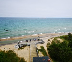 View from Lighthouse with ship passing by