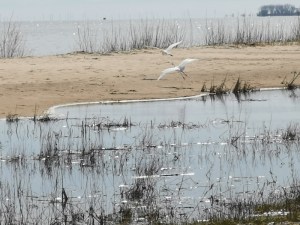 Great Egret chasing another one away