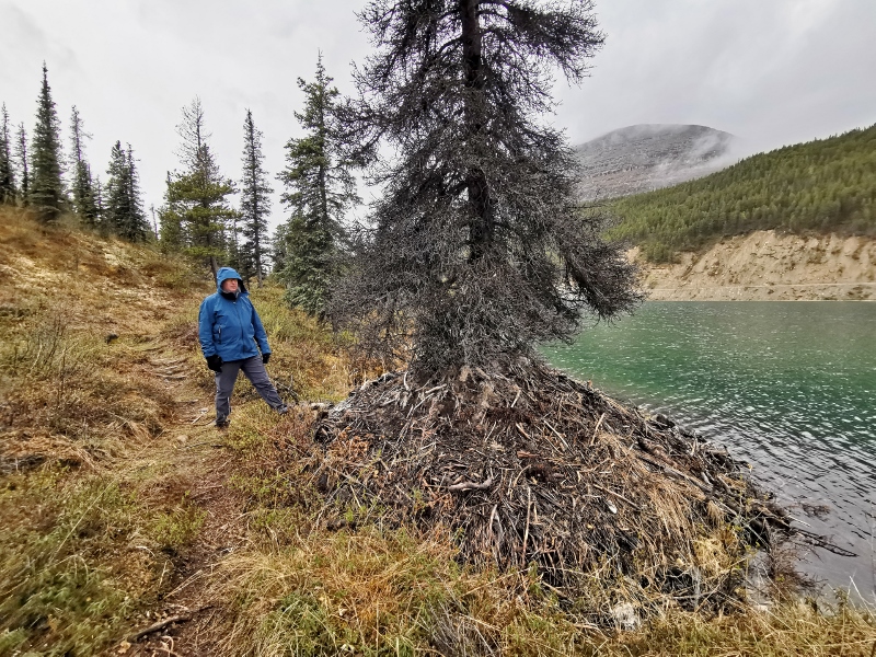 Beaver House at base of tree
