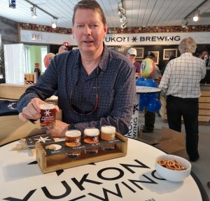 Enjoying a flight of Yukon Brewing Beers