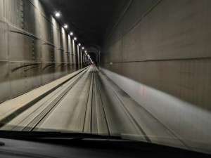Train Tunnel to Whittier, you need to leave large gaps between vehicles
