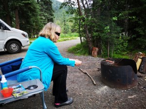 Sharon cooking our Reindeer Polish Sausage