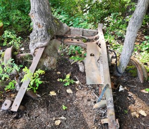 Tree grown right around a truck frame