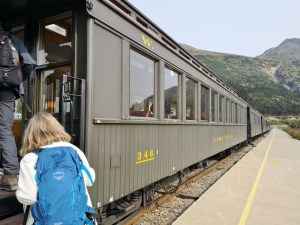 Sharon boards our train car