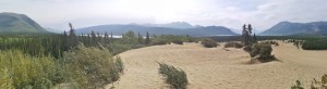 View from top of dunes – Nares Lake on left, Bennett Lake on right