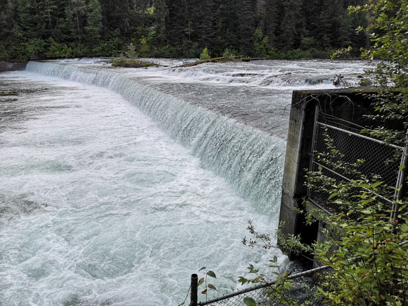 Artificial waterfall to help force the salmon up the ladder