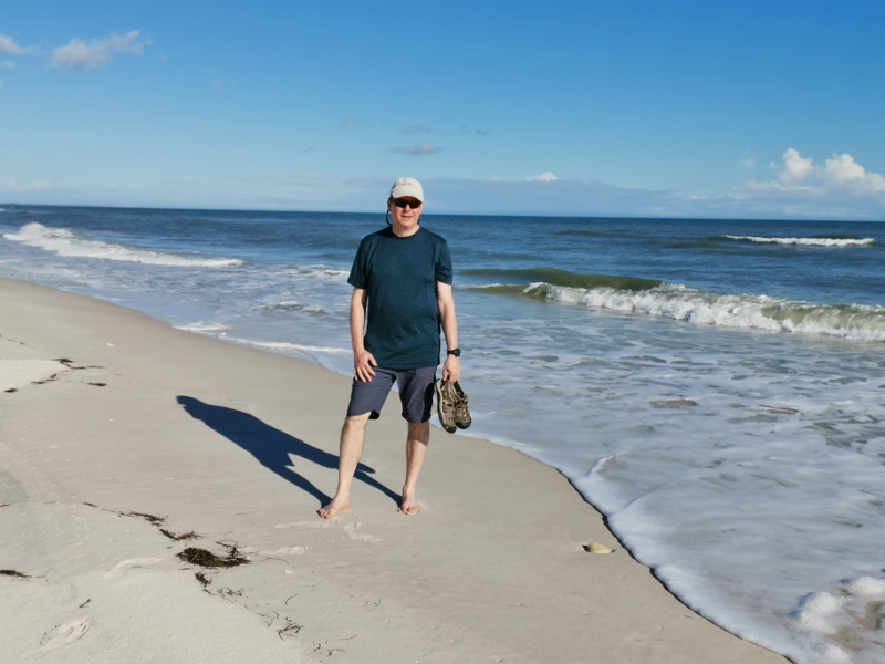 Finally barefoot on the beach on our last day