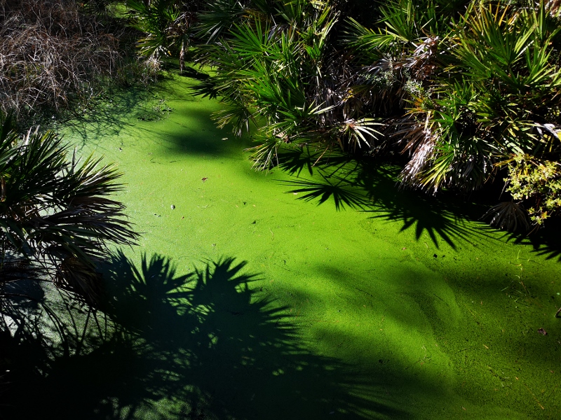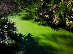 Vivid green algae on swamp surface
