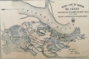 Confederate Red line earthen fortifications versus Union Blue line batteries