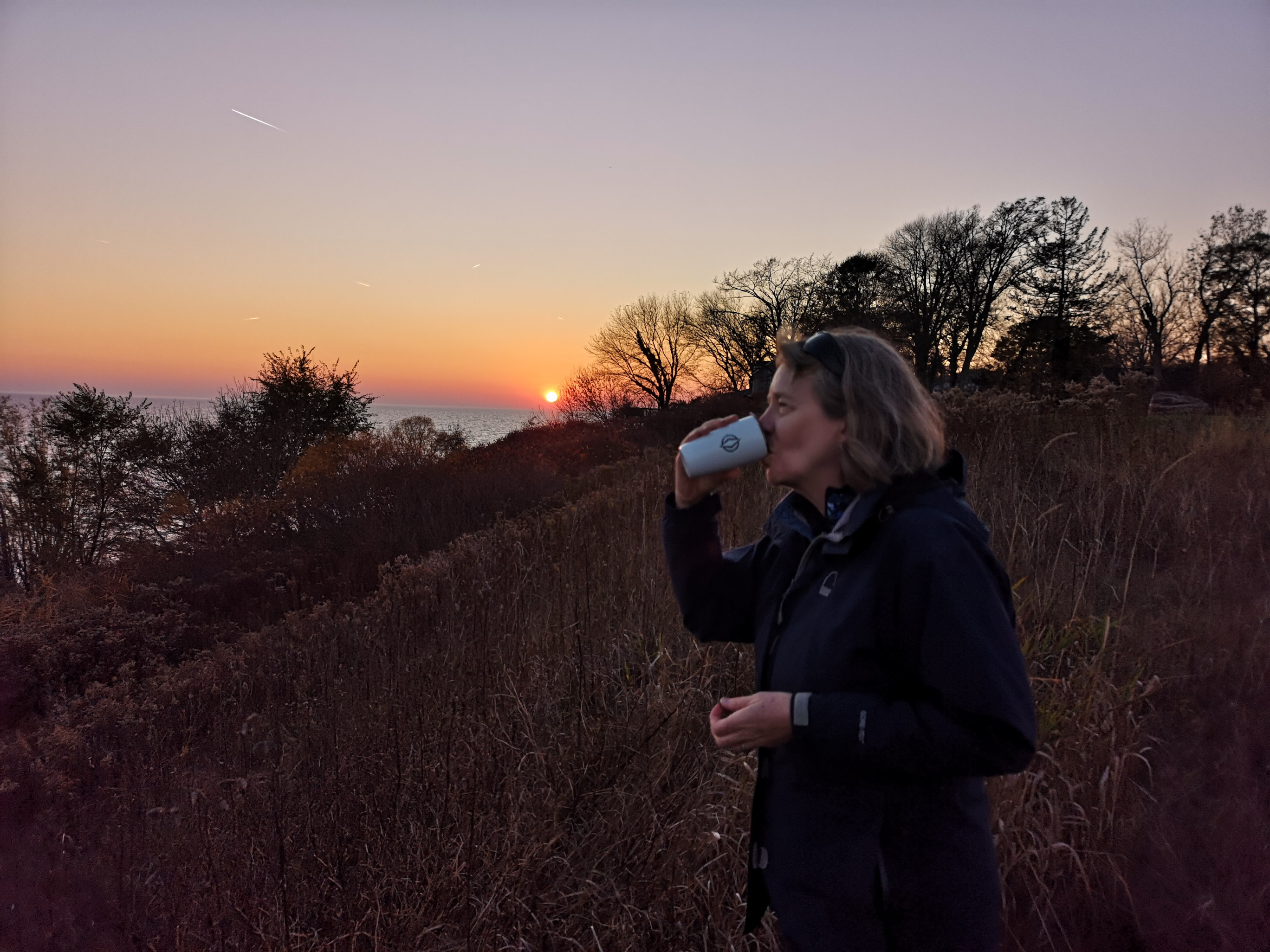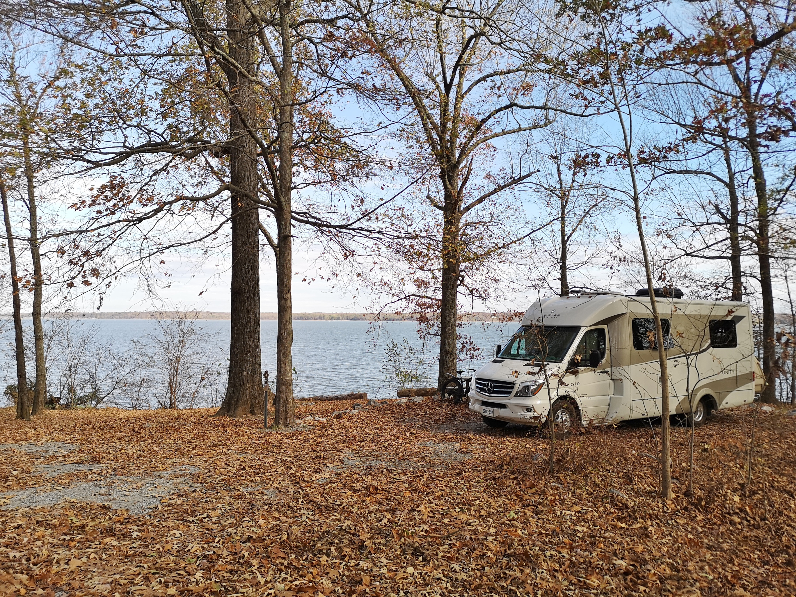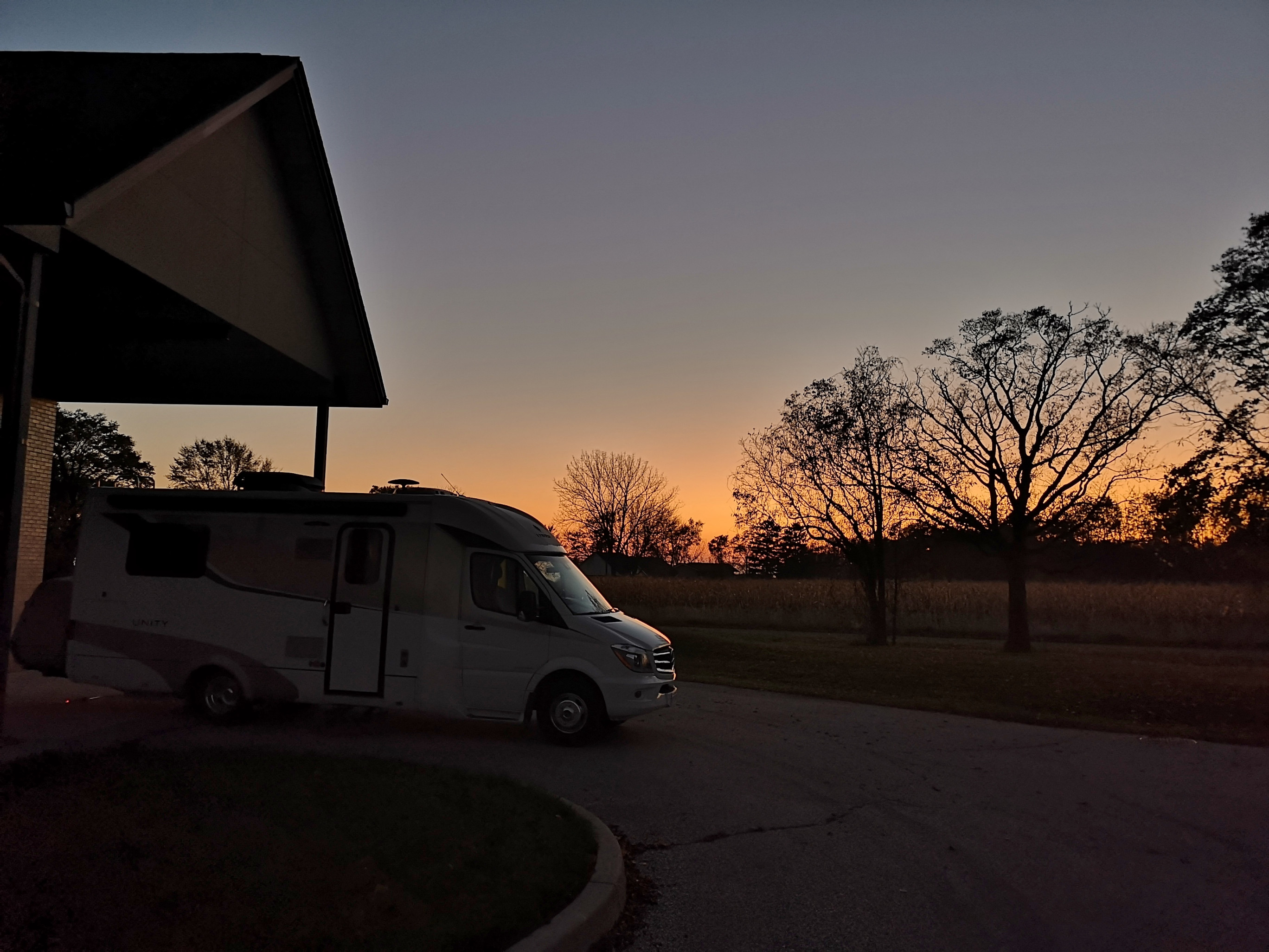 This will be our 10th major RV trip and we decided to head south earlier than in the past to avoid the typical November snowfall we get at home. As usual we misjudged some of our last-minute preparation steps, so it meant we had to rush to get to our first stop (before they closed) which was a Harvest Host location named Viewpointe Estate Winery along Lake Erie. When we arrived, we just had enough time to sample 2 flights of their various red wines and then buy some bottles and a large charcuterie tray for our dinner. Our favourite wine was their 2010 Cabernet Franc and it’s quite rare in Ontario to find a wine that old. After we got parked in their Harvest Host spot, we took a walk along the shore and then took our dinner and a bottle of wine to their benches so we could eat dinner and watch the sunset.
