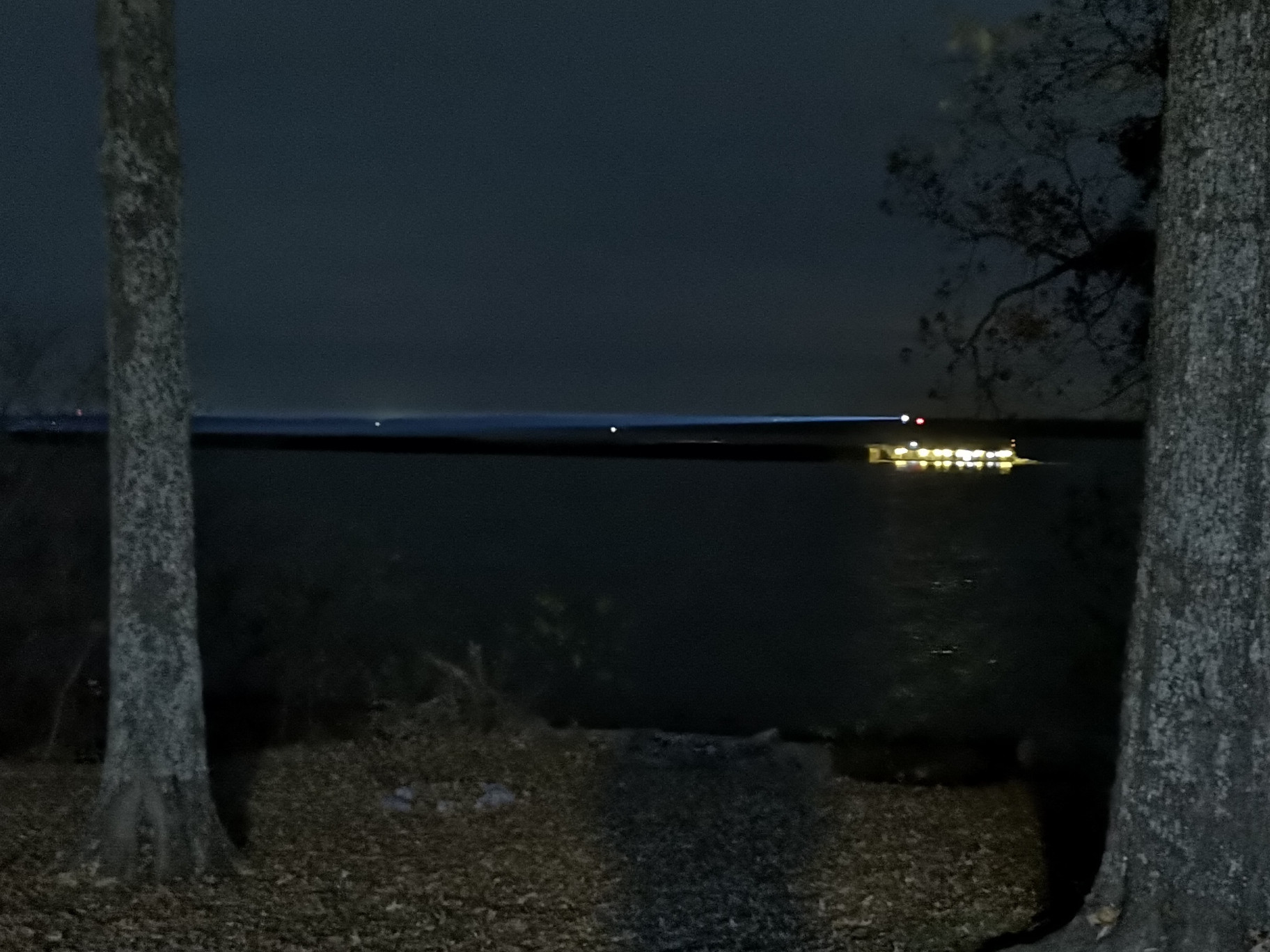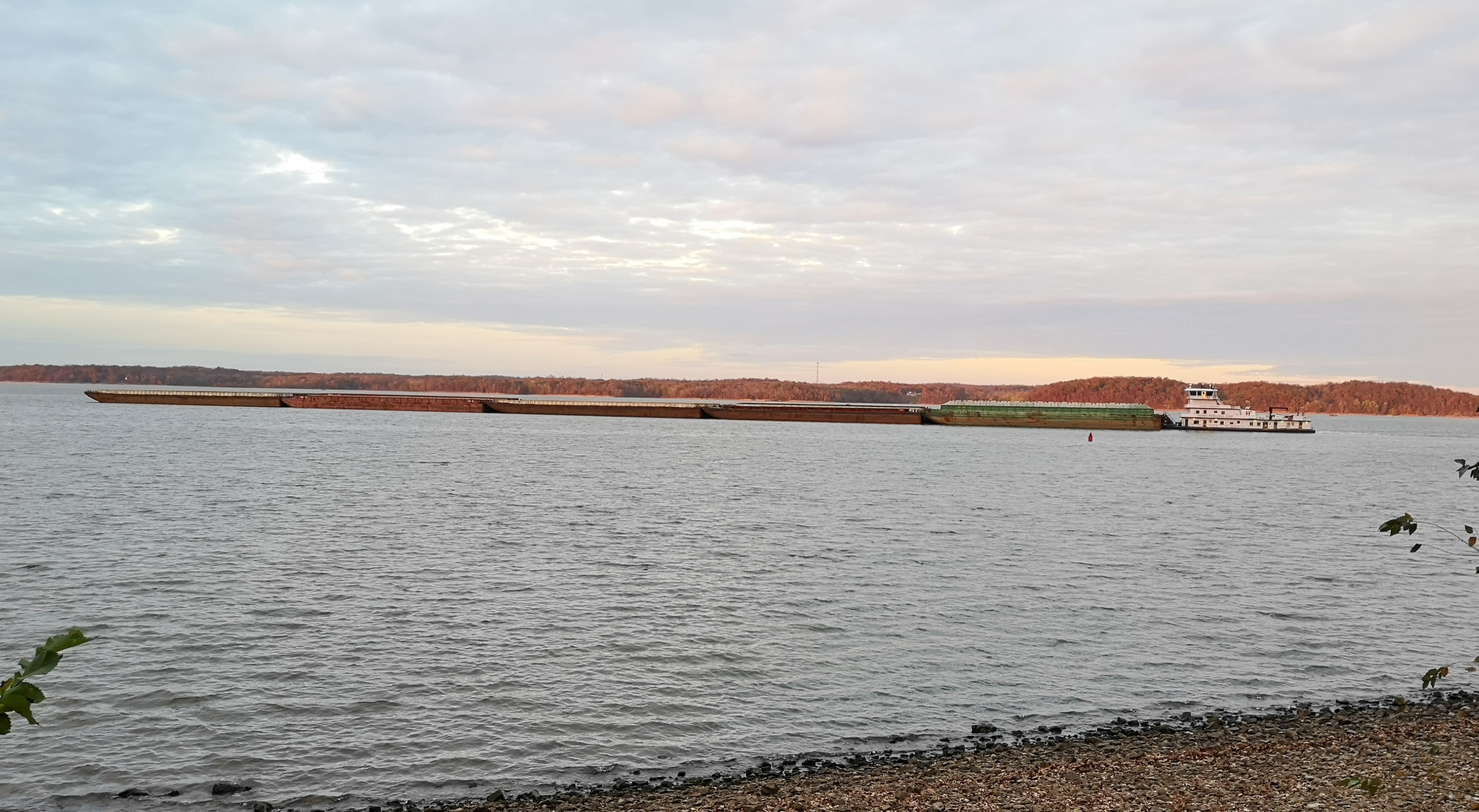 Our primary reason to go to Land Between Two Lakes was that they had some mountain bike trails for us to check out. When we arrived at the North Visitor Centre, we found out they were closed on Monday’s, so we back tracked to the Nickell Branch Campground and found a spectacular campsite by the lake and it was only $10 per night! Since the time fell back on the weekend it was dark when I was BBQ’ing our Salmon for dinner. I was confused because I could see this really bright light that seemed to be coming along the shore from the south of us. It turned out it was large tugboat pushing a 3 by 5 grouping of barges in front of it. They had a big spot light shining toward the front so the captain could see the front of the first set of barges. In the total dark he actually manoeuvred everything through the canal to the north of us. I’ve included a night time shot which wasn’t too great but also a daytime one as we saw many other barges over our 2 nights stay here.