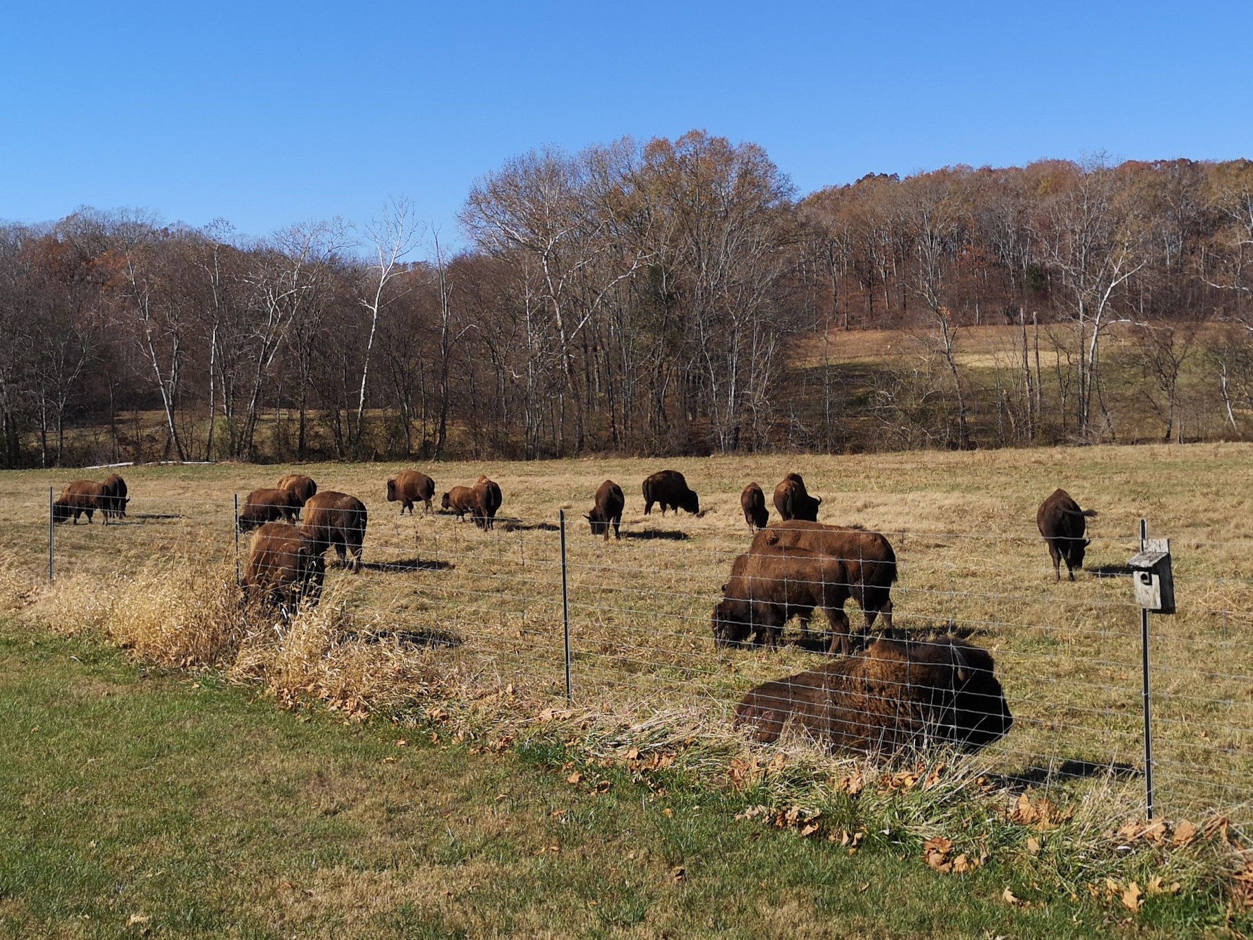 Before leaving Kentucky, we decided to drive the entire distance of Land Between Two Lakes. We did the drive around the Elk and Bison Prairie enclosure but only saw 3 bison and a bunch of wild turkeys. We did a quick visit to the main visitor centre and then stopped to see the Great Western Furnace (there were a lot of them in the LBL) that was used to make Iron Ore. We also saw some bison in the distance, so we went down a side road and got to see a whole bunch of them really close up.