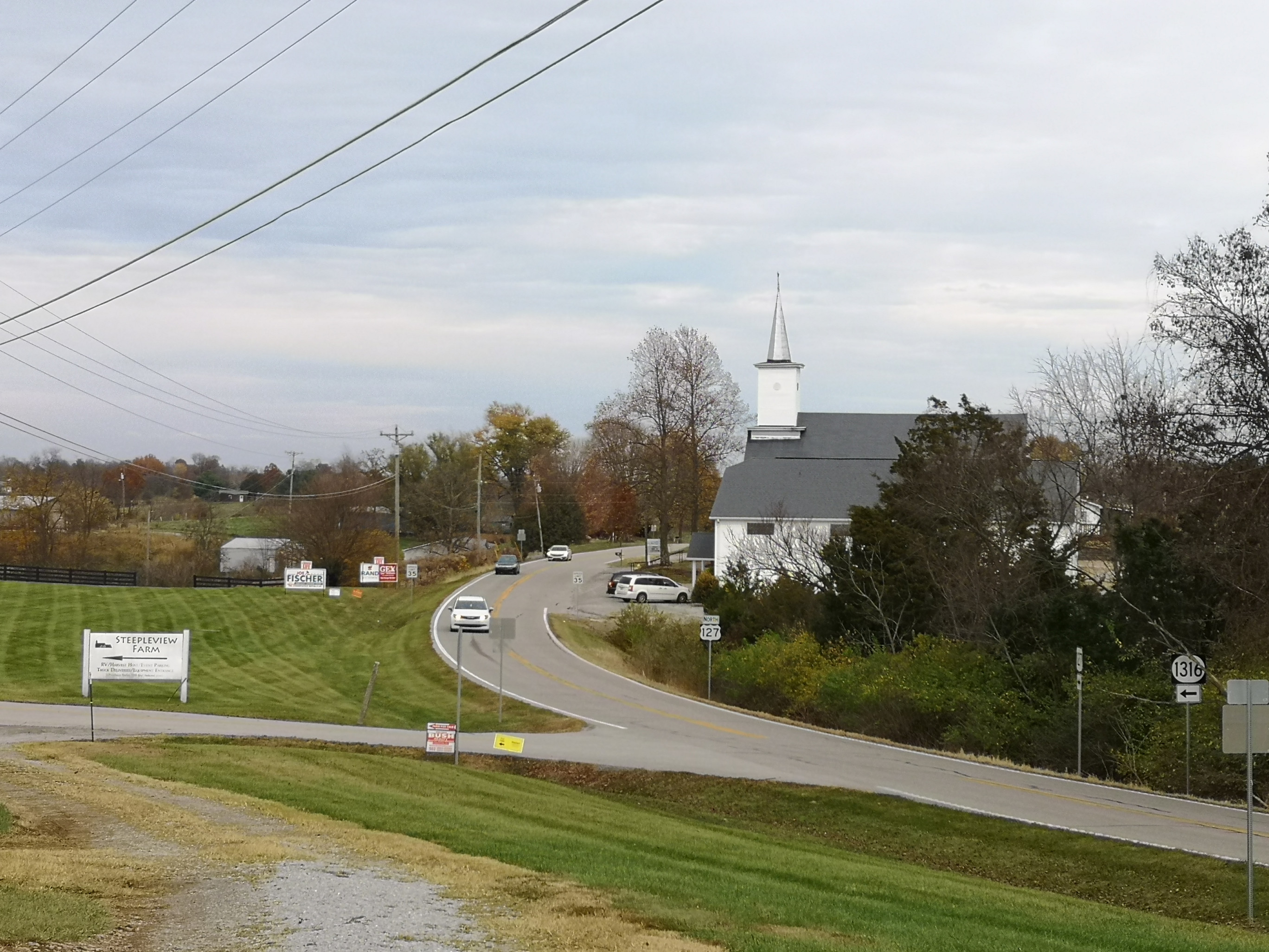 The next morning, we had some low-lying fog around the wind turbines as we headed to Windsor to cross into the US at the Ambassador Bridge. There must have been some sort of fishing derby going on as there were tons of boats under the bridge. The border wasn’t too busy, so I guess that’s why the agent asked all kinds of questions and even wanted to come in the RV to see what we had in the fridge. We had noticed that he took 2 dozen eggs from the trailer in front of us so maybe he was looking for something more that he could take home to his family for dinner😉 Needless to say, we had nothing in our fridge for him to confiscate since we had followed all the rules about no fresh meat, vegetables, or fruit. When we stopped to get fuel on the way South, we got a great shot of a hawk that was right on the driveway into the gas station. For our first day of driving south we had selected another Harvest Host which was a farm in Kentucky called Steeple View Farm. The host was extremely particular about his directions, and he asked us to call him when we were 1 hour away and then call again when exited from the Interstate so he could give us detailed directions to find his place. We had no problem finding the place where we were to park but we thought he would contact us that night to buy some of his farm products, but he didn’t call us. The following morning, we called him and eventually we connected so we could buy some products (the Bourbon Peach Jalapeno Pepper Jelly was excellent).
