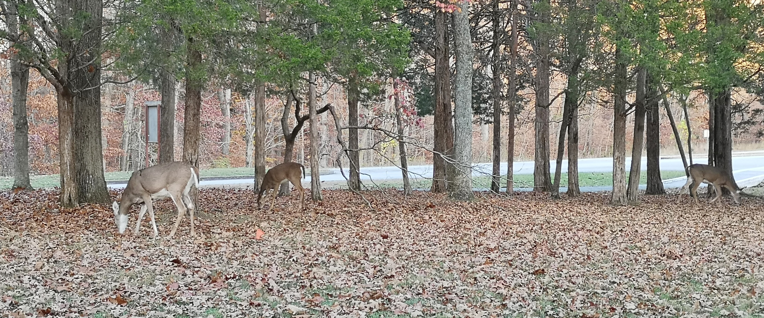 We continued on to Mammoth Cave National Park (NP) and when we arrived we were able to get a non service campsite for 3 nights. However, when we went to site 59 someone was already in it. We returned to the kiosk, and she instead changed us to site 82 which was fine since it was a pull through site, and it was closer to the visitor centre. Our night time temperatures were in the 50’s and the daytime were in the 70’s so we really didn’t need hook-ups. After we were setup, we walked over to see what tours we could book. Unfortunately, the 4 hour Grand Tour was already booked for the next 4 days so we opted for the 2 hour Historical tour in the morning and the Wondering Woods tour in the afternoon. We did a quick pass through the exhibits before they closed. Mammoth Caves is the worlds longest cave with currently 426 miles of passageways mapped and they believe they will find even more connections. It’s very different than what you imagine as a cave because the sandstone layer on the top stops the water from dripping through the limestone to form stalagmites and stalactites. Instead, the underground water carves out long passageways of various shapes. After the exhibits we headed back to our campsite and on the way saw one of the last trains that used to bring people to the caves starting in 1886 (it ran for 50 years). We also saw some deer looking for food as we went to have our BBQ salmon dinner.