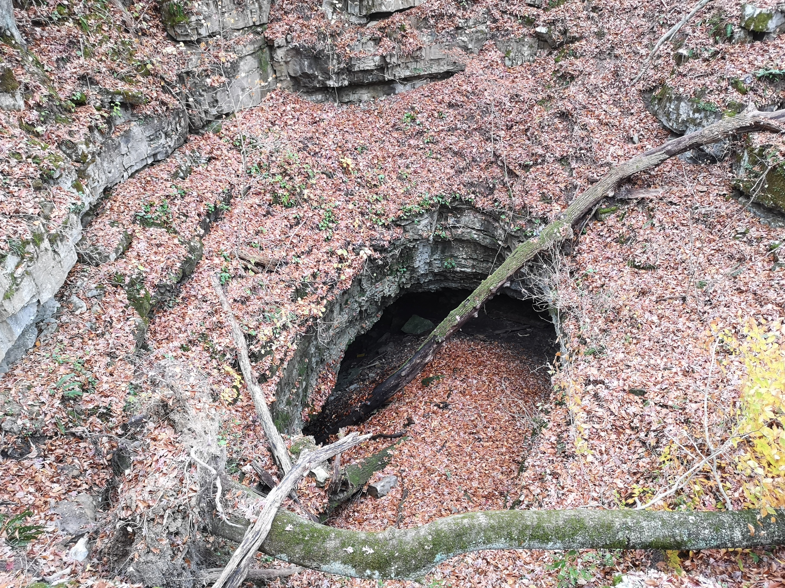 We wanted to bike the old railway line but it was a rainy morning. We decided to stay another night so we could have a sunny day for our ride. While working on the blog we had a four-legged visitor come by our campsite. There were a lot of deer in the area. We must have had something good around our site because they liked digging around in the leaves day and night! There was a break in the rain in the afternoon, so we went for a “short walk” as Sharon called it. Our “short walk” ended up being about 9km. From the campground we took the trail to Echo River Springs and the Green River Ferry crossing. Unfortunately, the water levels were too low so the ferry wasn’t operational. Due to the geology of the area, there are a few springs that are fed by underground water sources. Our “short walk” ended at Dixon Cave, a protected bat cave!