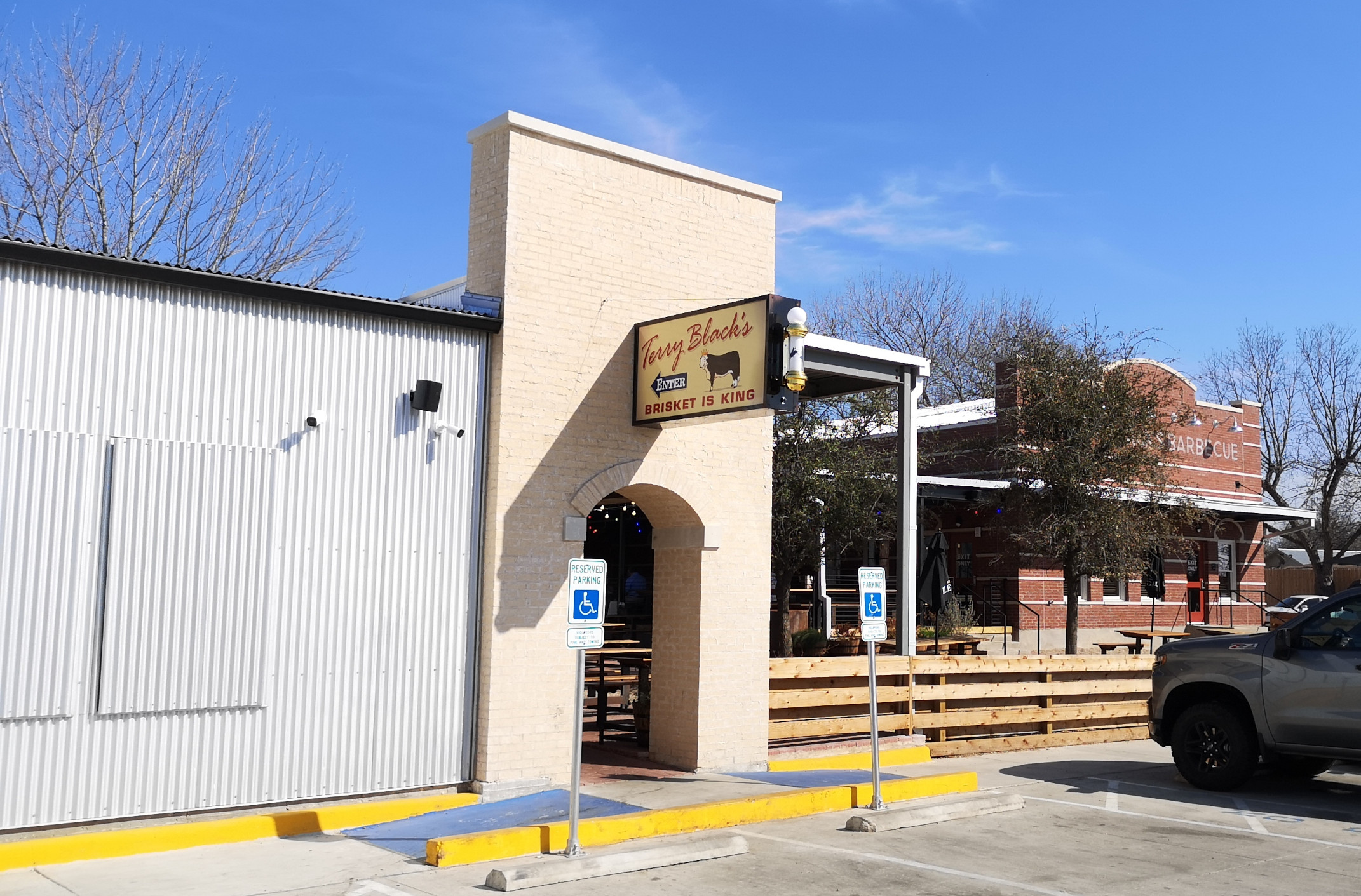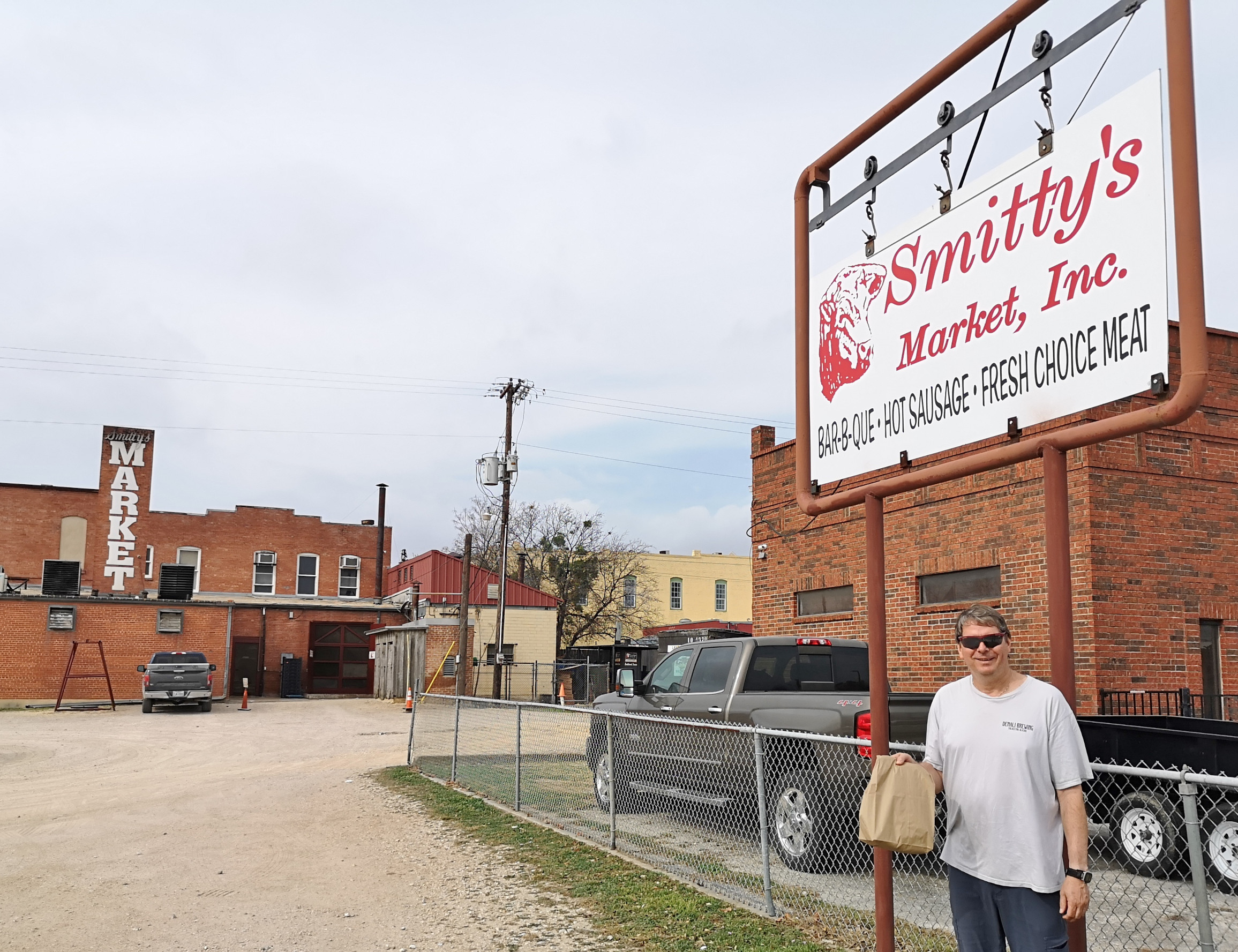 The next morning it was just us and the cows and the dogs at the harvest host. We headed into Lockhart and parked by the old jail so we could walk around the historic downtown district. It was Martin Luther King Jr Day so several buildings were closed. From a distance we did see part of the March of honour for MLK. Lockhart was officially declared the BBQ capital of Texas, so it wasn’t long before we found Smitty’s Market. It was in a very old building with the BBQ pits in the back that use the traditional open pit fire. Even though it was early we got some brisket and sausage. The brisket was very good, the sausage was ok.