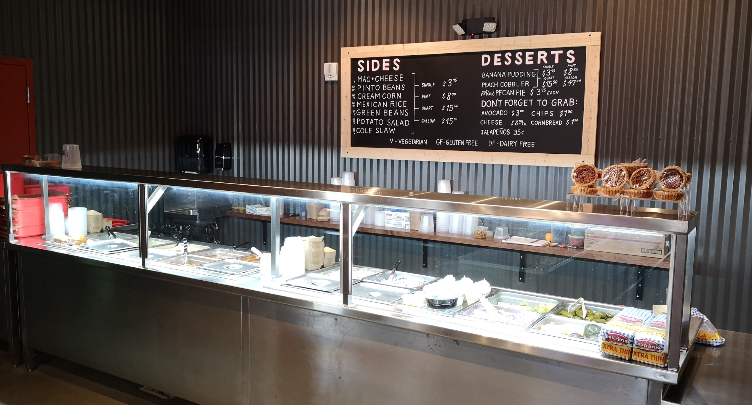 We only had one night at this park and on the way out of town we went to Terry Black’s BBQ for lunch. They use a different smoking method here. The pitmasters explained to us that they had large propane tanks modified and turned them on their side so the fire on the one end and a chimney on the other which drew the smoke drift over the meat for a nice slow cook. They go through 1 to 2 cords of wood per day! This was by far our favourite BBQ place of the 4 that we tried. The huge Beef Rib melted in your mouth, the brisket was good, the Jalapeno and Cheese sausages were the best we tried. They had lots of sides to choose from and they would give you a small sample of them so you could pick what you liked best, we picked the potato salad, mac ’n’ cheese, and green beans that had excellent spices on them. There was no way we could finish it all, but leftovers are good when you’re travelling in an RV😉
