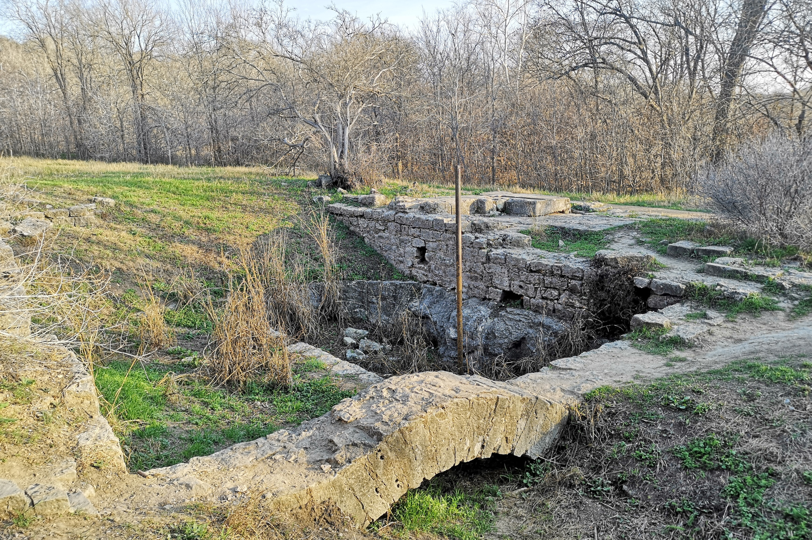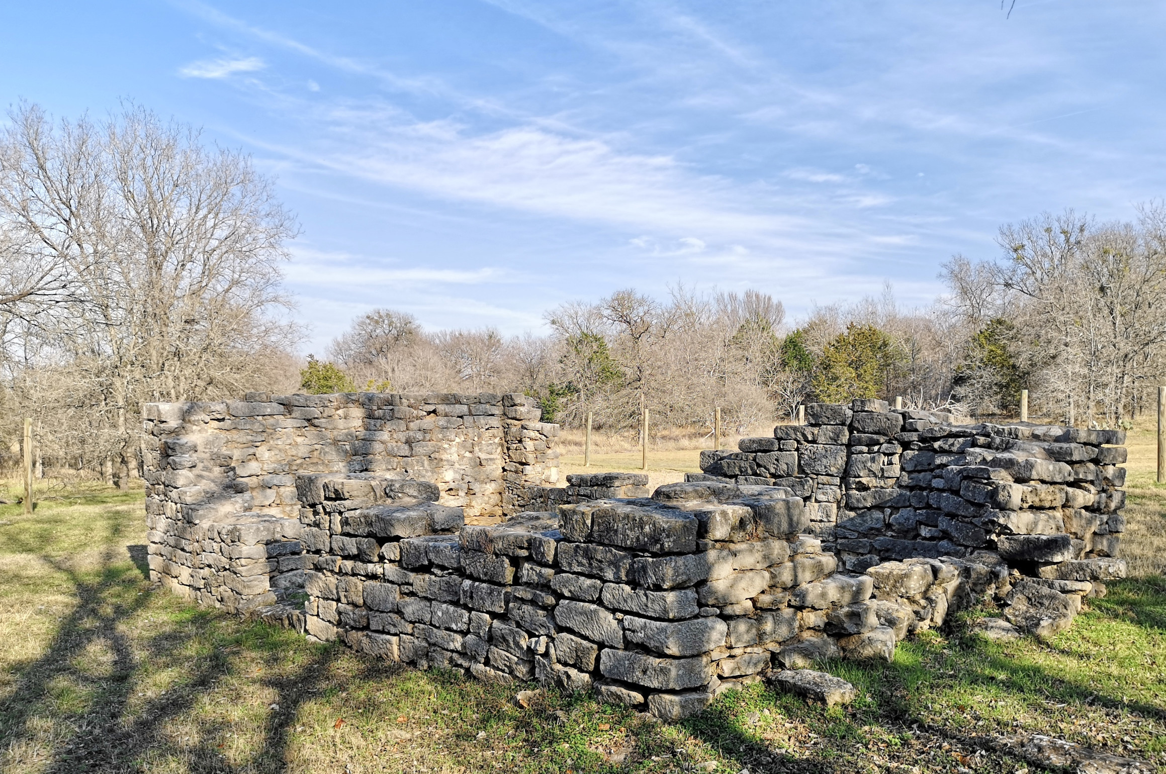 We finally got checked in and then went to hike the rest of the trails, Hilltop, Chisholm, Comanche Loop, Rattlesnake Run, and Caddy (4.5 kms). There is evidence of the CCC 1930s work all along the way including the 2 seater latrine ruins, water tower and recreation hall. We were above the historic 9-hole golf course where there used to be a tee on the hill. We took the Caddy’s trail down to the golf course, in the day, the golfers took a tram down after teeing off.