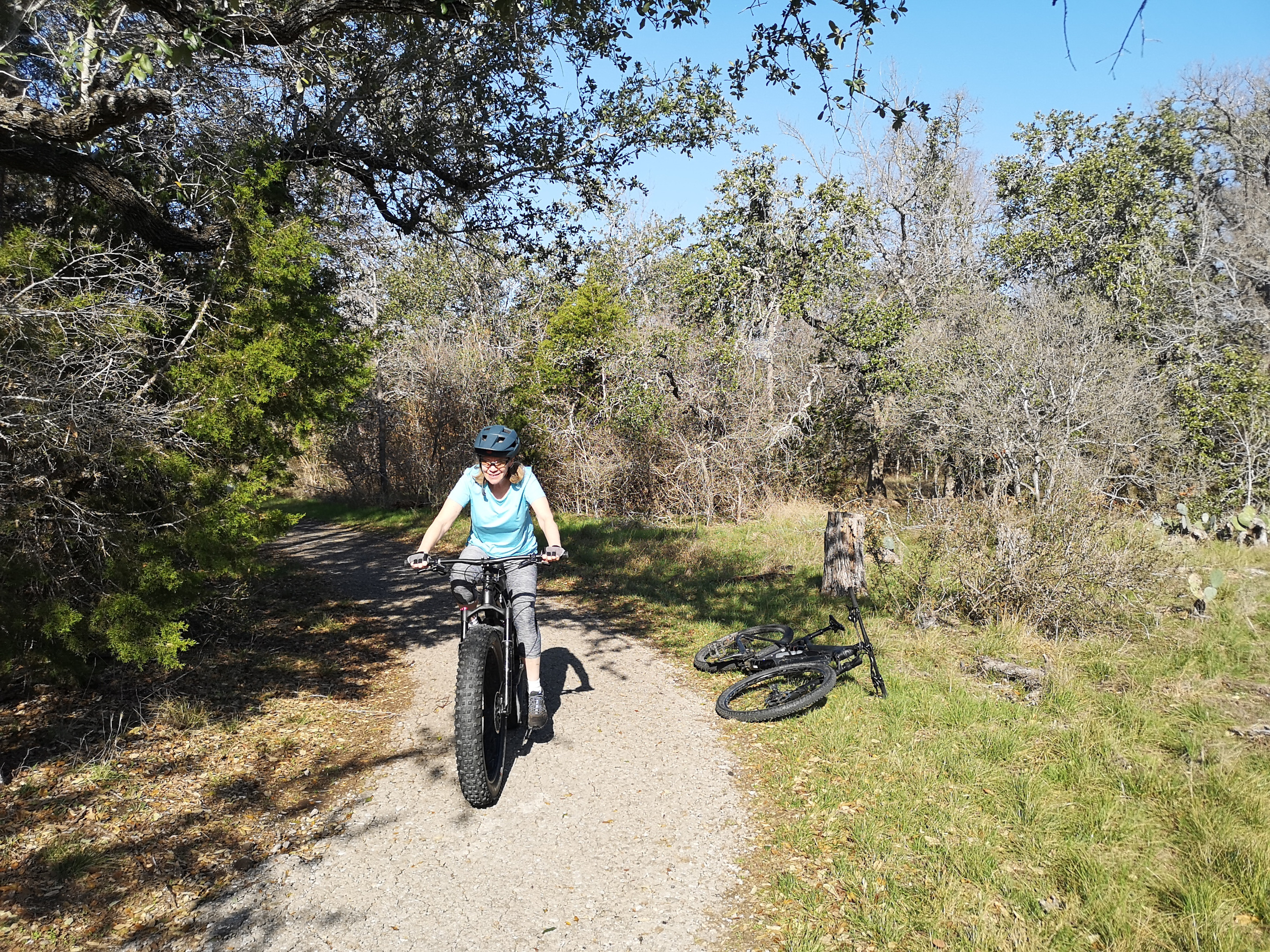 Over the next two days we biked the trails. The first day we did 6 kms on Onion Creek Trail as this was the first ride since Sharon had recovered. The next day we did a 15 km ride on Onion, Homestead, Flint Rock, and Williamson Creek trails. This larger loop was more physical with hills and rocks, and I reached a top speed of 45 kph at one point. After this one we had completed all the trails in the park. We really liked this park due to the scenery and lots of trails.