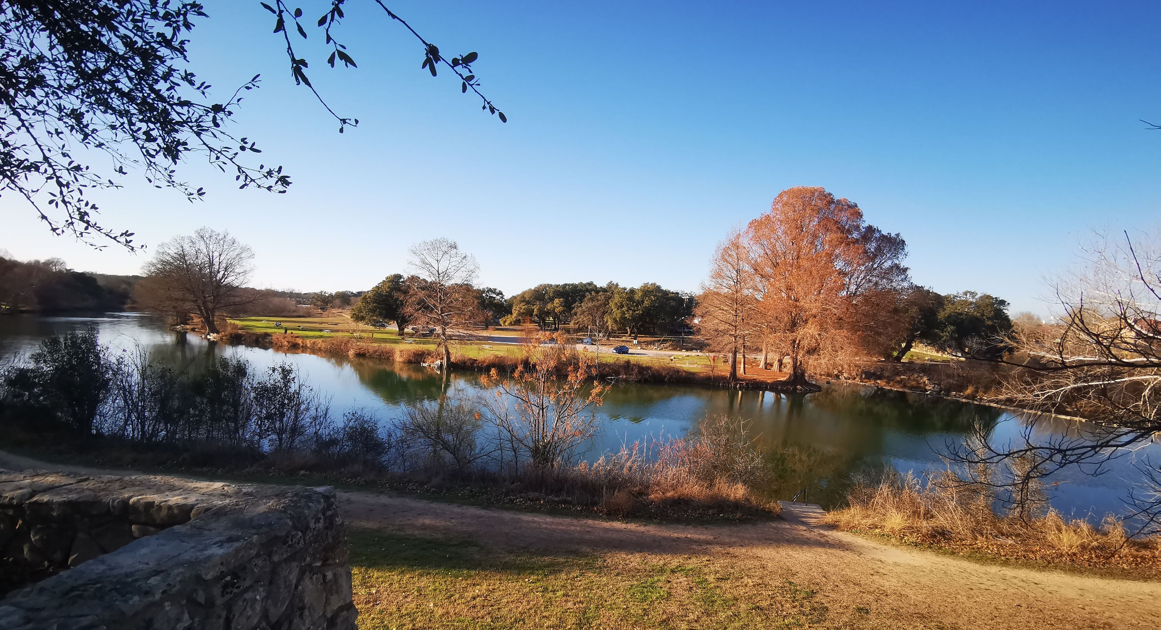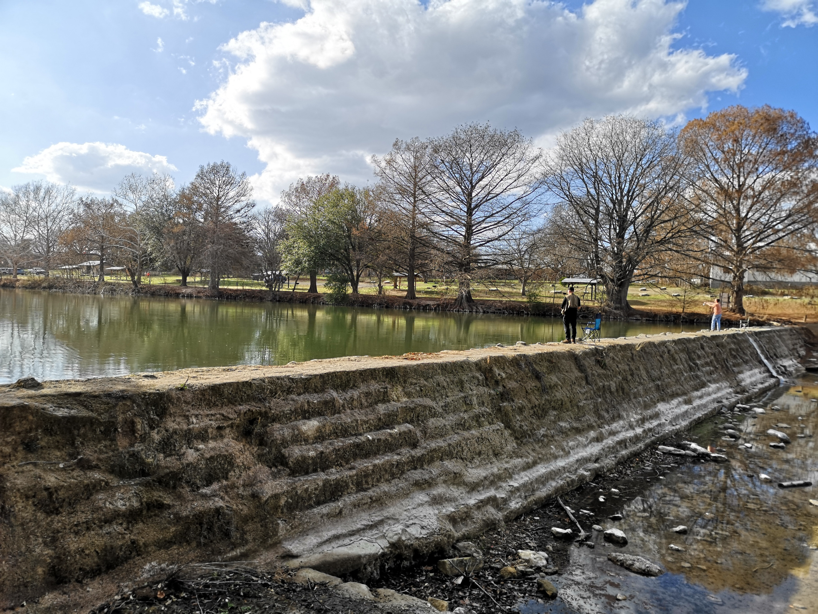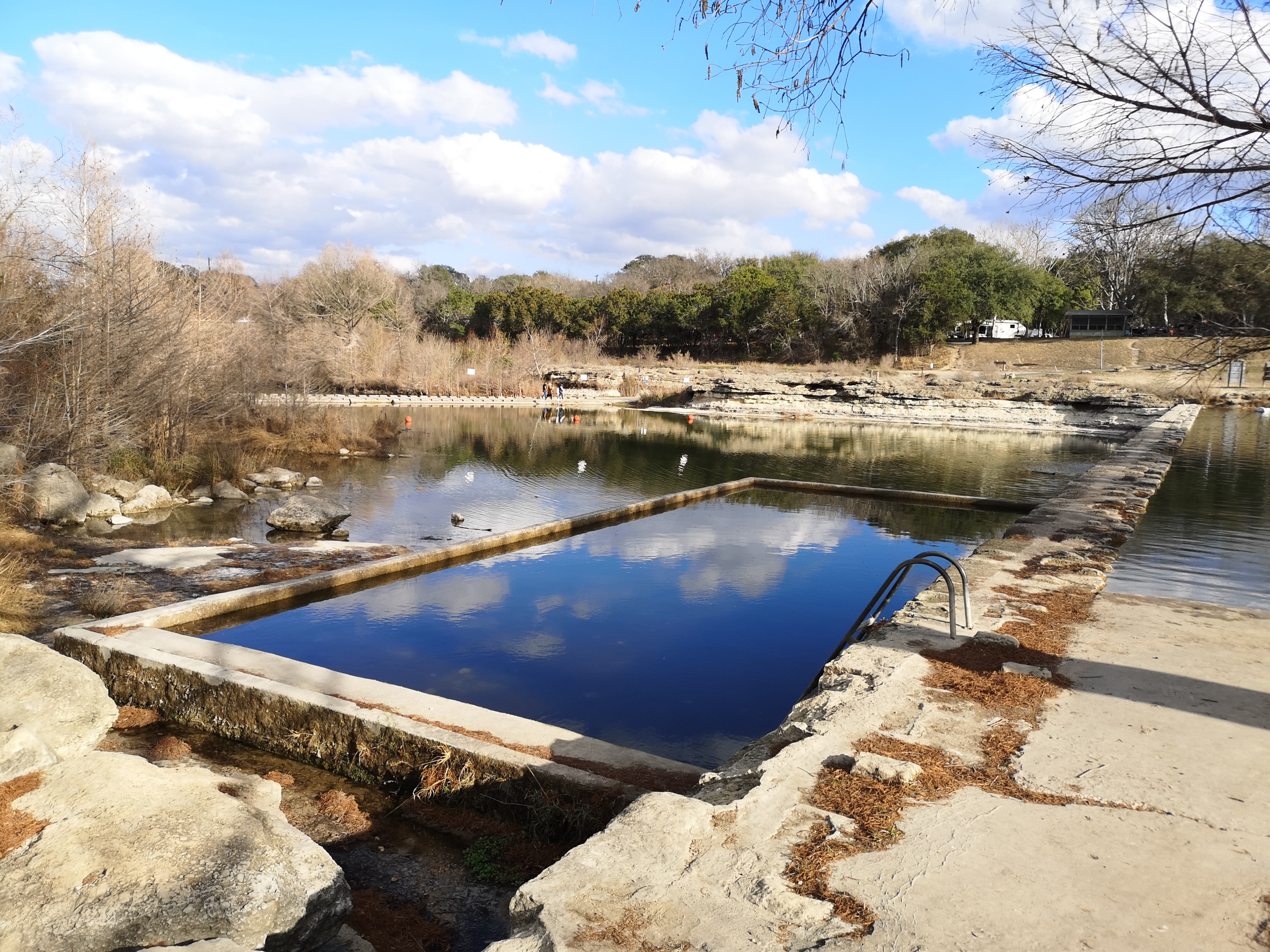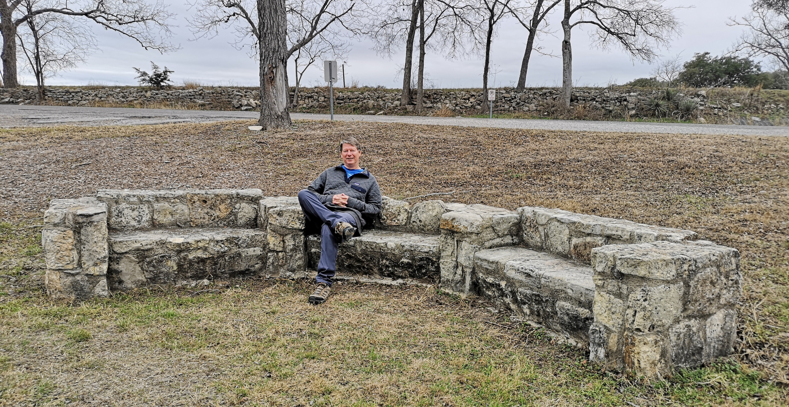Blanco SP is a relatively small park but we had picked it because we could get a campsite for the weekend. It basically straddles the Blanco River right in the town of Blanco and was built by the CCC in 1933. After checking in you drive across a low water crossing to get to the campsites. We had done some grocery shopping before arriving, so the first thing Sharon did was sample the really good Blue Bell ice cream we had purchased😉 Reason being, the RV freezer doesn’t keep ice cream hard so you need to eat it right away! After that we did a short walk around the campground and down the river to see some of the CCC built structures.