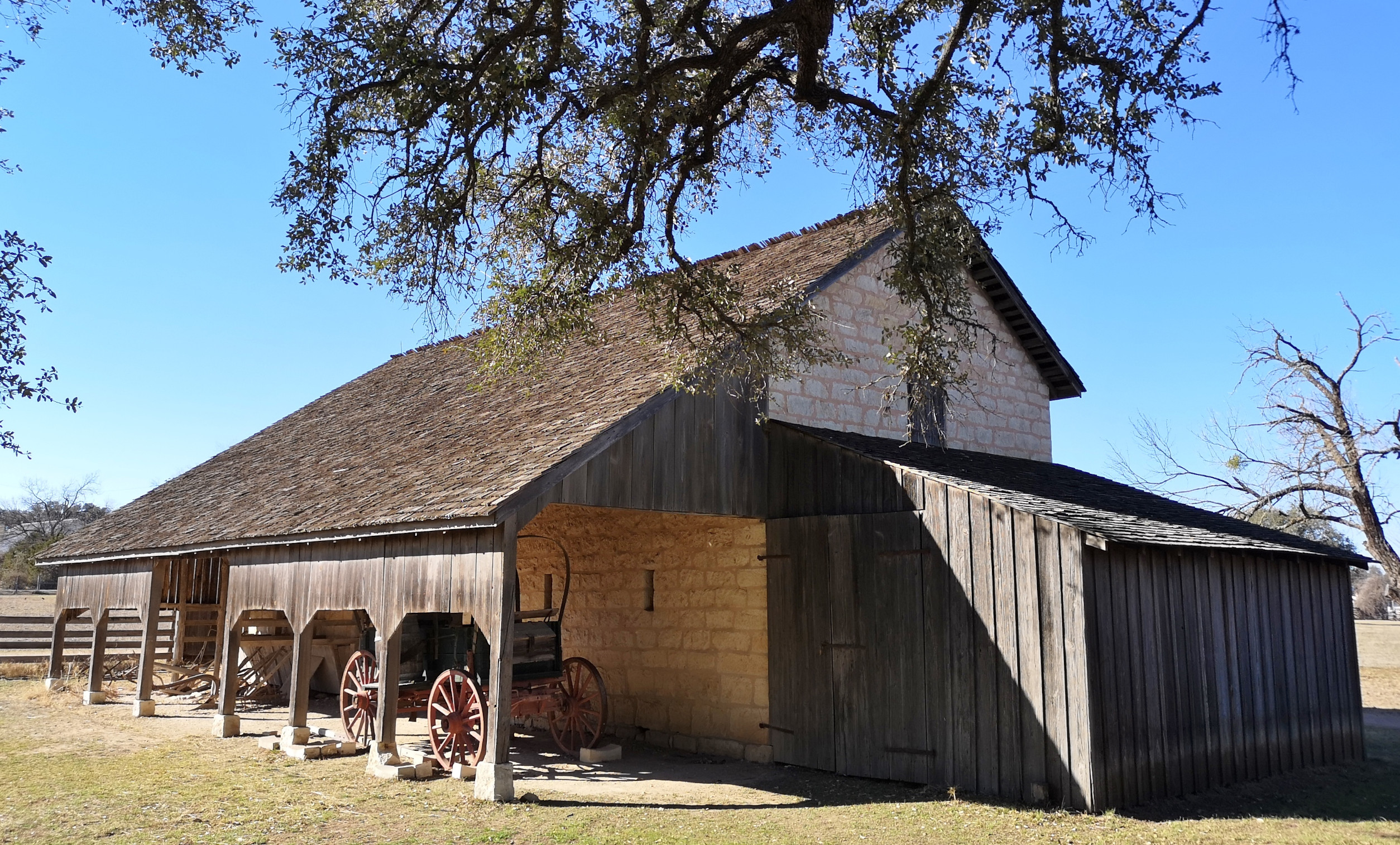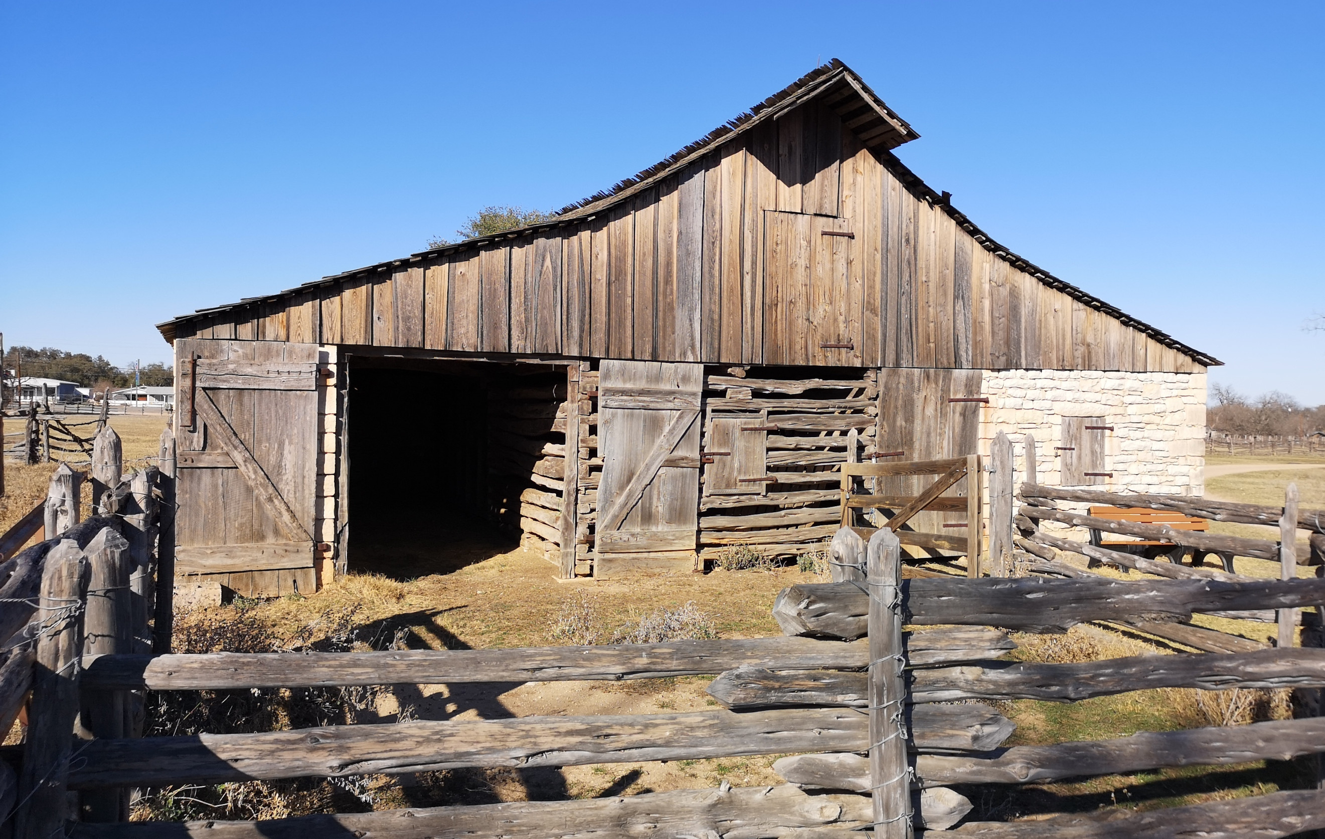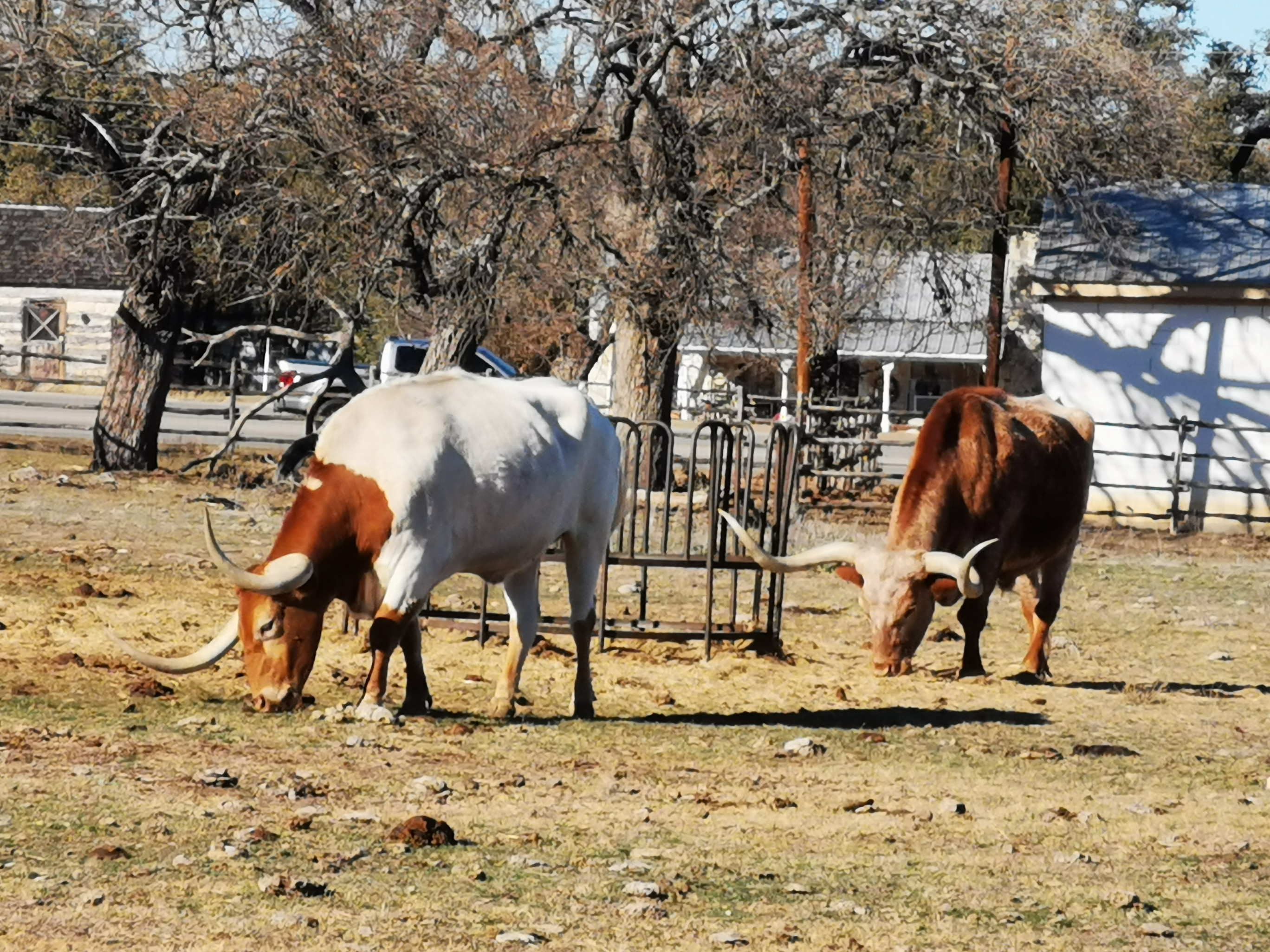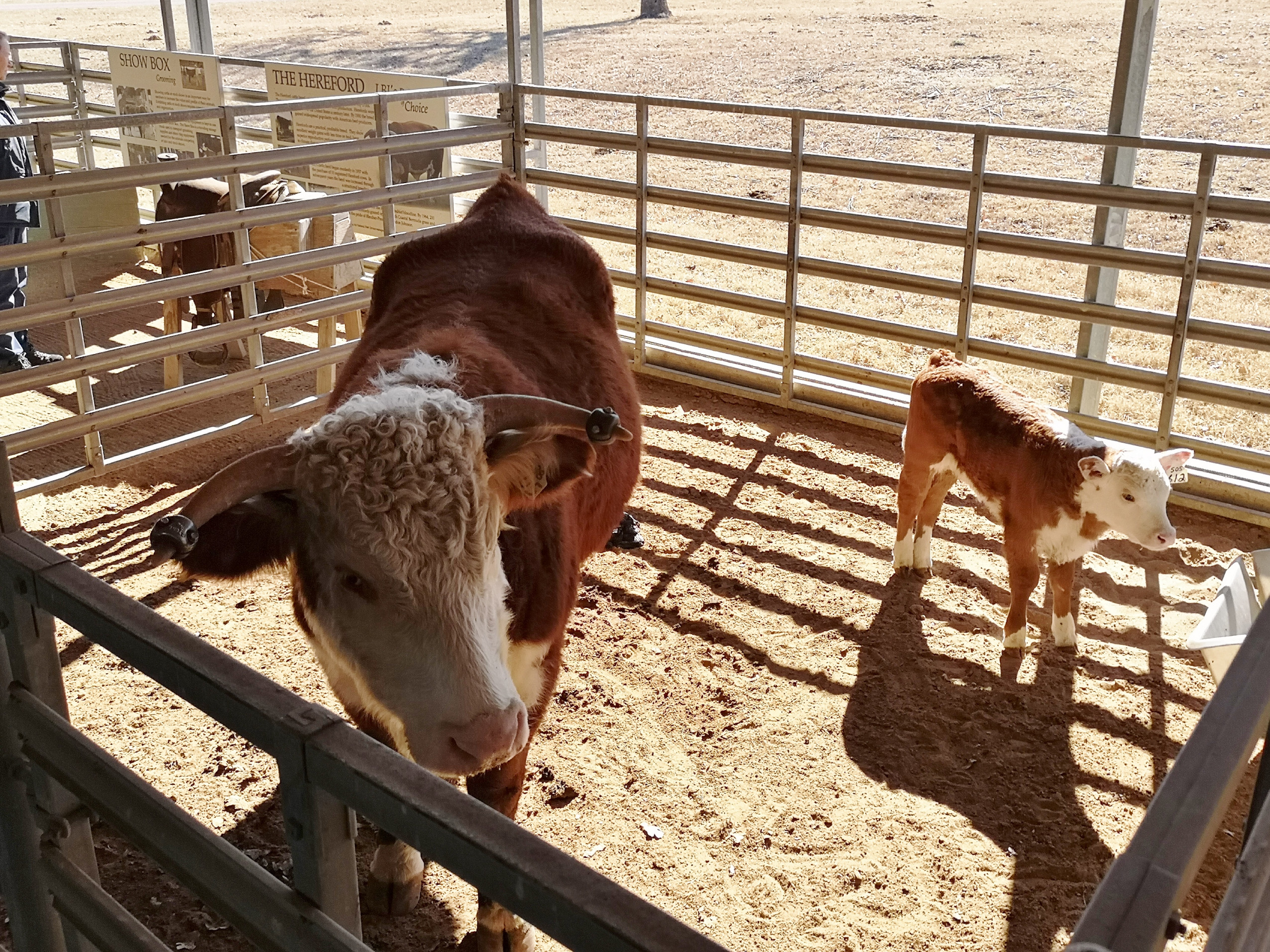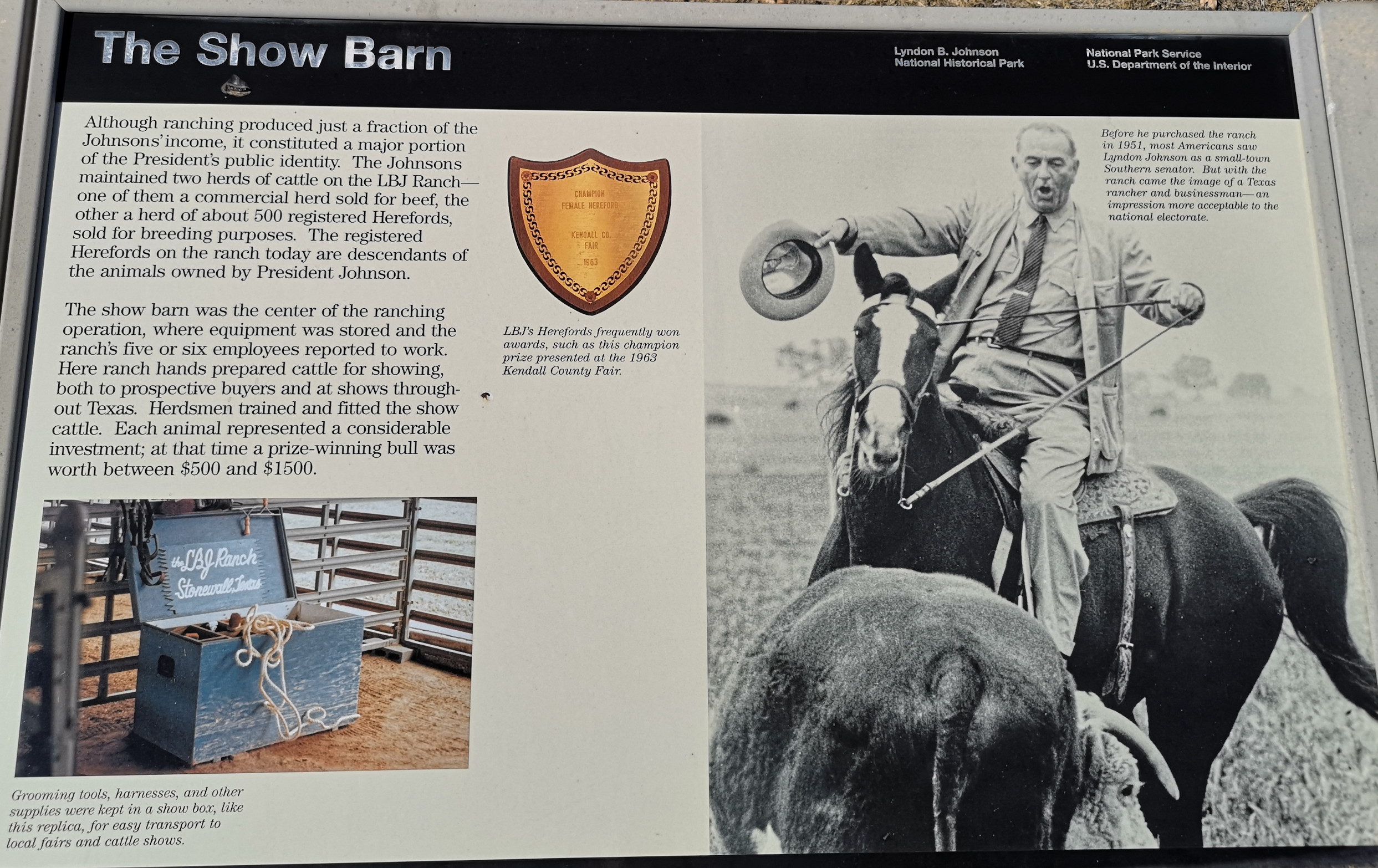 - Show Barn that was built for the care and training of cattle. They used to show the longhorn steers in competitions and the Herefords were raised for breeding. In the barn we met a ranch hand and he explained how LBJ had them use weights on the Herefords horns to get them to grow in a downwards direction as he felt they showed better.