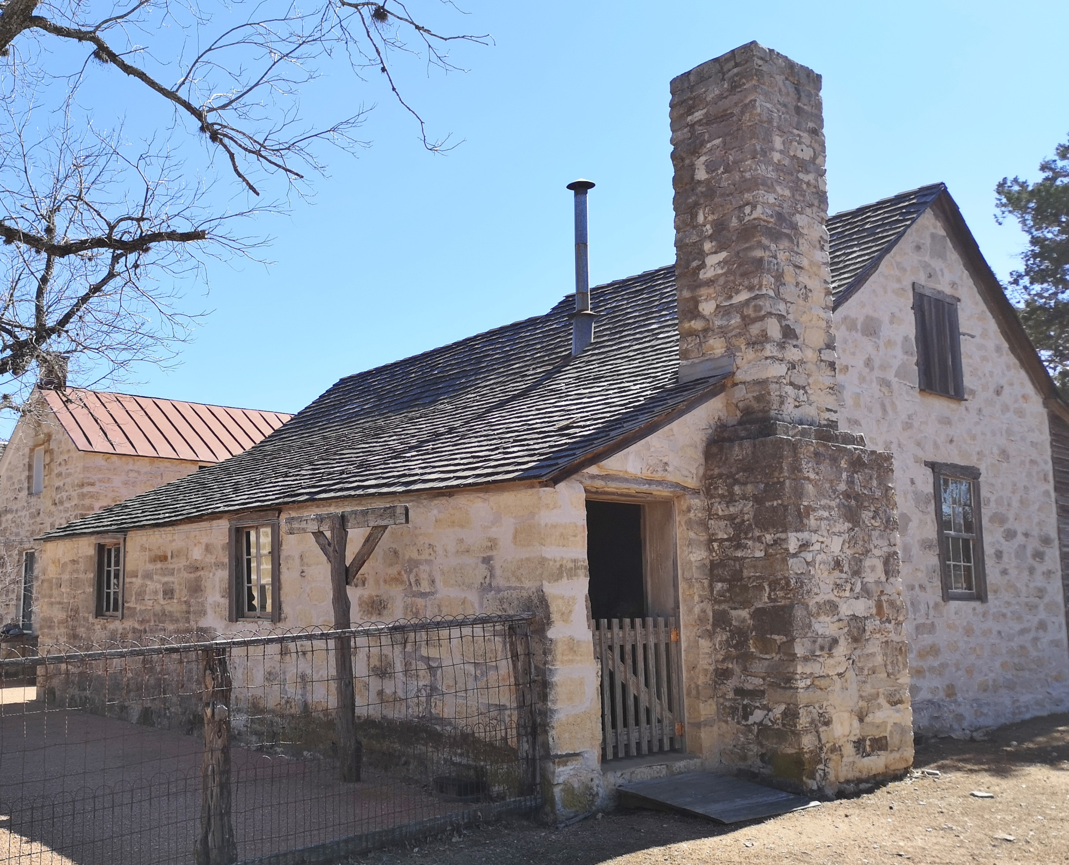 The following day we left Pedernales Falls SP heading for Guadalupe River SP but we took a side detour to LBJ’s ranch. The ranch is still a working ranch and was LBJ’s favourite place to be. The house on the grounds was nicknamed the Texas White House as LBJ would bring a lot of dignitaries there to conduct political business. We started off in the exhibit area and then walked the nature trail to the Sauer-Beckmann Living History Farm. They have volunteers dressed in period costume working the farm as the original settlers would have but when we arrived, they were having their lunch, it smelled very good😉