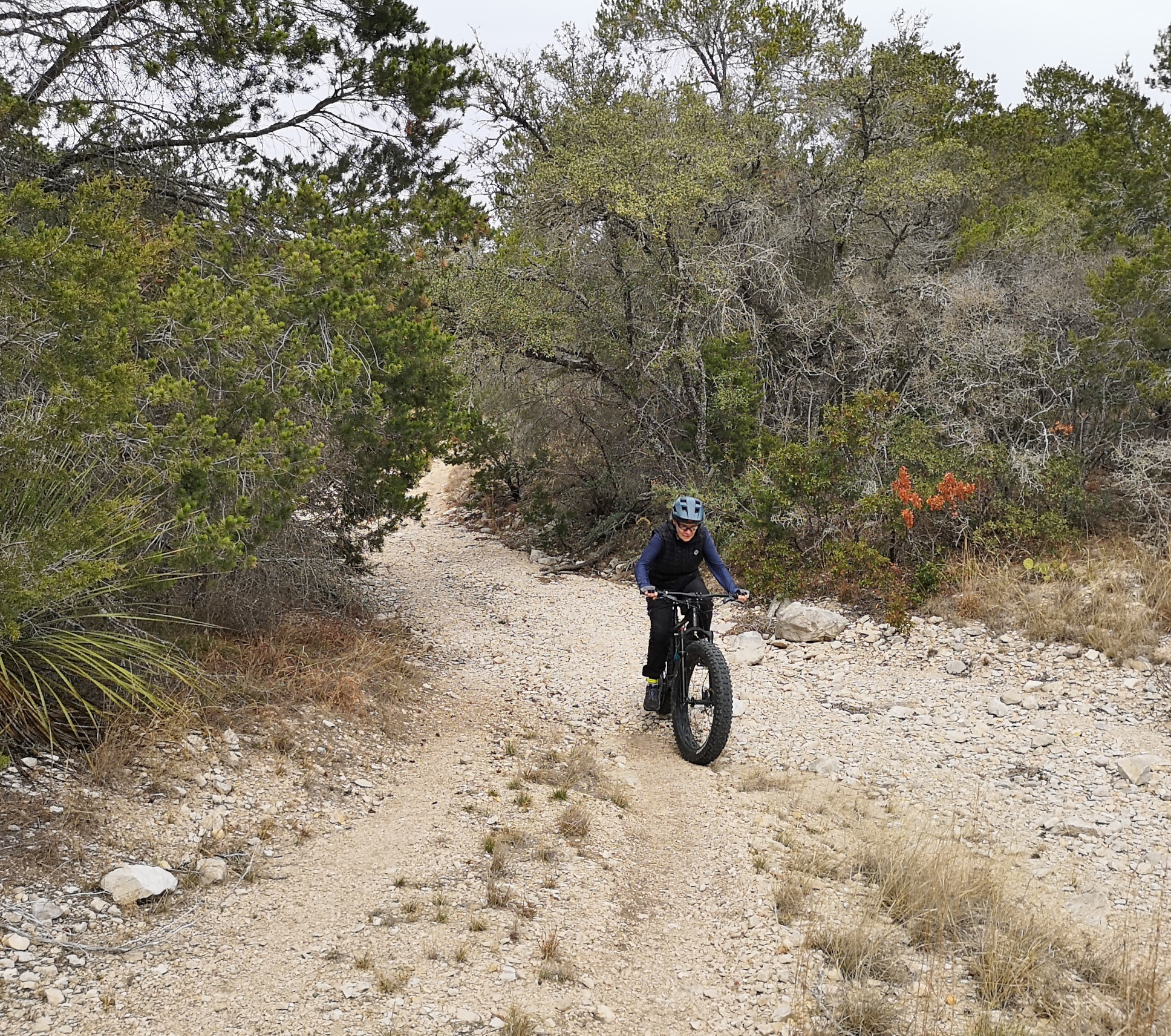 The next day was Superbowl Sunday and the park cleared out and for awhile we were the only ones there. We did some Mountain Bike riding on the Pine Canyon Loop and Vireo Vista trail. At one point it got pretty rocky so Sharon took the easy route back and I continued on The Long Way Home Trail. Good thing I did as I saw a coyote on the trail and some of the old farm equipment and buildings. In the afternoon we decided to ride the road to Stuart Bat Cave. There are no bats at this time of year, but we could check out the cave opening, and unfortunately you could really smell there had been bats there! The bats will return in the spring to have their babies. We took the Long Way Home Trail back past an old water tank and through creeks beds. By the end of the day I had done 26.4 kms and Sharon 14 kms.