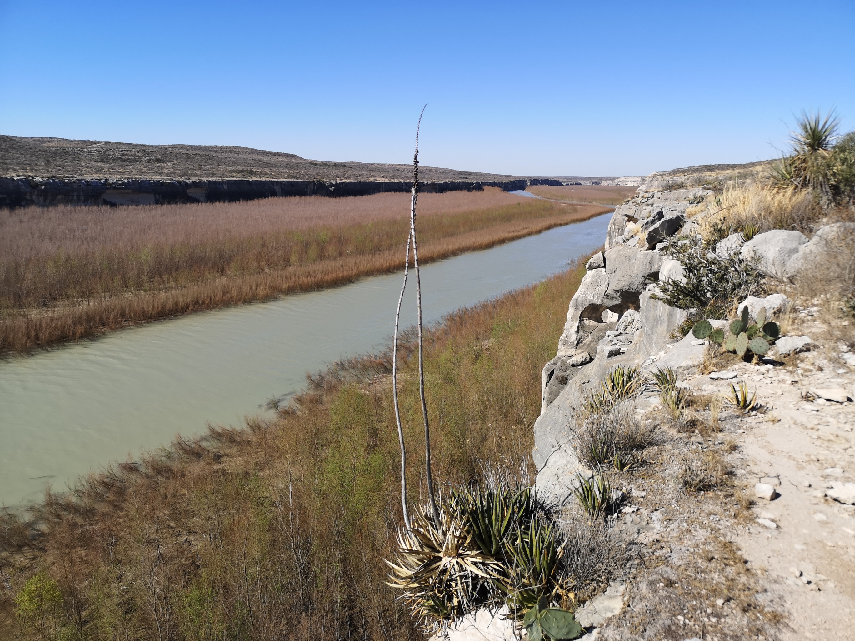 Last time we biked and hiked the canyon, this time we hiked first and biked the second day. The biggest change was the water level where the Rio Grande meets Seminole Canyon, the lack of rain certainly shows. Also, a huge amount of vegetation was growing along the Rio Grande looking like it could choke off the river at some stage! They used to be able to take boats down the canyon and stop to see the Panther Cave Pictographs, today the ranger said you can hardly do it in a canoe. The trees had grown and were covering most of the 9 ft Panther so all we could see was the tail. Last time we were later in the season, so the flowers were blooming, unfortunately this event hasn’t started yet. Even though it was hot, we wore pants both days to avoid the sharp cactus that were close to the trails. Both days the trip was just over 13 kms and both days we came back to the RV and enjoyed some warm weather and a beverage😊.