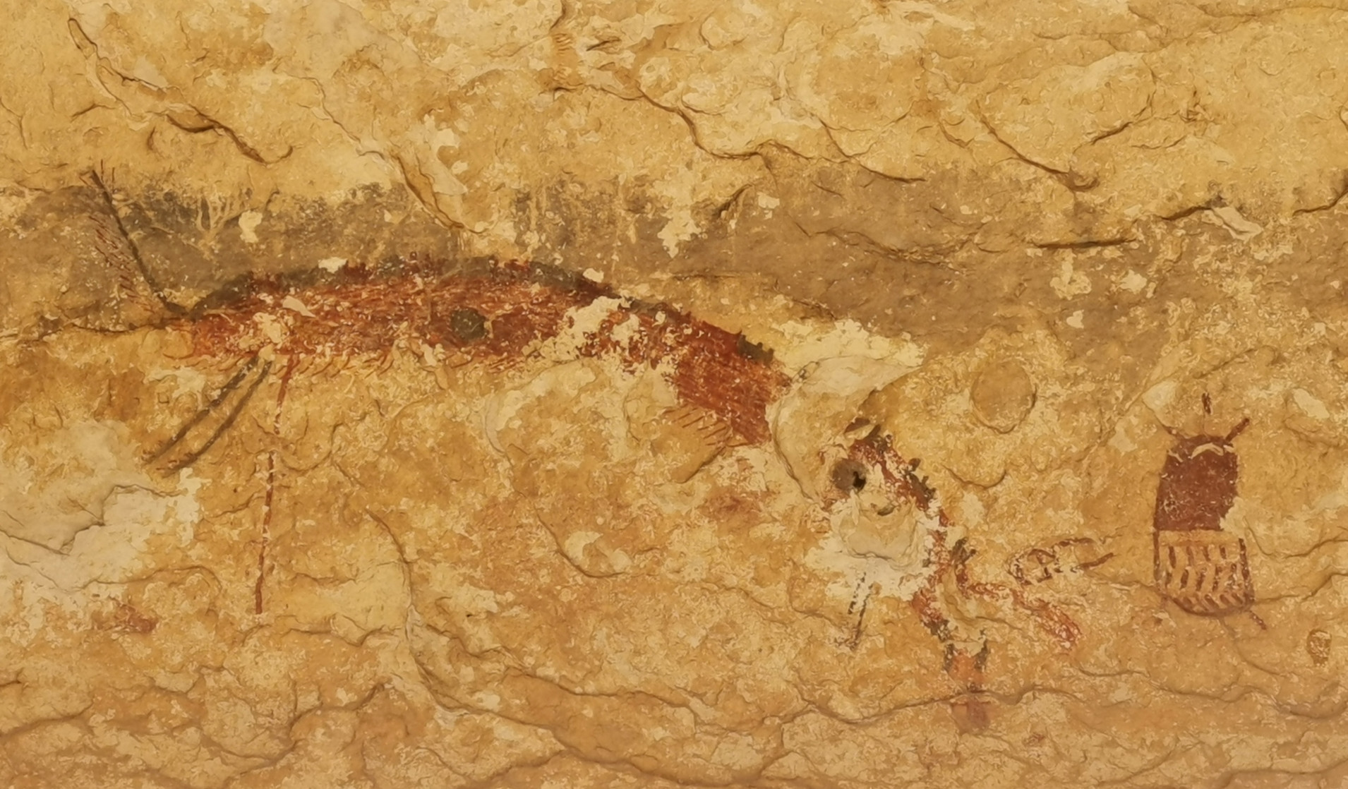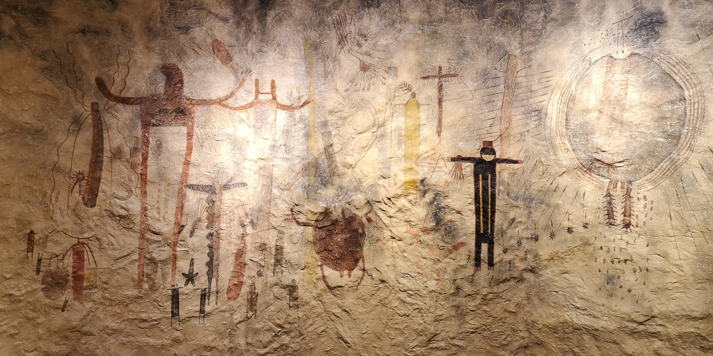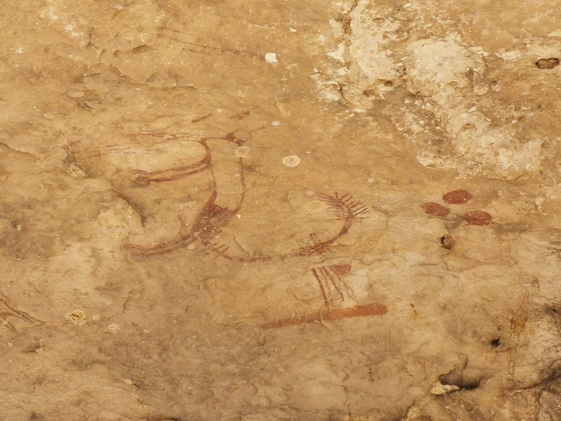 On our third day we were booked for the Fate Bell Pictograph tour at 10 am. We had a small group of 18 (normally 25), one was a family with 4 kids and the kids asked the greatest questions that entertained the group. Our first stop was the Maker of Peace sculpture created by Bill Worrell as a tribute to the Desert Archaic people. You then walk down into the canyon on uneven steps to get to the shelters. Unfortunately, the stairs were a bit much for one person as she passed out during the talk in the first shelter. Luckily the mother of the kids was an EMT so she was in good hands. We all waited in the canyon and once the park medical staff arrived to escort her back out, we continued on our tour. The pictographs date from 4200 years old to the youngest at 1500 years old. The ranger had a laser pointer and described what the researchers believed the paintings meant.
