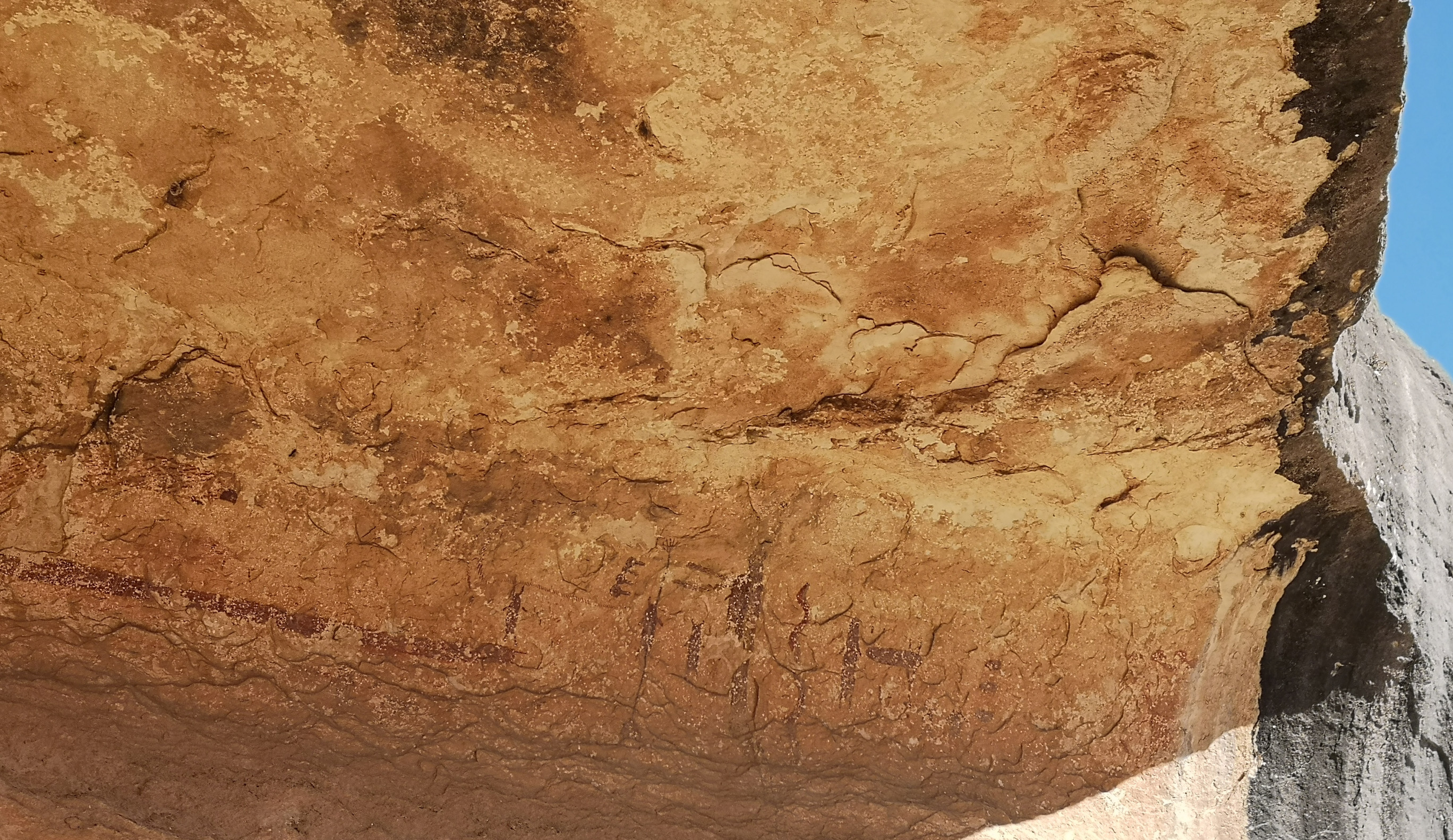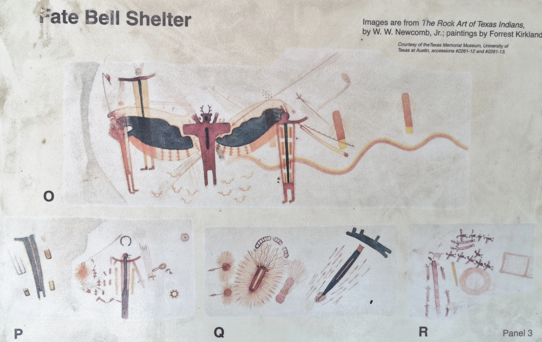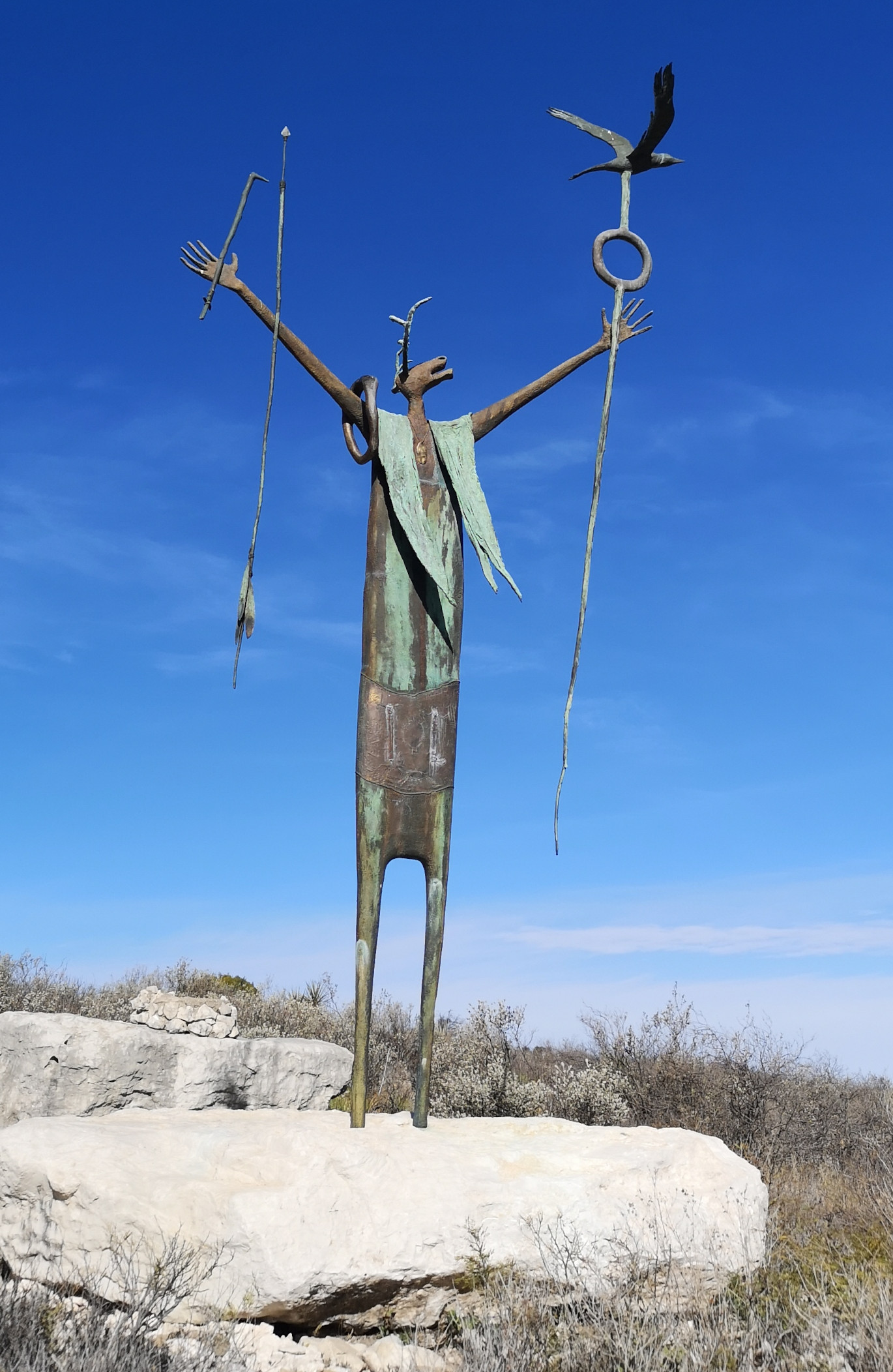 On our third day we were booked for the Fate Bell Pictograph tour at 10 am. We had a small group of 18 (normally 25), one was a family with 4 kids and the kids asked the greatest questions that entertained the group. Our first stop was the Maker of Peace sculpture created by Bill Worrell as a tribute to the Desert Archaic people. You then walk down into the canyon on uneven steps to get to the shelters. Unfortunately, the stairs were a bit much for one person as she passed out during the talk in the first shelter. Luckily the mother of the kids was an EMT so she was in good hands. We all waited in the canyon and once the park medical staff arrived to escort her back out, we continued on our tour. The pictographs date from 4200 years old to the youngest at 1500 years old. The ranger had a laser pointer and described what the researchers believed the paintings meant.