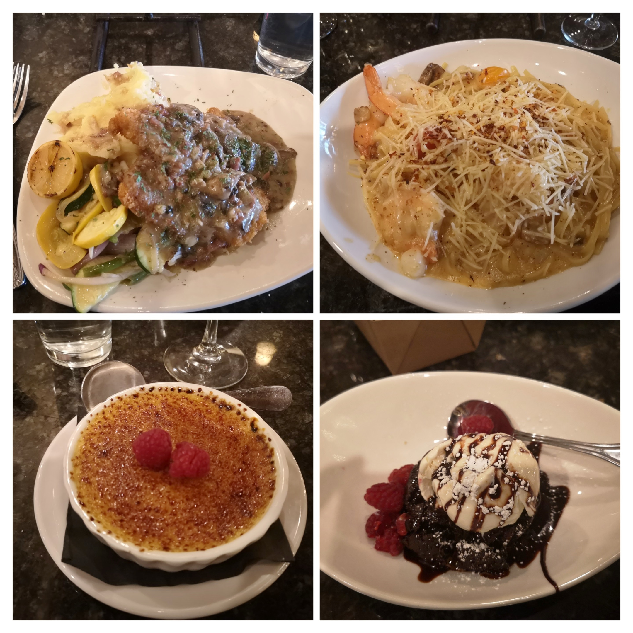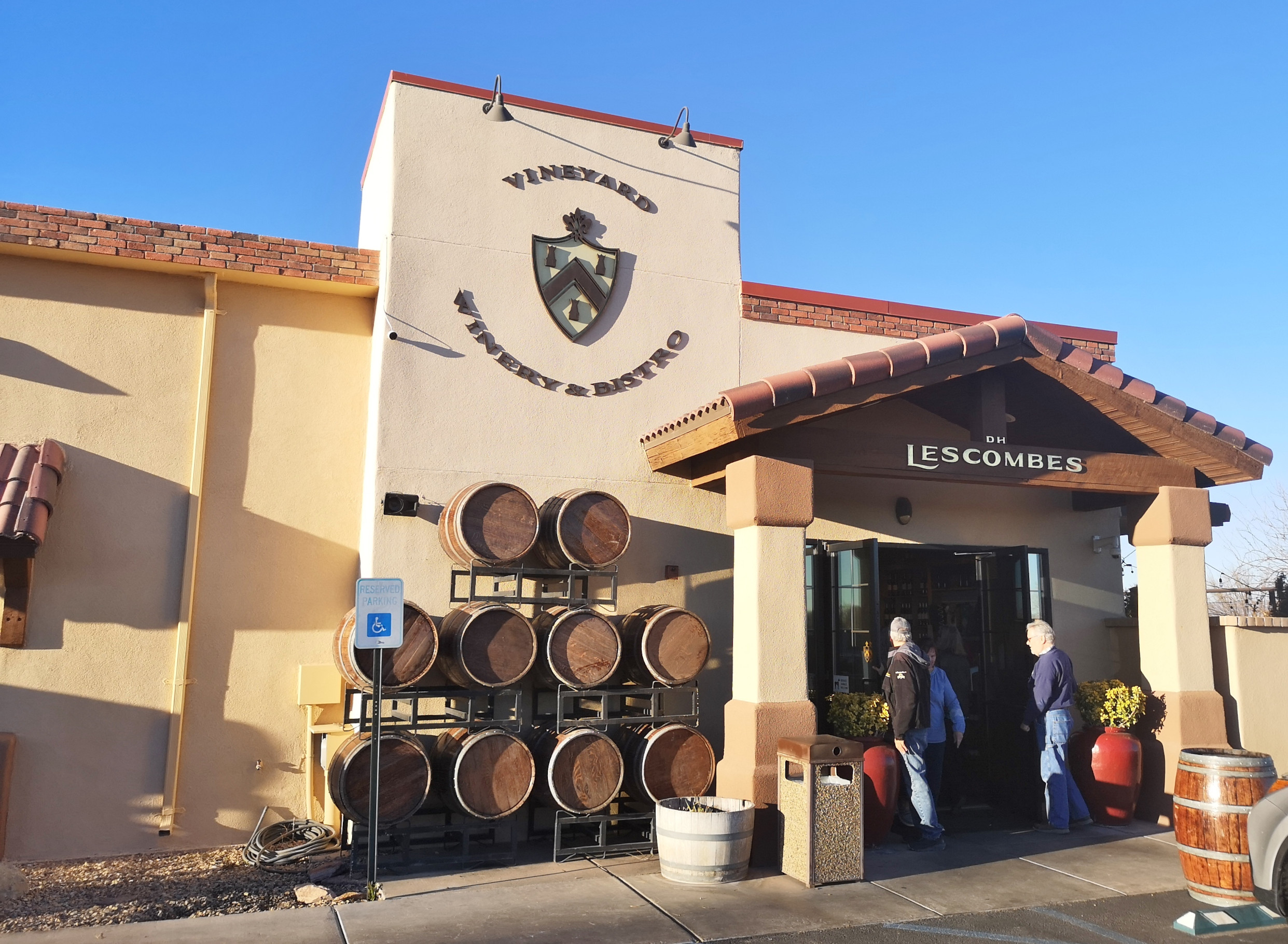 On Friday we finished the last of our laundry and Friday night we went to D. H. Lescombes Winery and Bistro, a place we really enjoyed the last time we were in Las Cruces. Sharon and I had red wine flights with a cheese plate followed by a Jalapeno-Bacon Wrapped Shrimp appetizer, Sharon had Spicy Seafood Carbonara and a Ghirardelli Port Brownie, and I had German Schnitzel and Crème Brulé. After the wine tasting we picked 2 bottles to buy plus some Ports. An enjoyable evening with good friends.