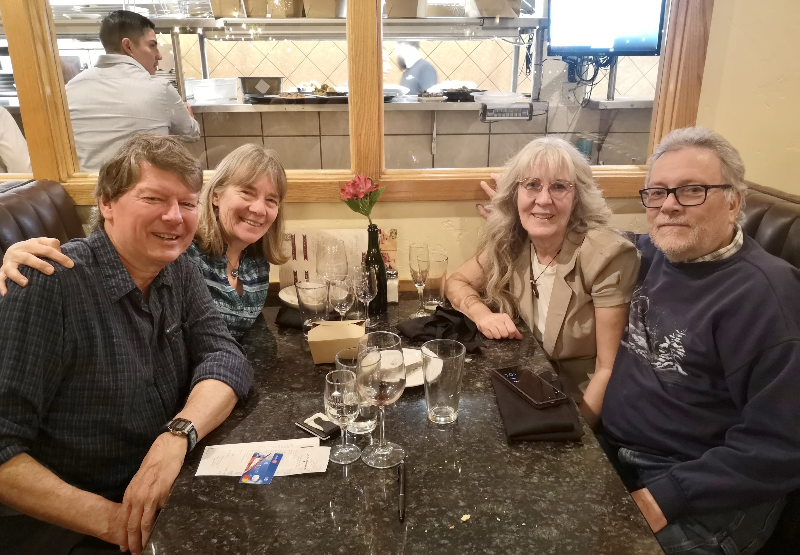 Saturday Sharon went with Becky and Ed as they did errands, I worked on the blog and we watched Survivor’s new season premiere, luckily Becky had PVR’ed it😊 Sunday we did a 10 km hike with Ed on the Sierra Vista Trail but unfortunately Becky couldn’t join us as her allergies were acting up. Some of the area is open range so we did have some cattle on the trail. As you hike, you have beautiful views of the Organ Mountains. That night we went to Luna Rossa Winery & Pizzeria for dinner, we shared a wine flight and I had very good Pizza, Sharon had Pasta con Gamberetti (more shrimp)😉 To top off the meal we had some great gelato! Another great visit, it’s now time for Becky and Ed to head up to Canada so we can host them at our place.