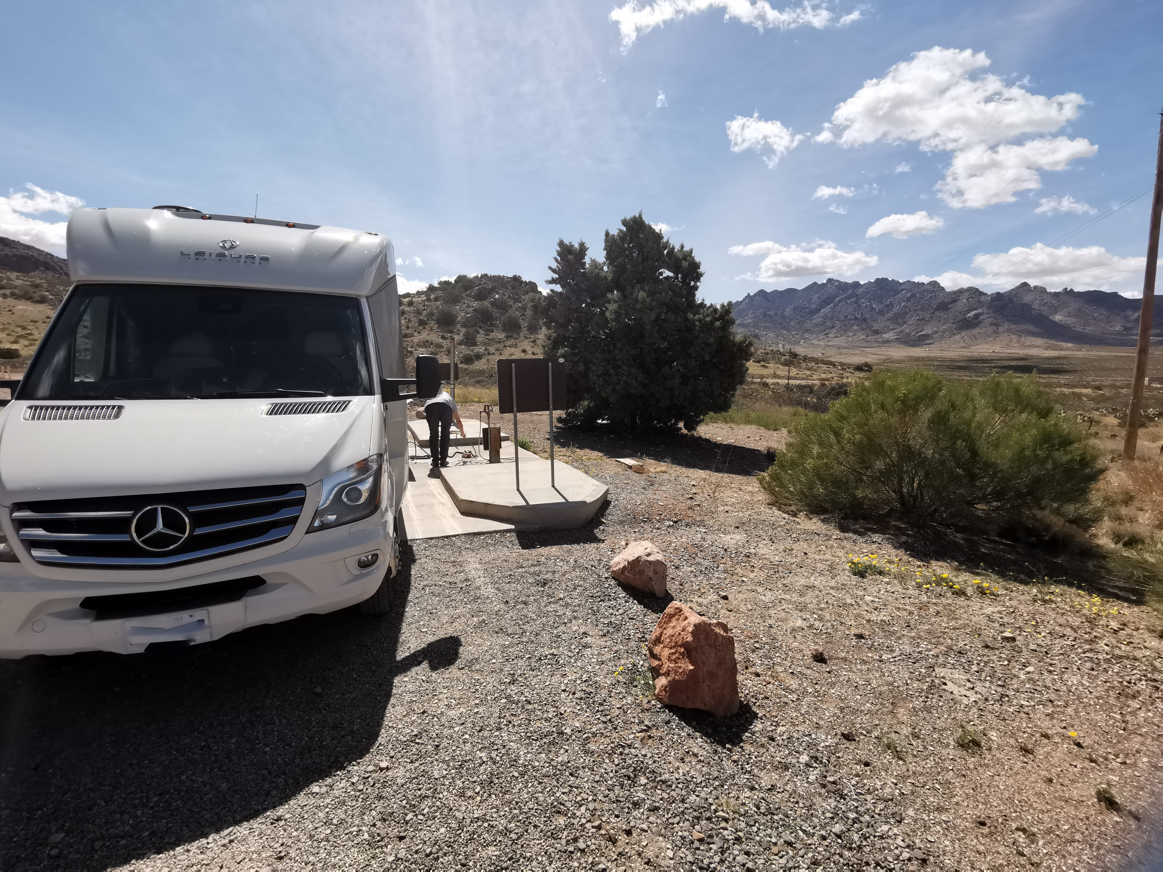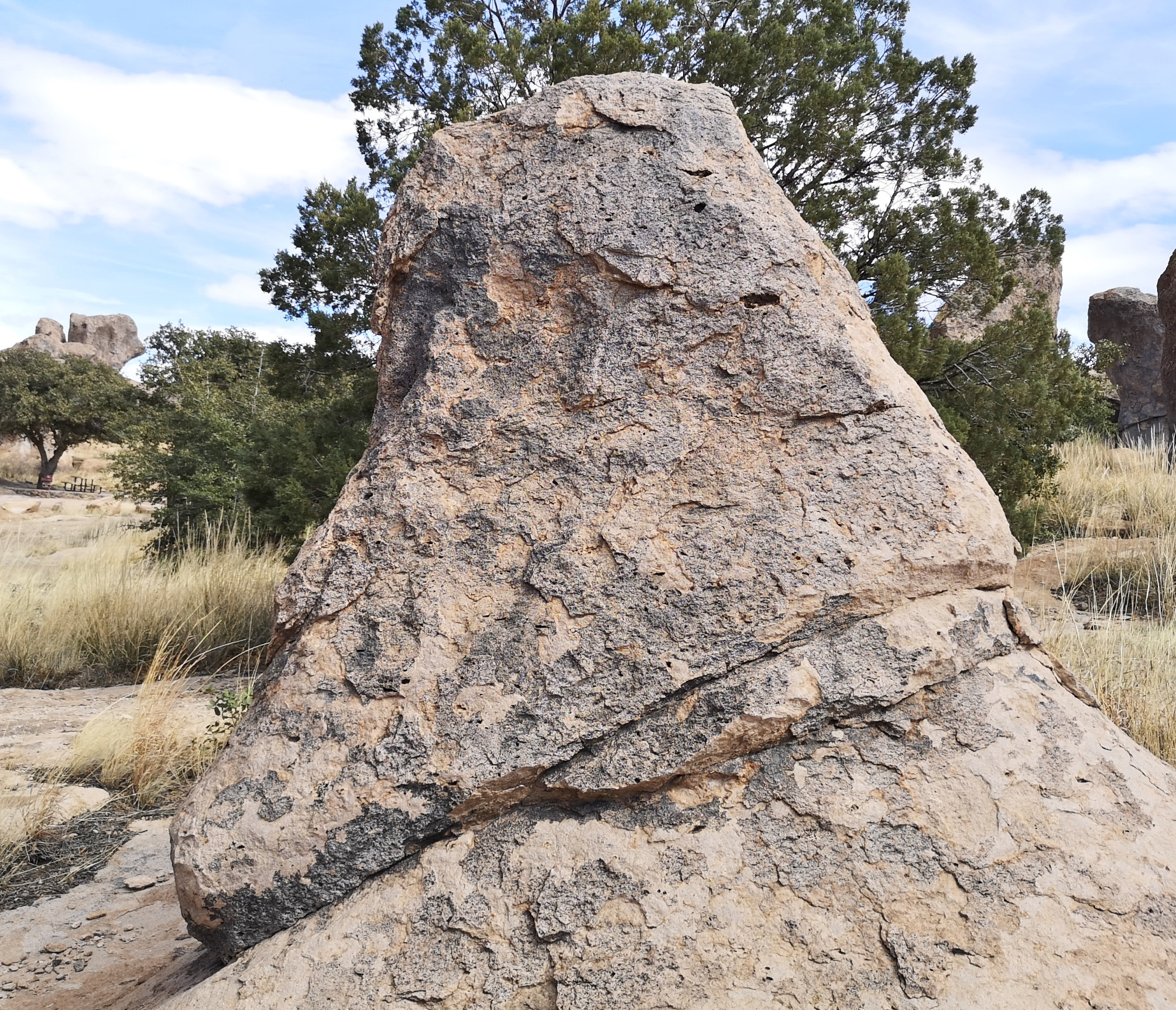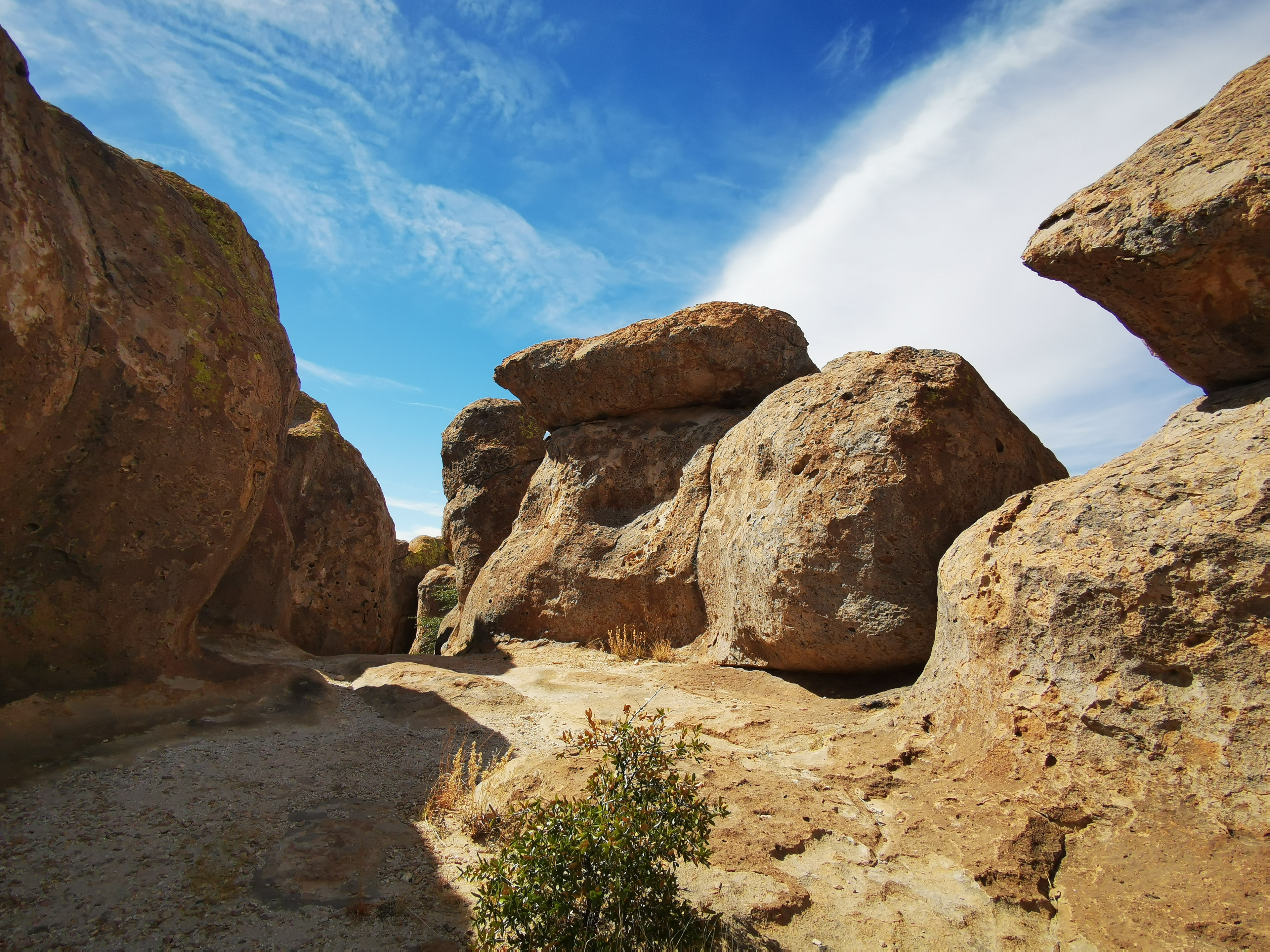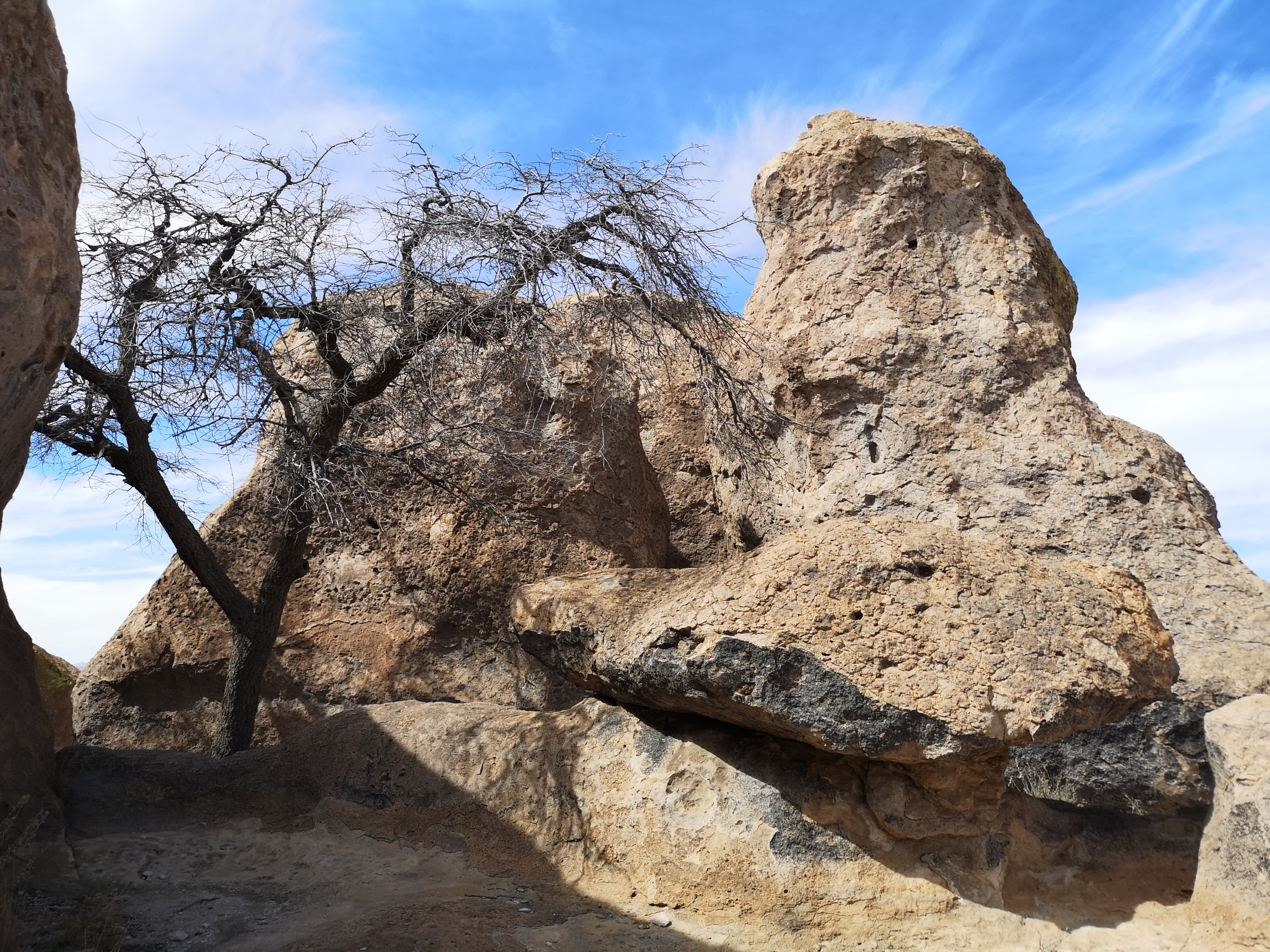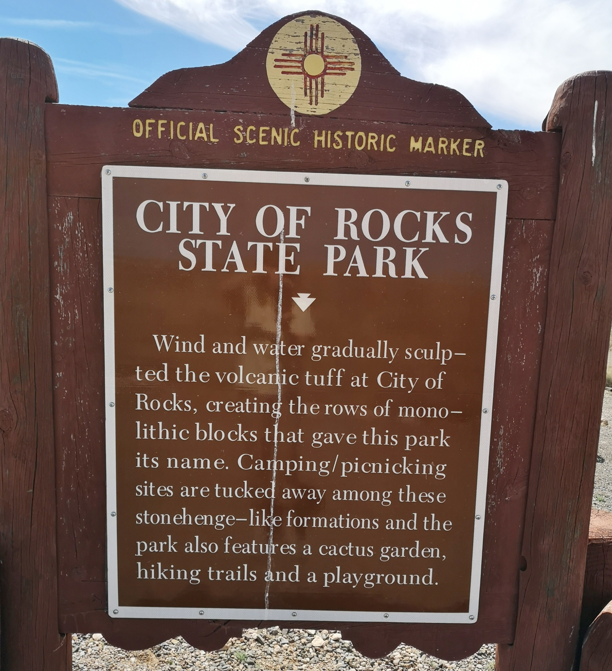 As we hit the road with clean clothes, we decided we should clean the RV, so we found a big RV wash to get some of the dirt road dust off!! We headed to Deming where we had a fantastic lunch at a Mexican restaurant called Si Senor. I had Shredded Beef Gorditas and Sharon had a combo platter, so we pretty well covered all of the menu items. We had lots of leftovers for another meal! They had the best homemade hot salsa we’ve had, so we bought some to go which they put in a takeaway drink glass😊 We drove north to City of Rocks State Park. We’d been here before and really enjoyed it so wanted to go back. We couldn’t believe it when the site we booked turned out to be the exact same site we had 5 years ago!