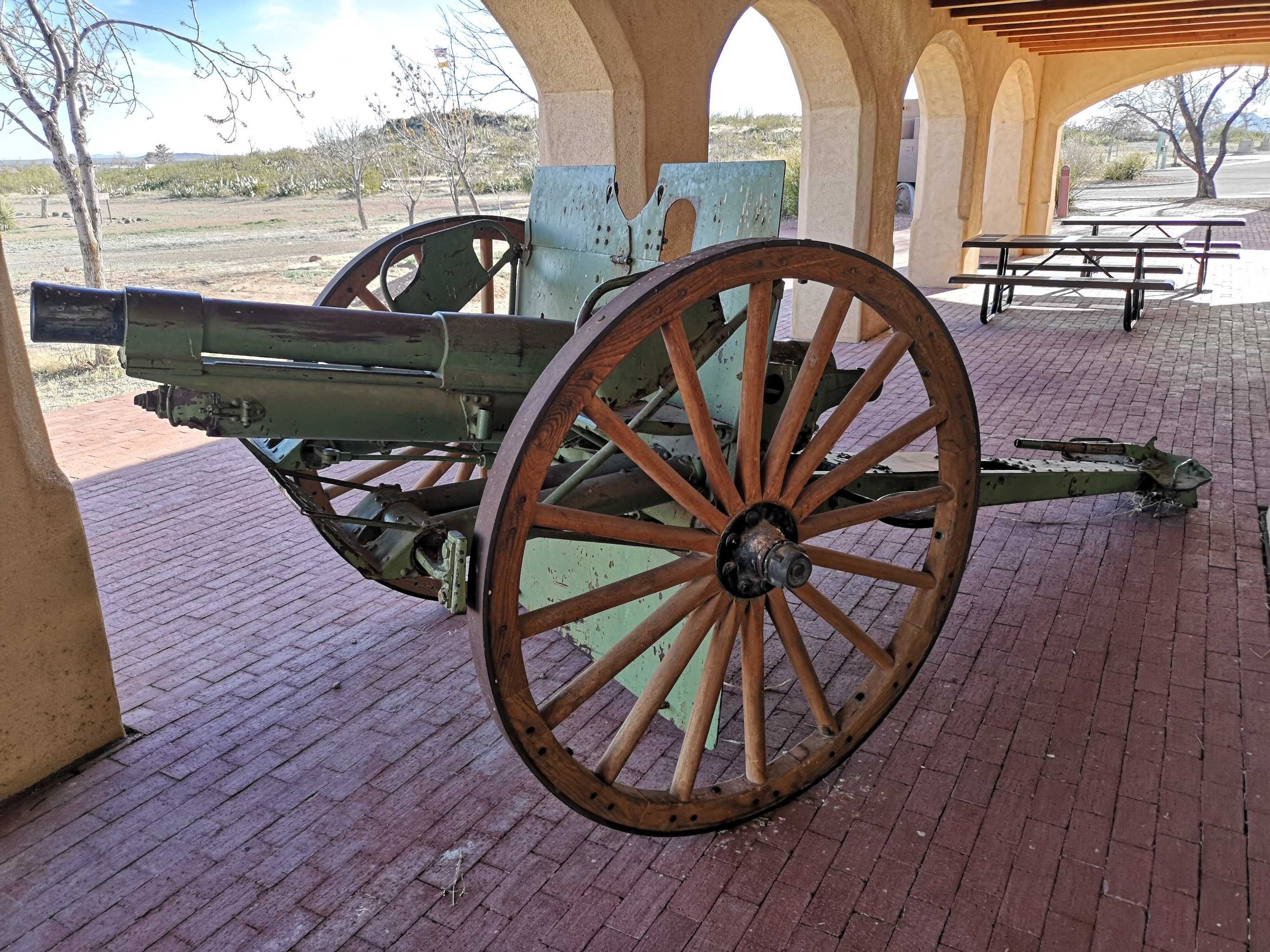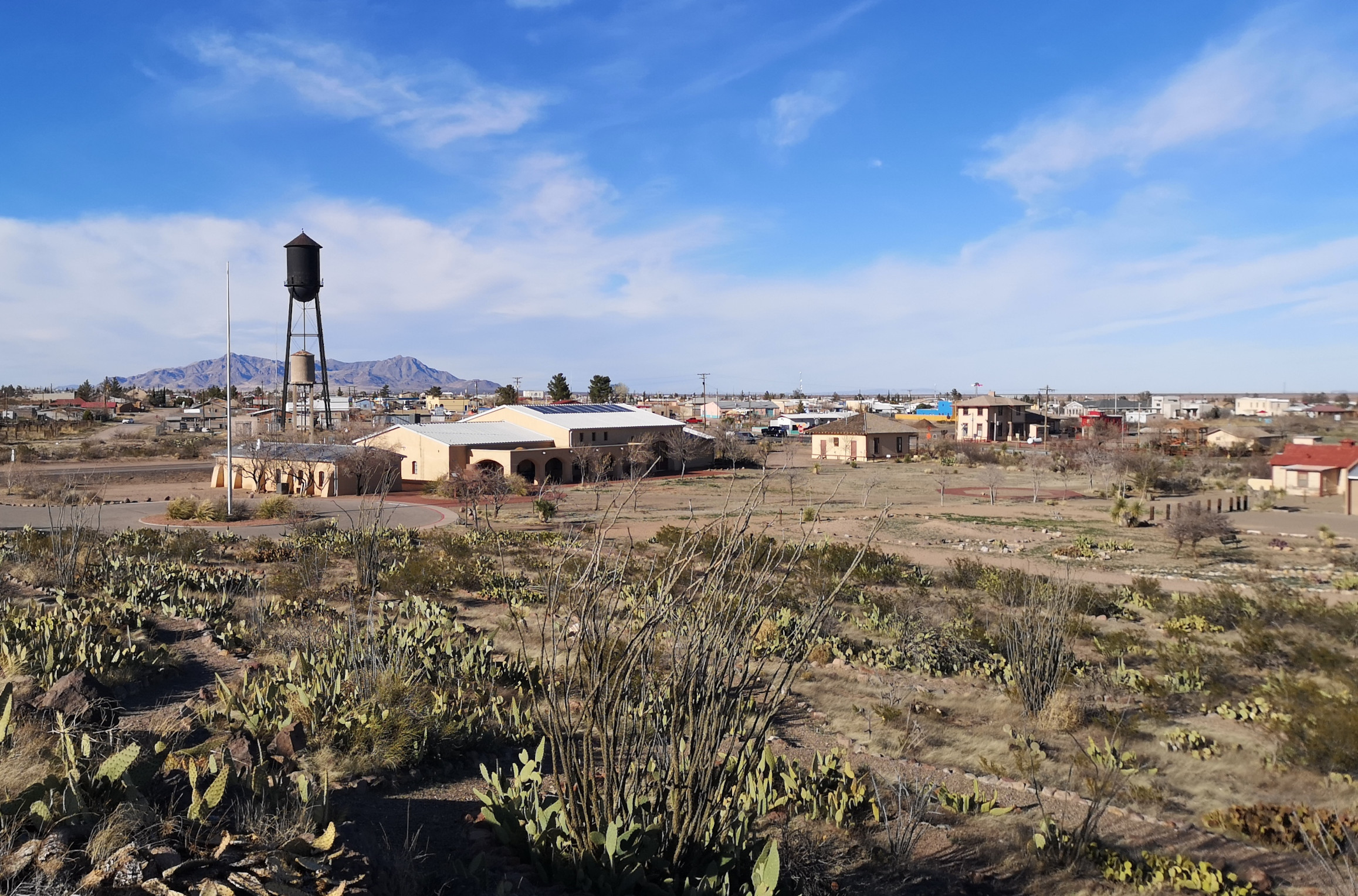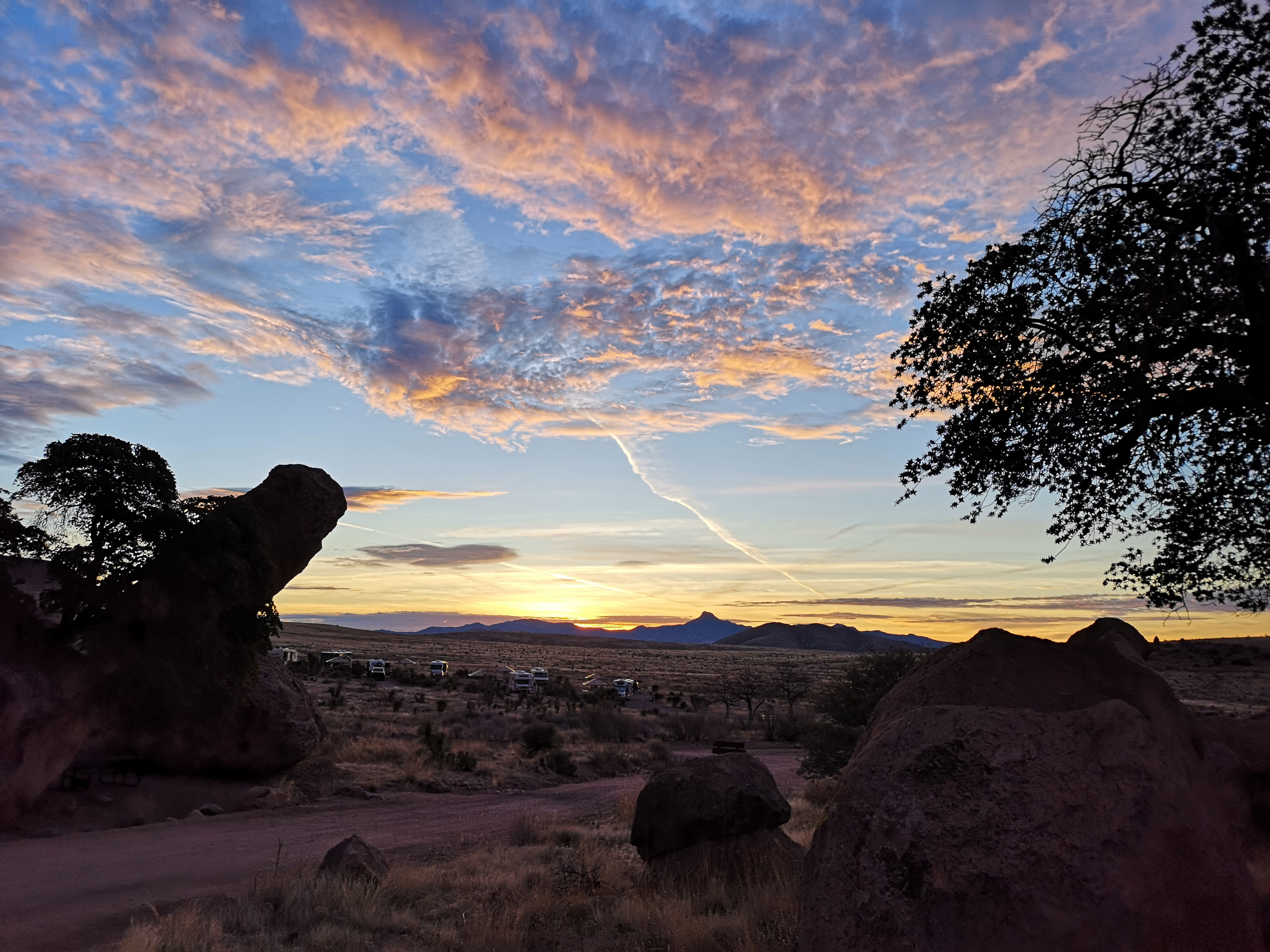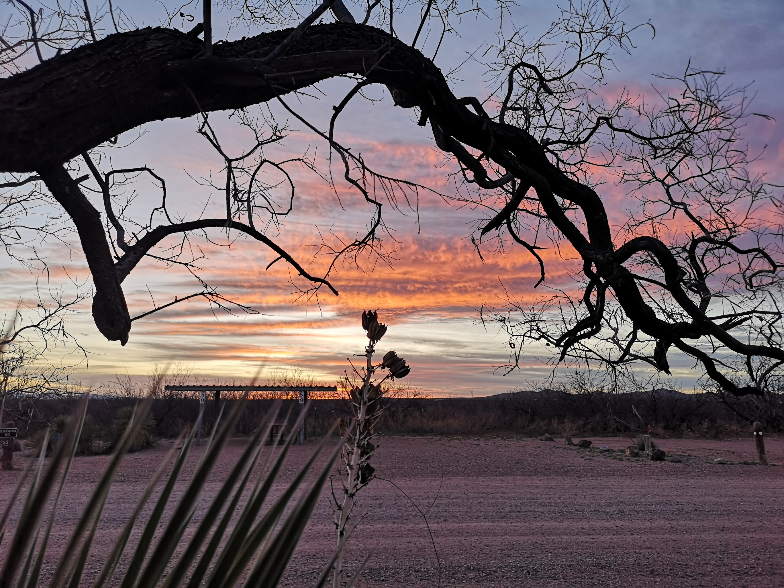 We wrote about this park’s history in a previous blog, so we won’t repeat that (RV Trip 3.6 Pancho Villa SP). We did a walk around the park looking at some of the historic buildings when the park was known as Camp Furlong in 1916. We climbed up Cootes Hill for the view, talked to another LTV couple in the park before we enjoyed a fabulous sunset.