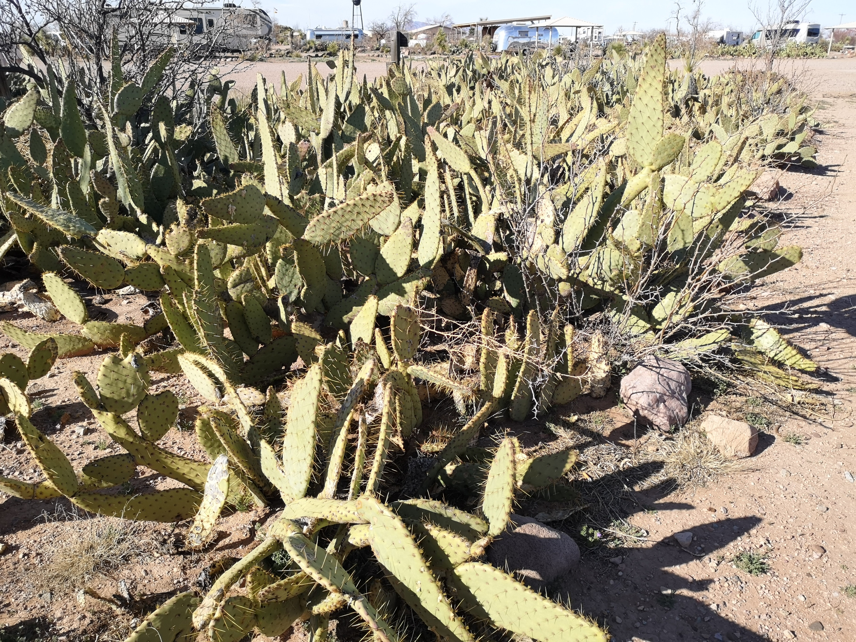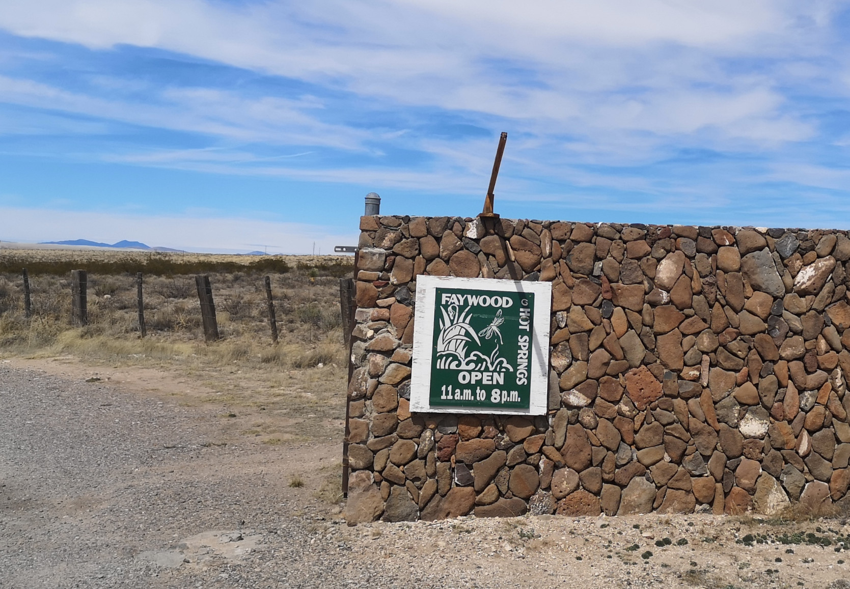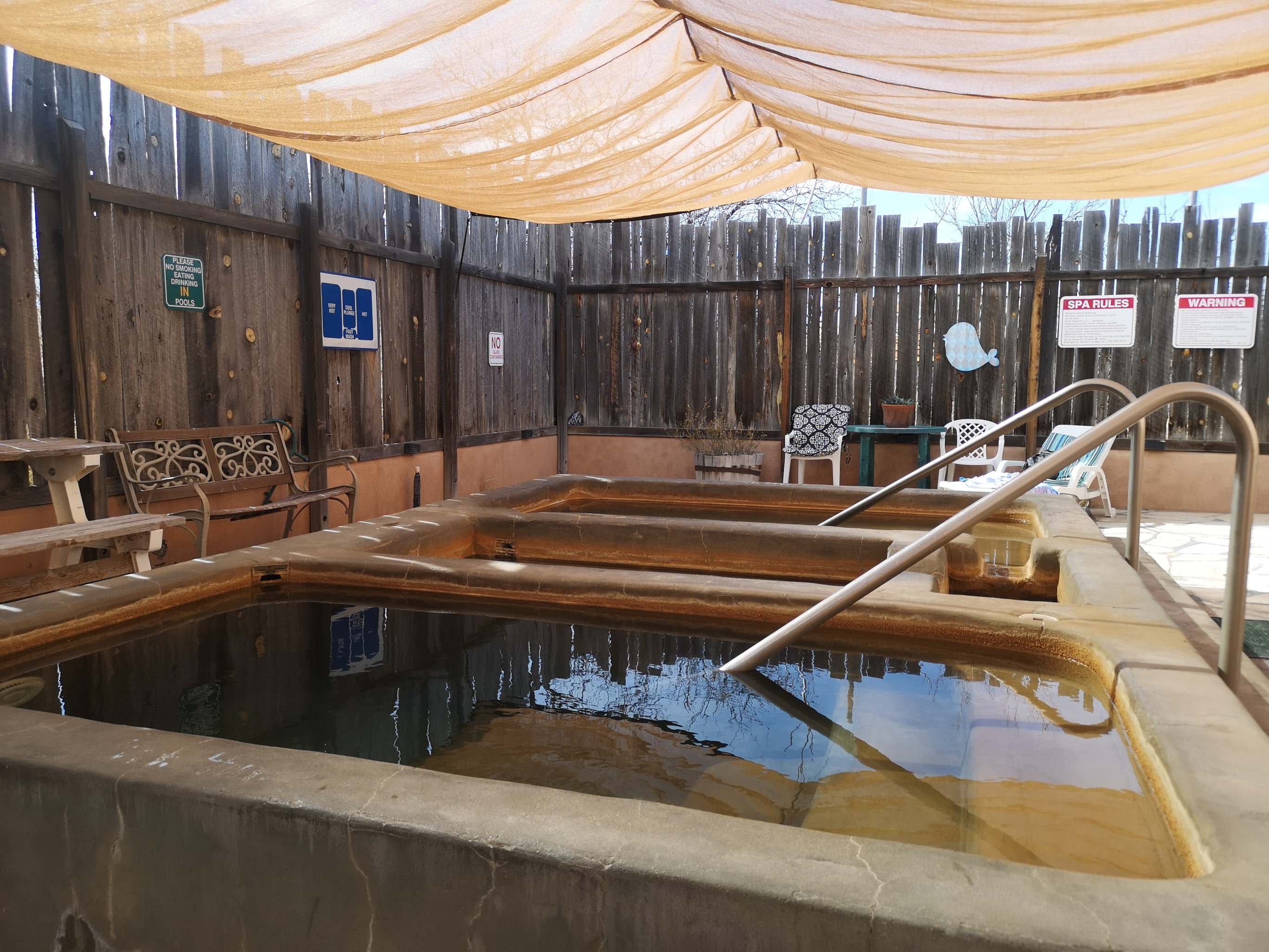 Our next stop was Faywood Hot Springs for their special mineral pools. The pools are all shapes and sizes, some require clothes some don’t. They even had camping split between clothing required and clothing optional. The pools closest to our RV site were “Clothing Optional” but we opted to wear our bathing suits. These were small pools 105 F and 110 F (too hot). We then went to check out the clothing required pools, one pool was very hot (I liked that one) and Sharon liked the 102 F large pool. That night we went back to the large pool and had it all to ourselves. It was nice sitting in the hot spring looking at the stars. The campground was very rudimentary at Faywood, and they could use better filtration in some of the pools so it was interesting going there but we likely wouldn’t return. We’d still pick Riverbend in Truth or Consequences as a hot spring location, only problem, it was fully booked. Prior to our departure we did another quick soak before heading south to Pancho Villa State Park in Columbus.