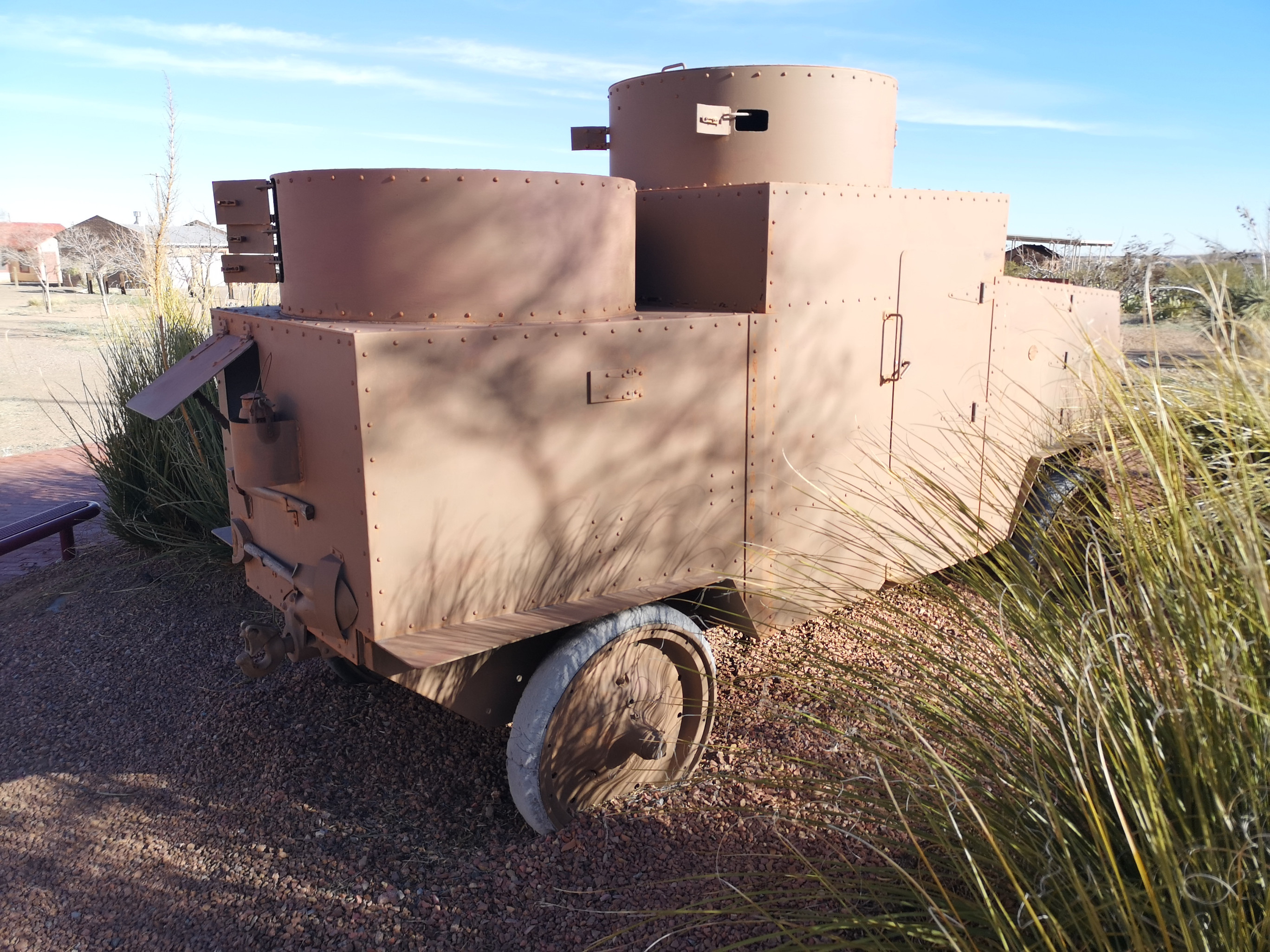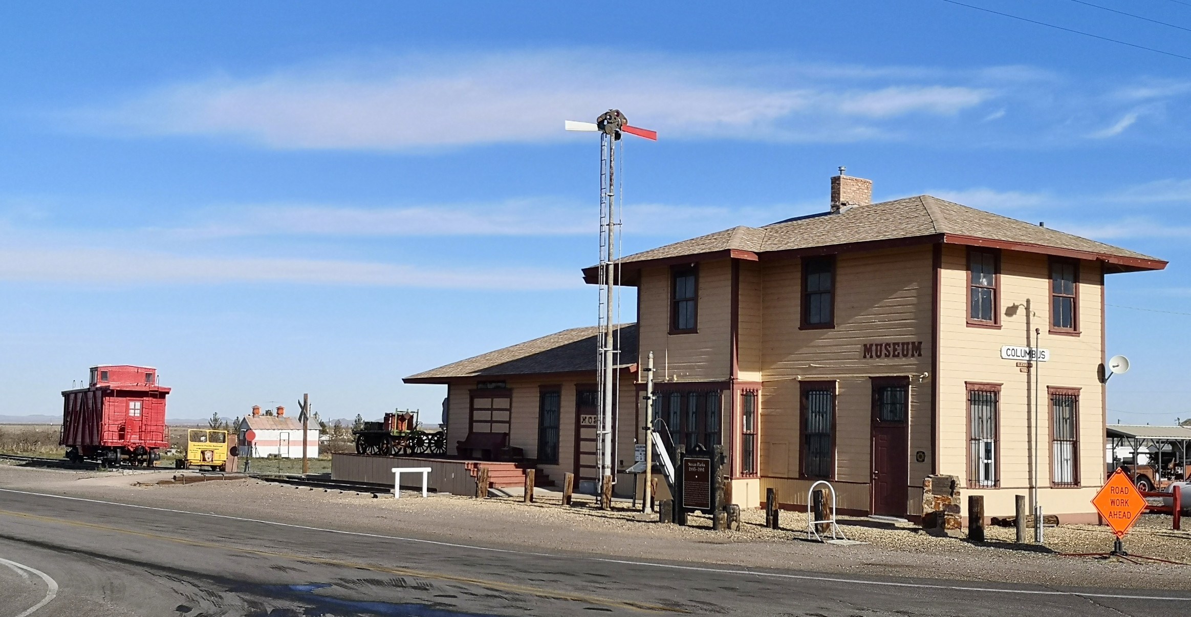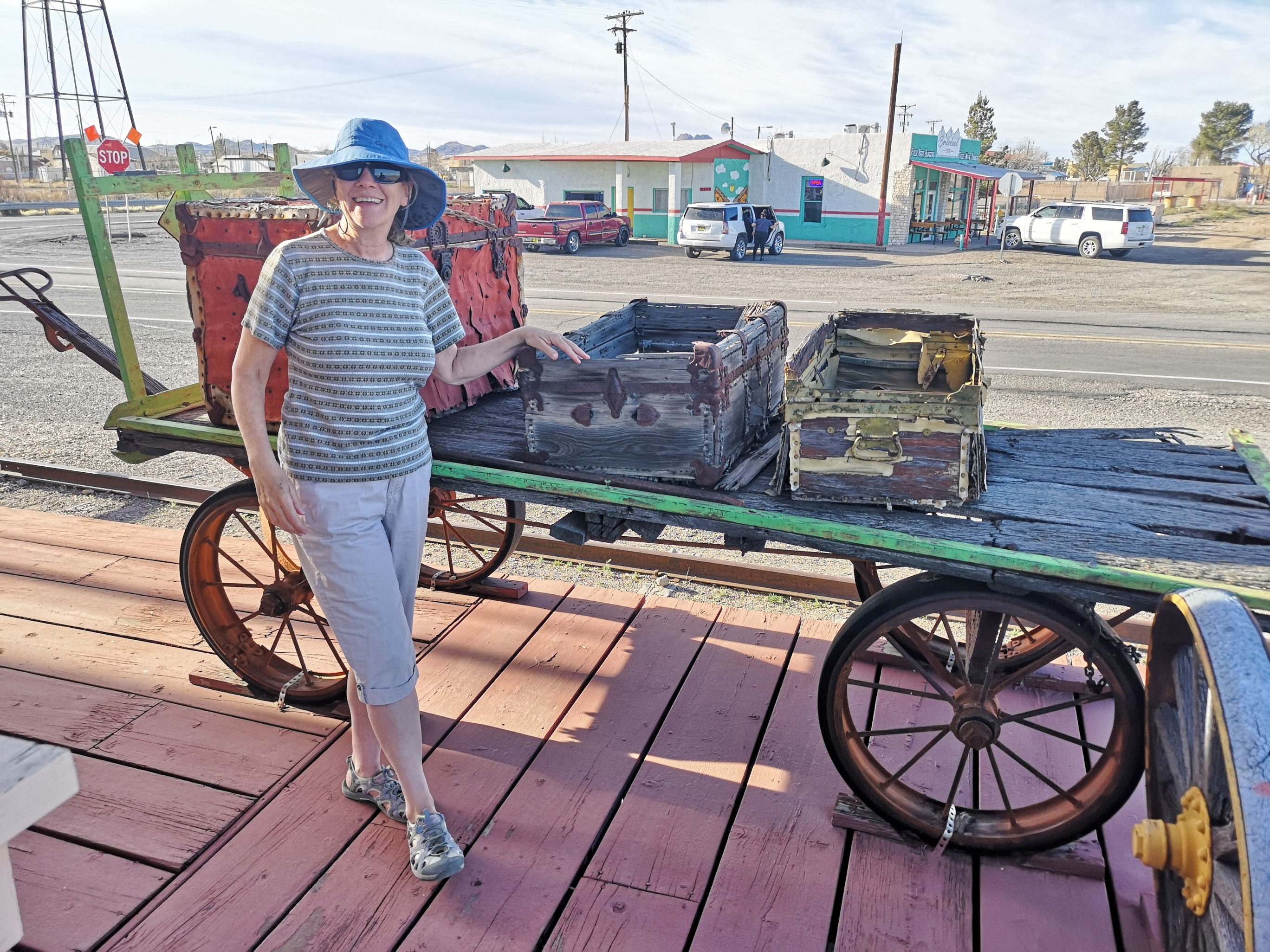 The main reason we headed south was to avoid cold night-time weather in northern New Mexico. Any further south and you’re in Mexico (5 kms from the border). We arrived in Columbus around lunch so went to Irma’s Mexican restaurant. We literally just walked in the door and the waitress said “we have enchiladas with green sauce, enchiladas with red sauce (which was good and spicy) and pork with rice and beans”, I guess that’s the menu! We started chatting with Irma and she was telling us about the big parade that was happening on Saturday. She said, get your lawn chair set up at 9am, the parade will come right by here. We now had a plan for Saturday.