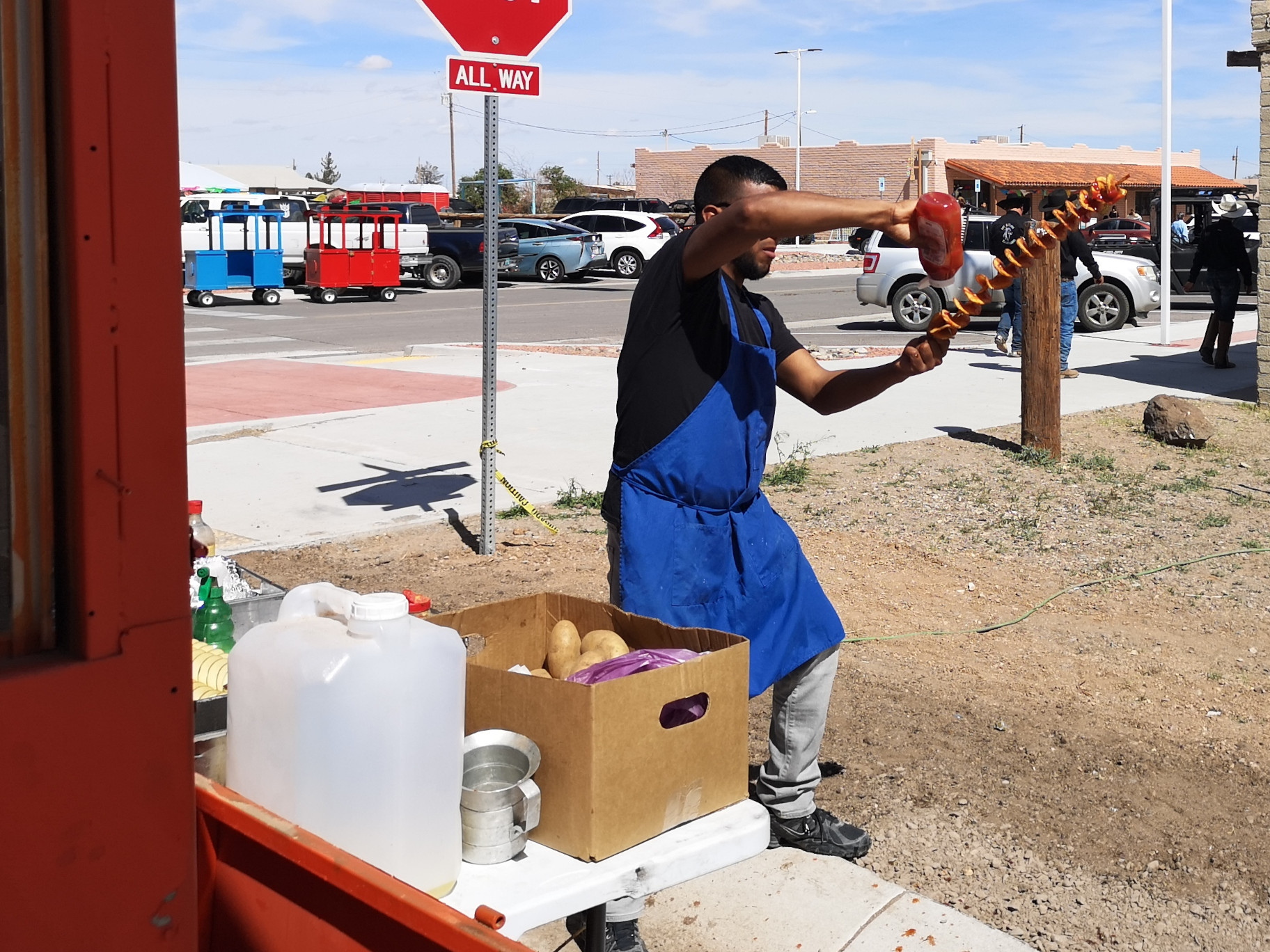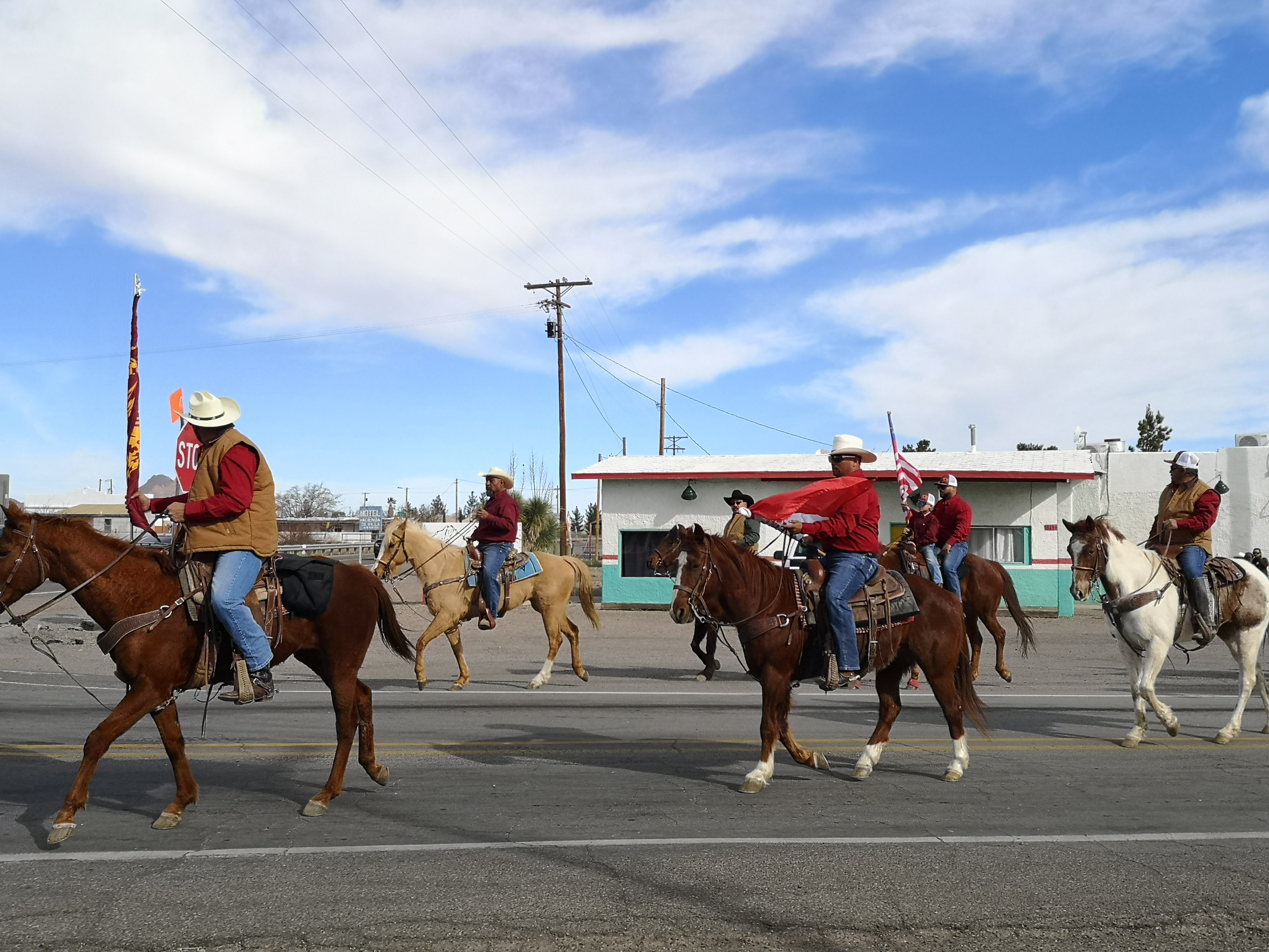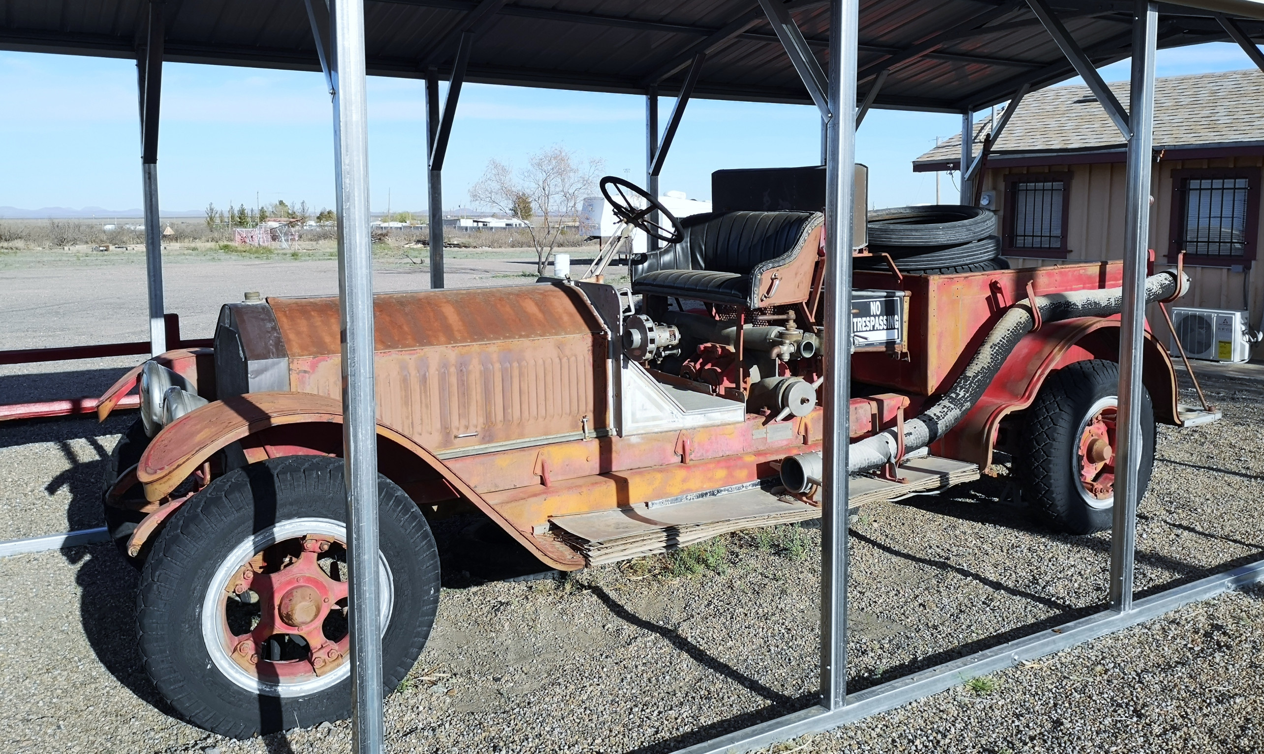 The main reason we headed south was to avoid cold night-time weather in northern New Mexico. Any further south and you’re in Mexico (5 kms from the border). We arrived in Columbus around lunch so went to Irma’s Mexican restaurant. We literally just walked in the door and the waitress said “we have enchiladas with green sauce, enchiladas with red sauce (which was good and spicy) and pork with rice and beans”, I guess that’s the menu! We started chatting with Irma and she was telling us about the big parade that was happening on Saturday. She said, get your lawn chair set up at 9am, the parade will come right by here. We now had a plan for Saturday.
