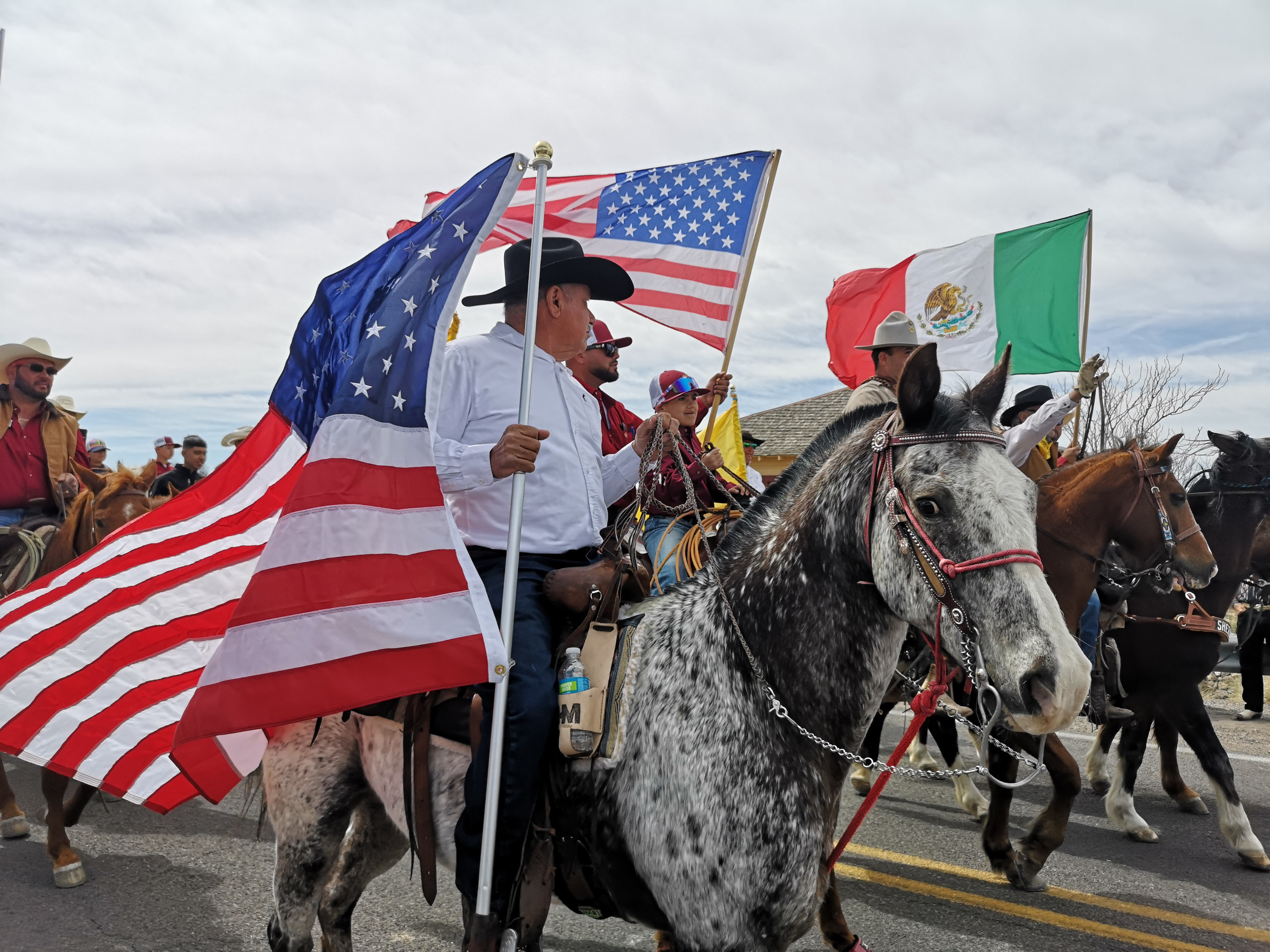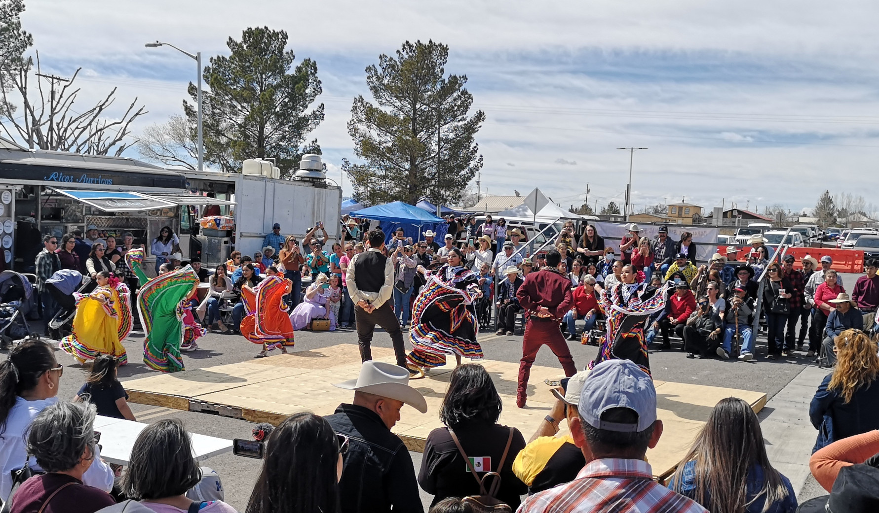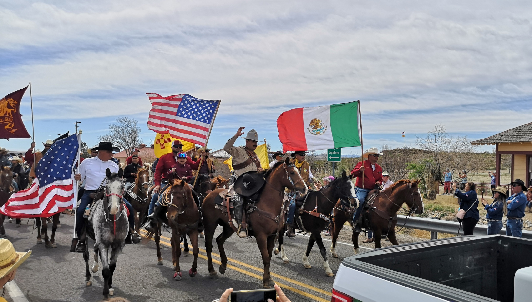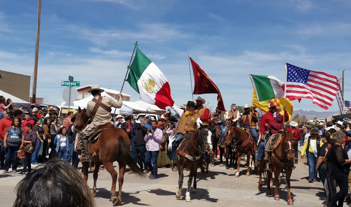 The Saturday parade was part of the Fiesta de Amistad and was to mark the day Pancho Villa and his Mexican army raided Columbus on March 9, 1916. Today they recognize the event with a remembrance ride, the US riders on horseback ride to the Mexican border (5 kms from Columbus), they meet up with the Mexican riders and together they return to Columbus. We had heard conflicting stories on the time of their arrival, so following Irma’s advice we headed out for 9am. Well, at this time, some of the riders were beginning to head south to the border. It would be a while before they all returned. We waited around, talked to other people waiting, watched a HUGE wide load try to navigate the corner (I’m sure they weren’t thinking it would be busy on a Saturday morning), watched the same green car and big quads drive back and forth multiple times. Finally, the parade of about 150 horses and riders came by and stopped right by us. We then followed them to the main plaza where they had an official ceremony. Then it was time to watch the dancing, check out the stalls and get some food. We were lucky to be there the day of the big Fiesta in this small town.