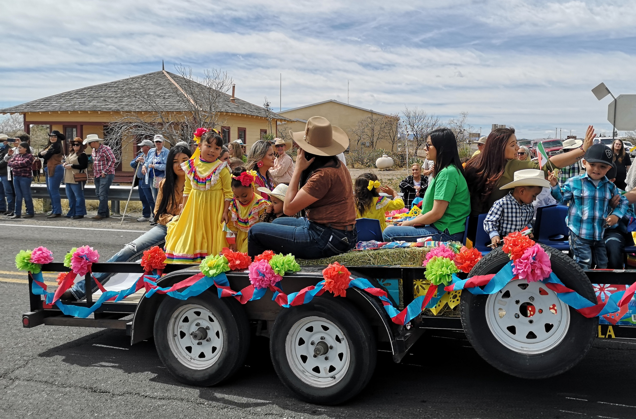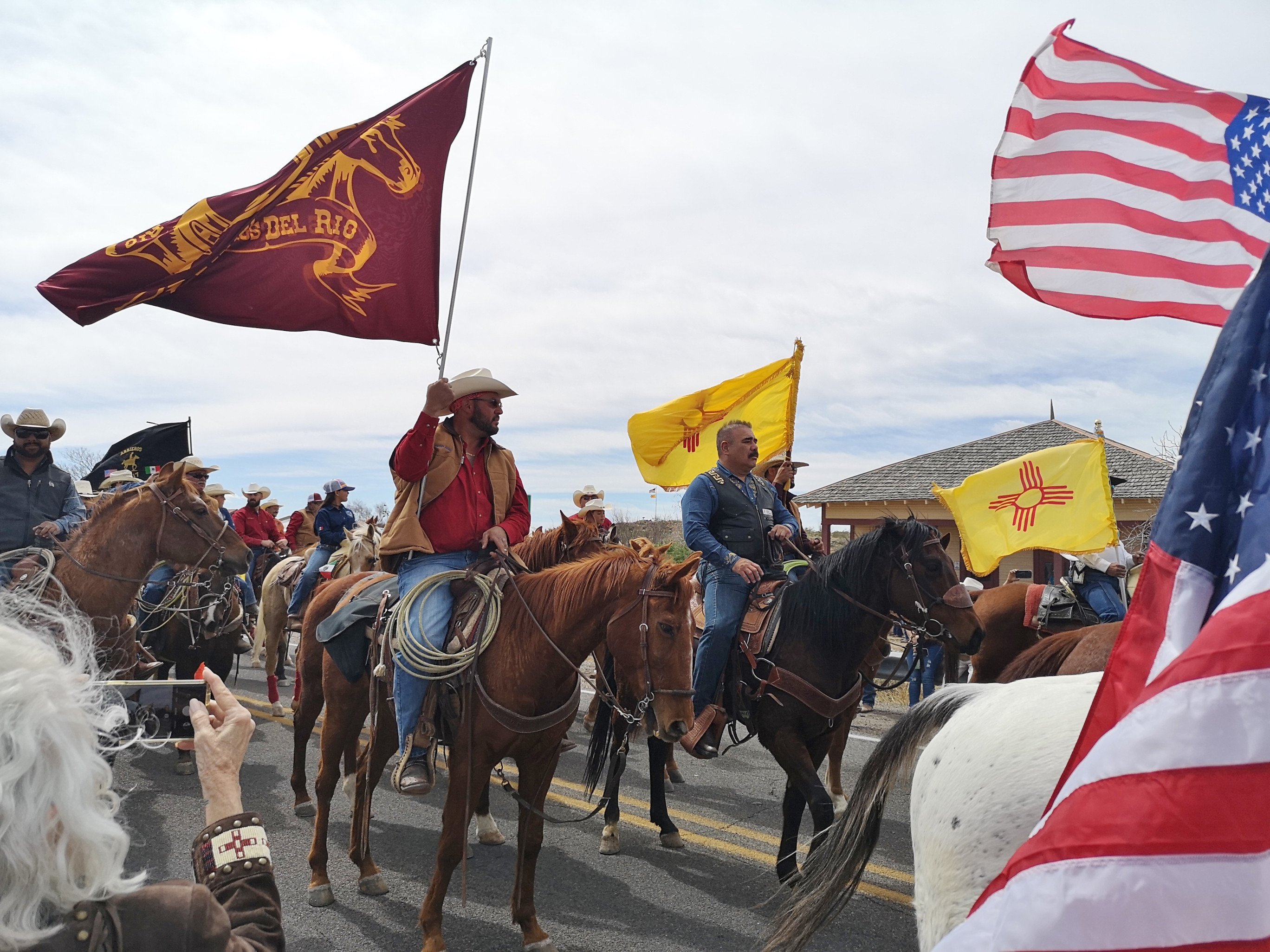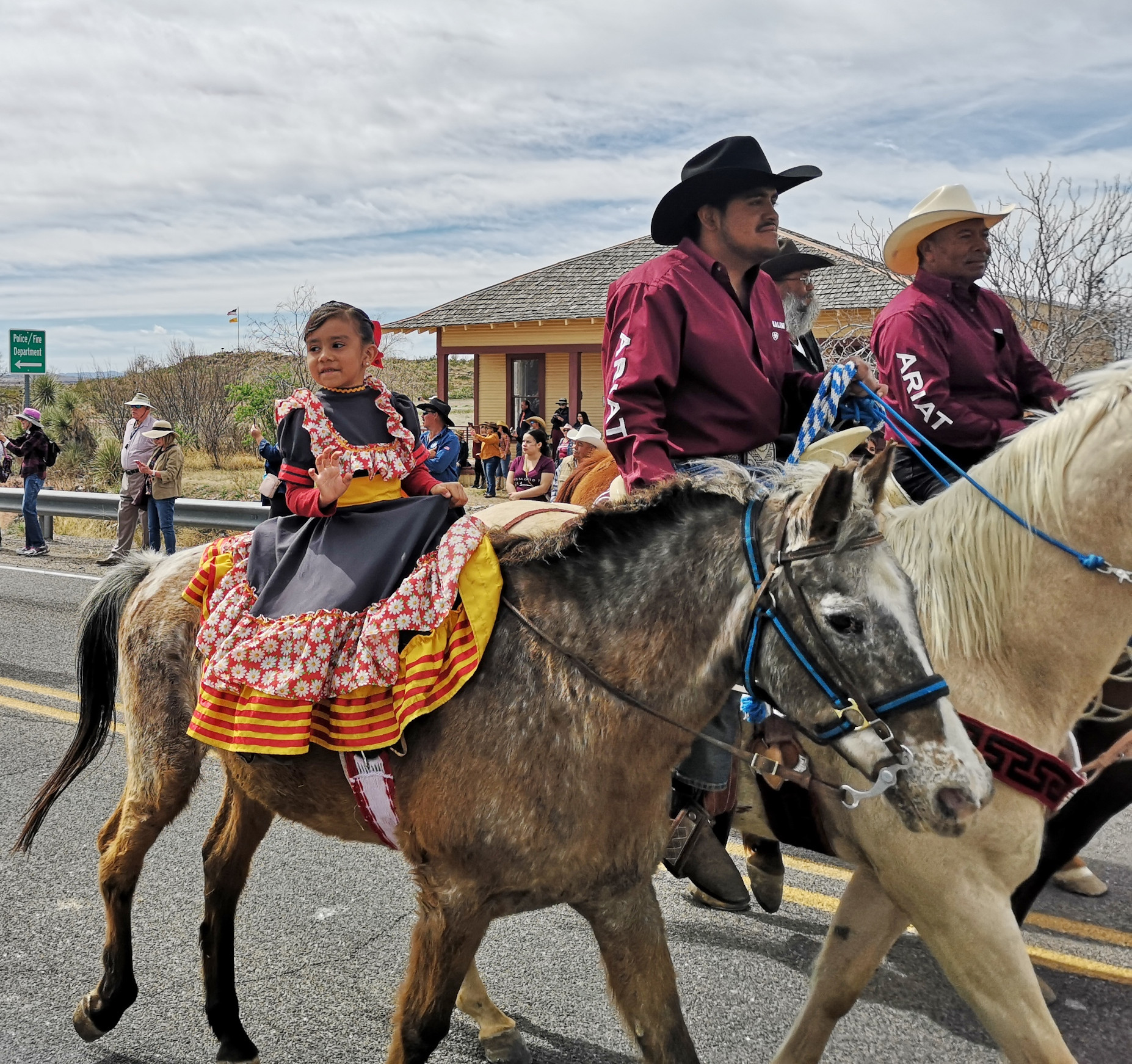 The Saturday parade was part of the Fiesta de Amistad and was to mark the day Pancho Villa and his Mexican army raided Columbus on March 9, 1916. Today they recognize the event with a remembrance ride, the US riders on horseback ride to the Mexican border (5 kms from Columbus), they meet up with the Mexican riders and together they return to Columbus. We had heard conflicting stories on the time of their arrival, so following Irma’s advice we headed out for 9am. Well, at this time, some of the riders were beginning to head south to the border. It would be a while before they all returned. We waited around, talked to other people waiting, watched a HUGE wide load try to navigate the corner (I’m sure they weren’t thinking it would be busy on a Saturday morning), watched the same green car and big quads drive back and forth multiple times. Finally, the parade of about 150 horses and riders came by and stopped right by us. We then followed them to the main plaza where they had an official ceremony. Then it was time to watch the dancing, check out the stalls and get some food. We were lucky to be there the day of the big Fiesta in this small town.