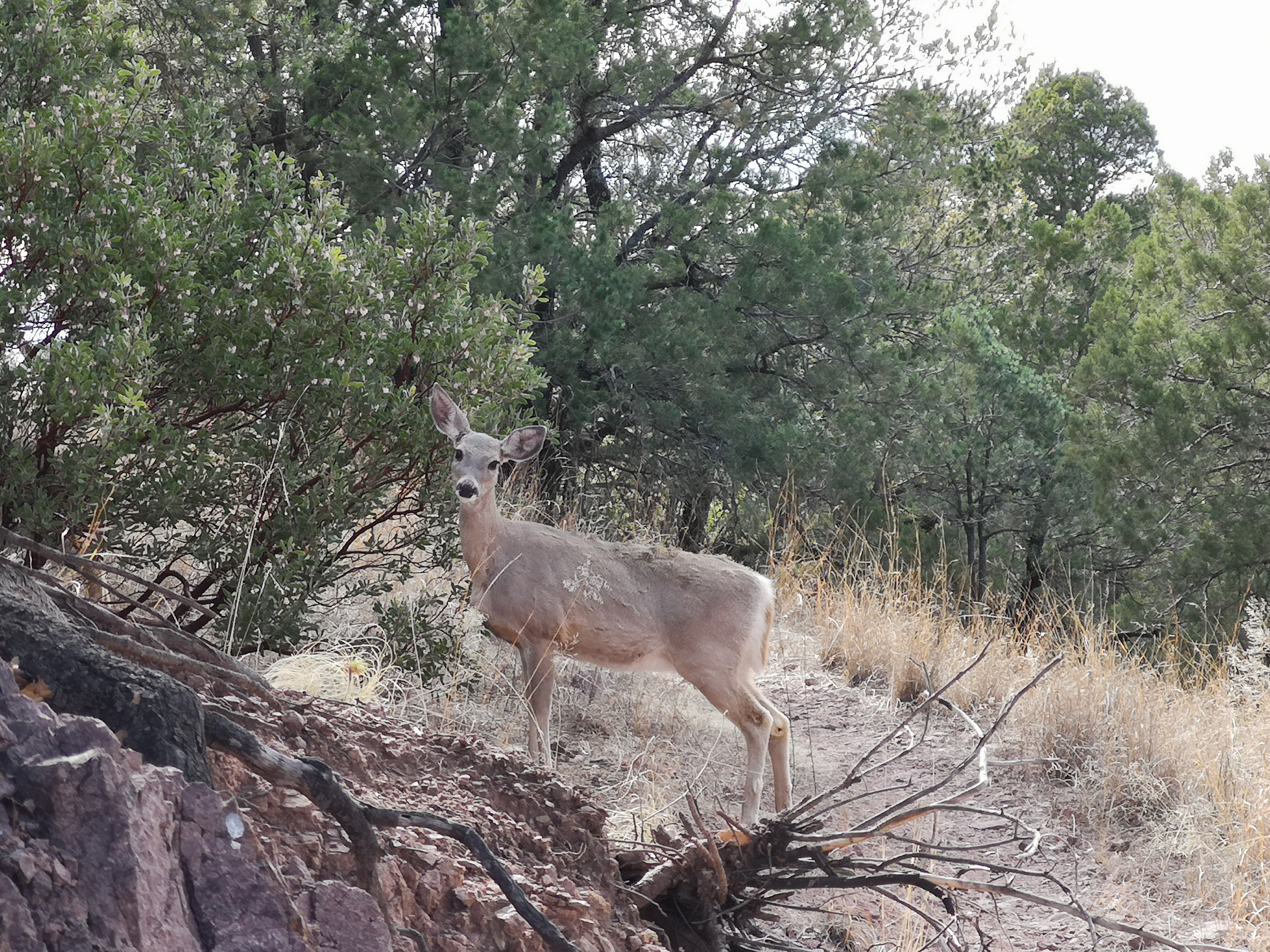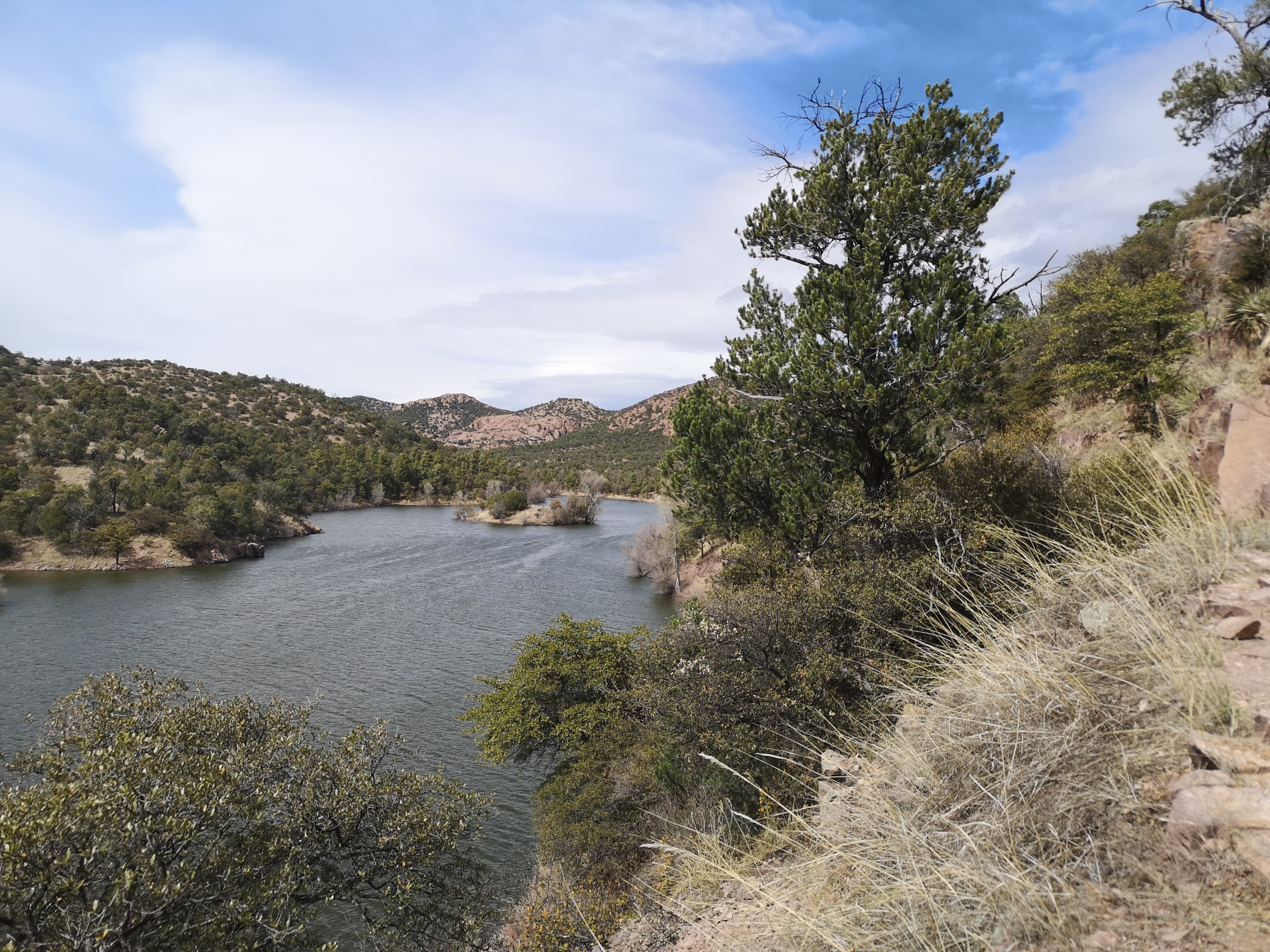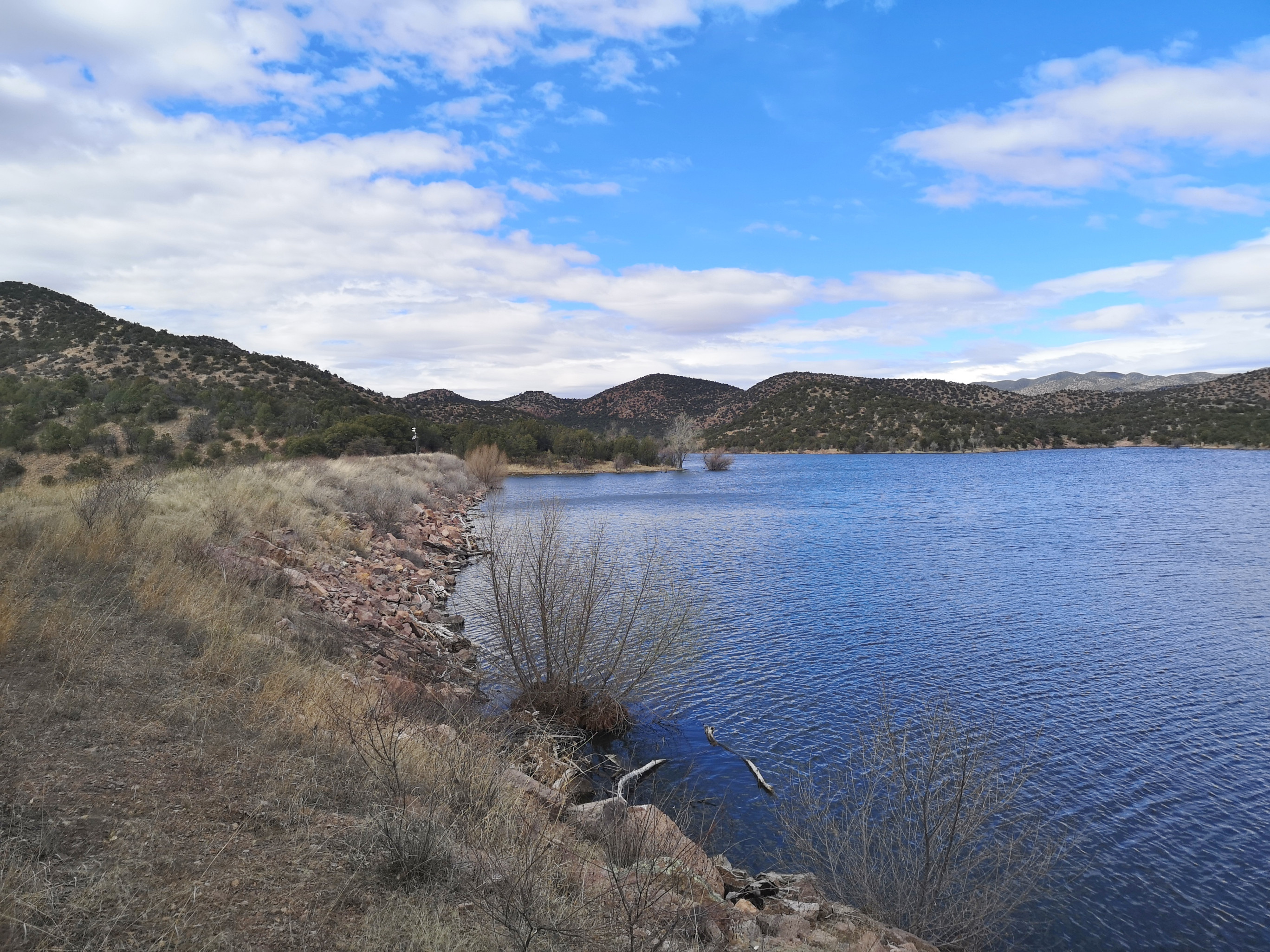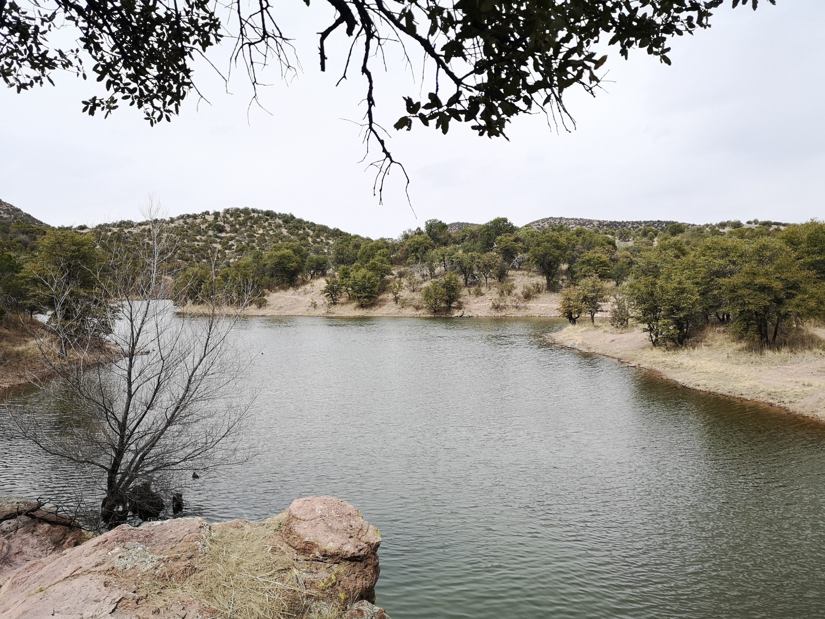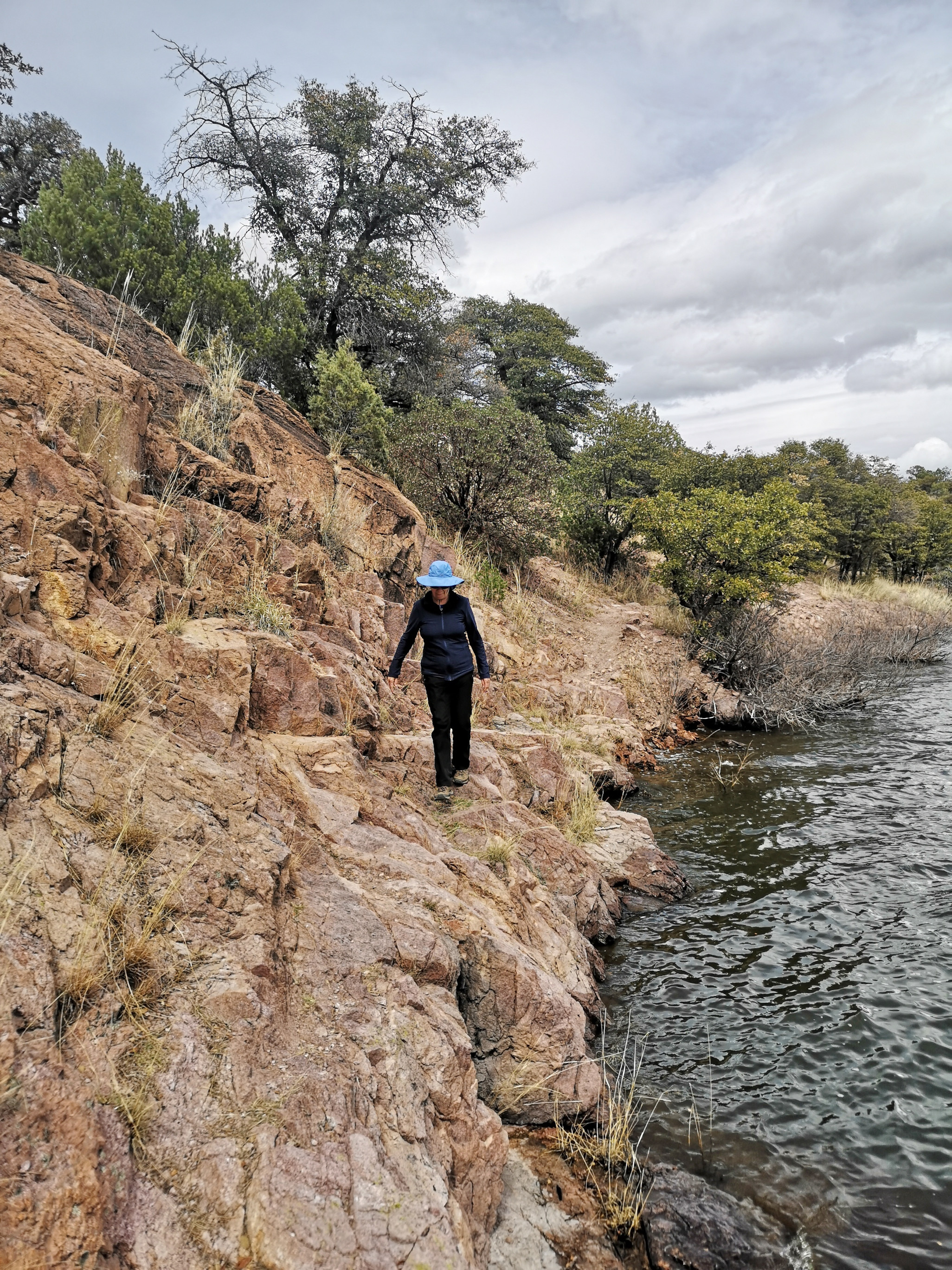 The next day we had no plans! I read about Parker Canyon Lake (part of the Coronado National Forest) and the woman at Sonoita mentioned it was a nice place to camp. She said it might be busy due to the school holidays, but after an interesting twisty narrow uphill drive we got a spot to camp for a couple of nights. The day we arrived it was hot and sunny and there was lots of activity on the lake. The next day we woke to light rain. When the sun appeared in the afternoon, we headed out to hike the lake trail. We passed a few people fishing but the lake was deserted. The trail hugged the lake and we saw lots of ducks, turtles, mule deer and herons. We managed to get the 10 km hike done with some sunshine before the clouds and rain set in for the night.