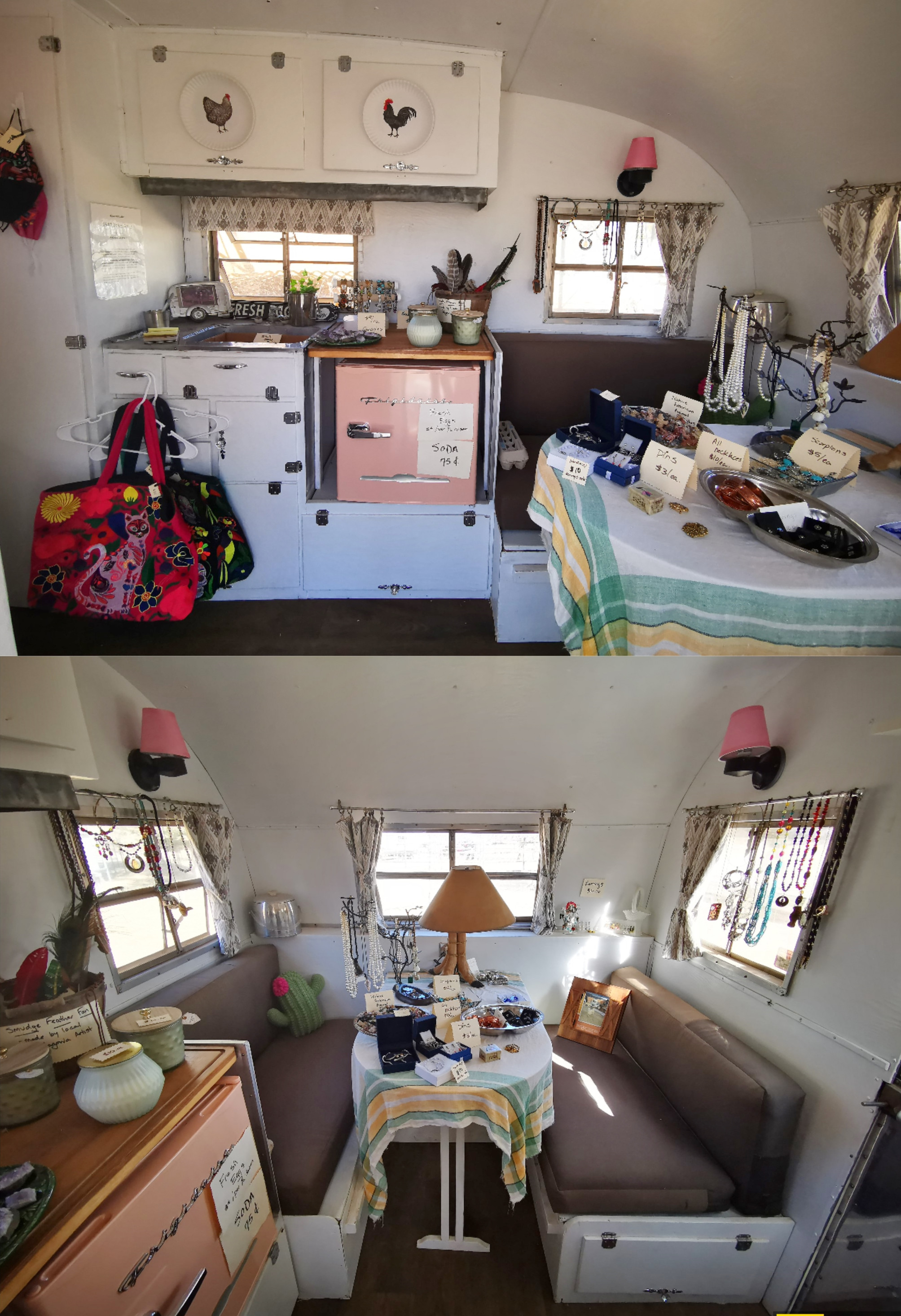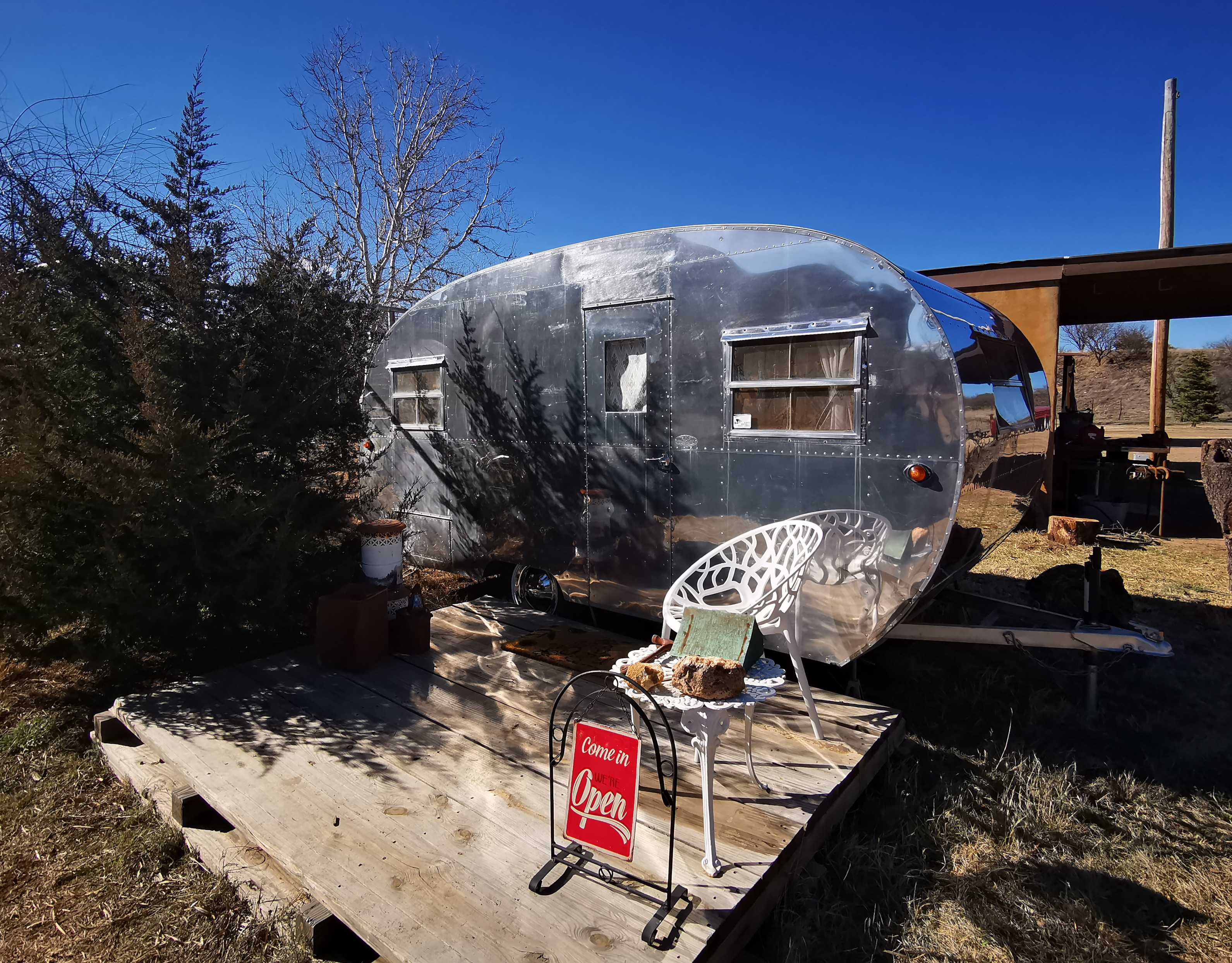 After a rainy night (the first rain we’ve had in months) we headed to the town of Sonoita in hopes of getting some cell connection so we could figure out where to go next. Once we confirmed a spot at the Sleeping Dog Ranch a Harvest Host location, we headed over to the Copper Brothel Brewery where they had excellent Porters and Stouts, my favourite was Scarlett’s Cranberry Fig Porter. For lunch we had Chili Relleno Bites, Desert Taco, and Spicy Chicken Enchiladas. We laughed at the receipt that said “Thank you for supporting your local brothel”😉 After lunch we went to the ranch and chose a water/electric site as the nights were going to be cool due to the elevation. After we were setup, we went to see the exciting ranch news, which was 2 newly born goats, just a couple of hours old. The ranch did not have cell phone coverage but did have incredibly fast Wi-Fi access so we decided to stay for 2 nights to get some blogging done and do some research on what we would do next. They also had a 1947 Boles Aero trailer they used as their shop, and it was #340 out of 500 that were built.
