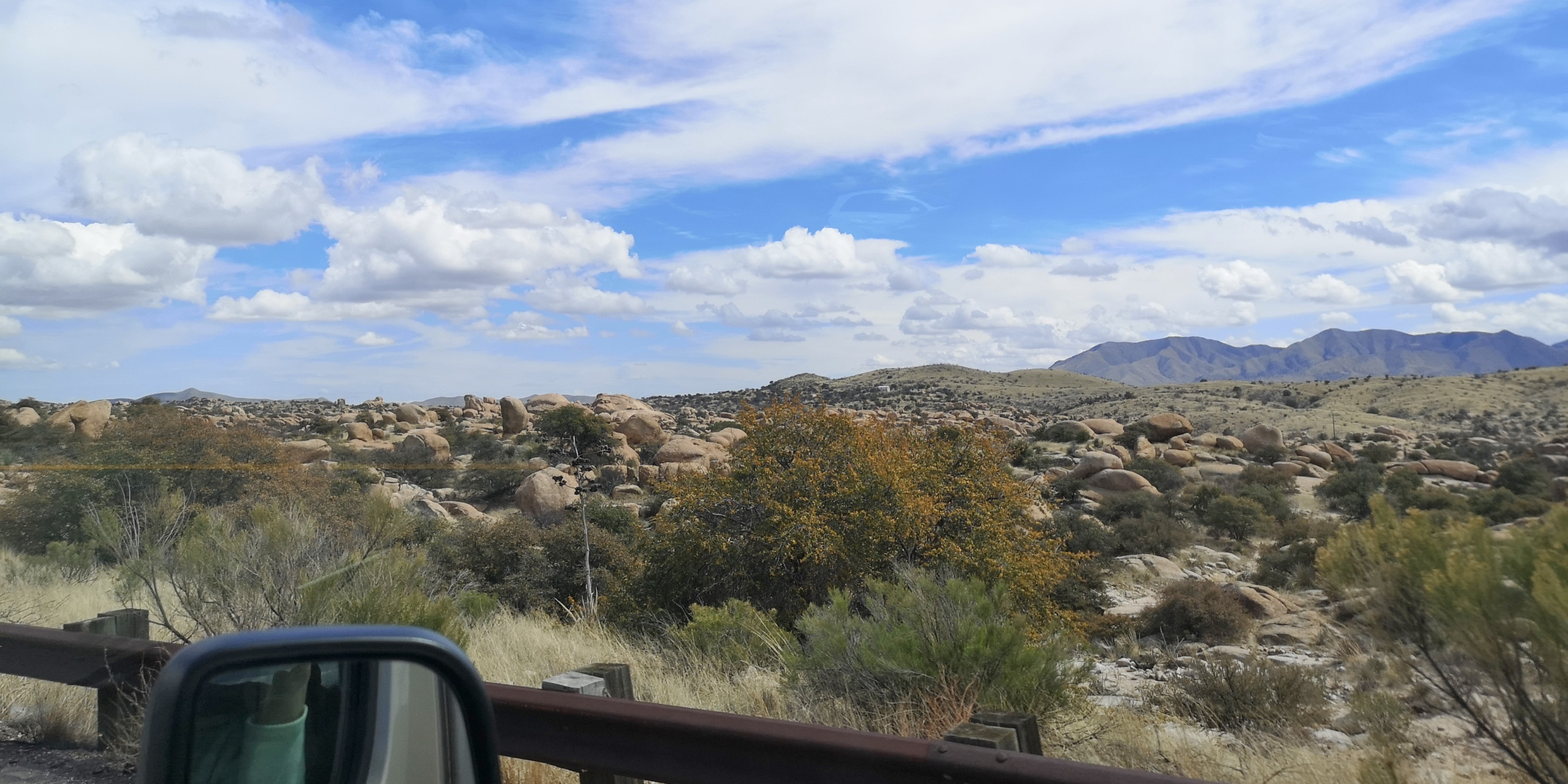 As we drove into Sonoita Vineyards we could see burnt grass. The owner apologized for the smell telling us a neighbour accidently set his hay on fire and the fire spread quickly. They had smoke damage in the main building and lost 20,000 gallons of wine (so sad). They have a fabulous view from their property, and we enjoyed sampling 4 wines out on their upper balcony before making a few purchases. The insurance company had arranged for the restoration crew to start their work at the winery on the morning we left. We were tempted to say that we could fill our freshwater tank with the smoky wine they had to dump😉