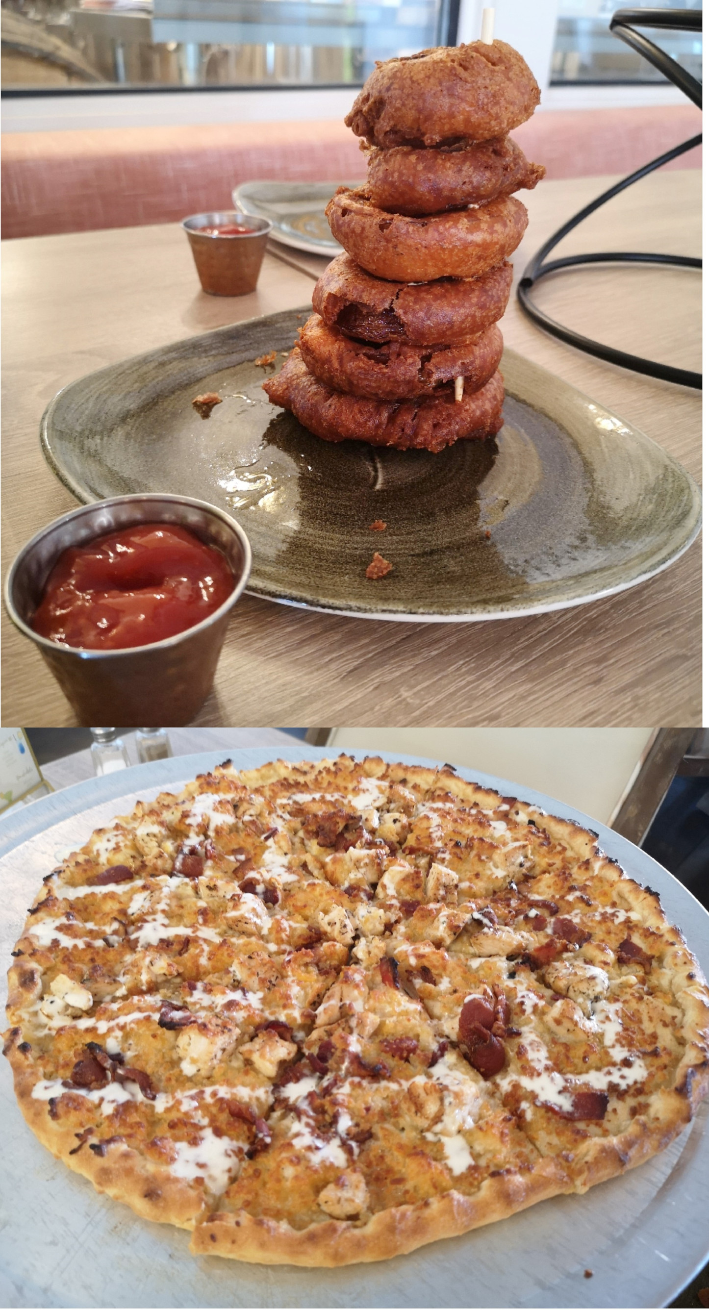 The next day we drove the I-10 highway back towards New Mexico and saw some interesting rock formations along the route. To break up the driving we had selected a Harvest Host winery called Pillsbury Wine Company near Wilcox Arizona but in that same area was a Brewery/Farm/Restaurant called Tirrito Farm so we decided to stop for there for lunch. They had some really good beers including a Milk Stout that was my favourite and we had an Onion Ring Tower appetizer and then we split the Farmhouse Pizza (with several slices leftover for later). This farm had a really pretty location and they also served dinner, so we’d like try them as a Harvest Host another time.