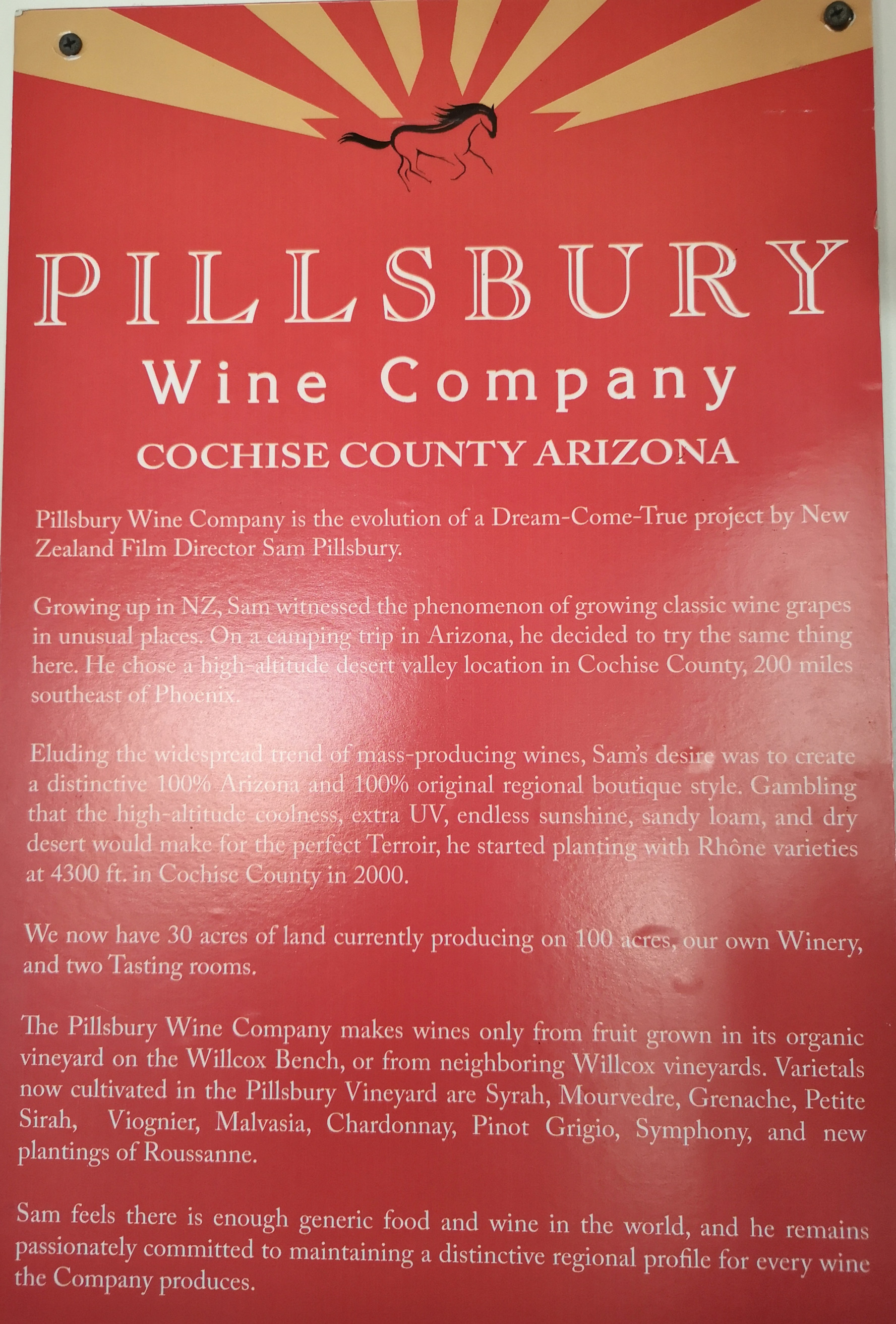 As mentioned, our last stop on this short stint in Arizona was Pillsbury Wine Company. The owner of the winery was Sam Pillsbury who was a film director from New Zealand who did films like Free Willy 3. These were by far the best wines we sampled in Arizona as they made all their white and red wines in the dry style we like. Terry the server was great, your tasting included any wines they had open, in our case that was about 14 samples! We really liked their Rose and Chardonnay as well as their medium priced reds. We also liked their high end reds but they were $120 USD per bottle and we simply couldn’t see spending that much, especially with the lousy CAD to USD exchange rate right now! We had a pretty place to camp for the night between the vines and a row of trees. There were 4 other couples also camping through the Harvest Host membership that night so the tasting room was busy. The next morning Sam had his irrigation system working so water was dripping to water the vines. This would for sure be a repeat location when we’re next back in this area.