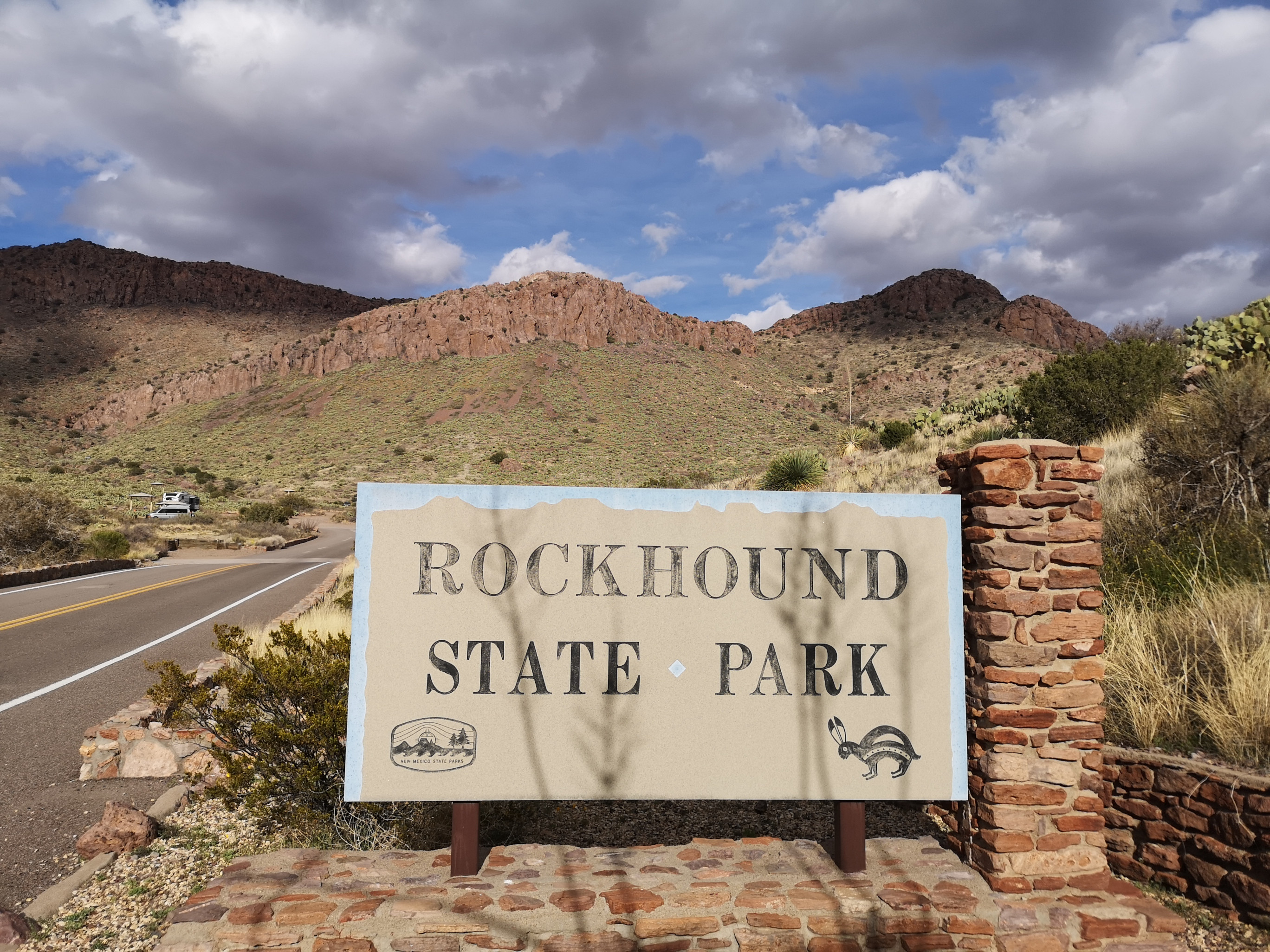 We were on our way to Rockhound SP when the RV automatically drove into the Lacombe winery, we’re not sure how that happened😉. We went in for a tasting (we had enjoyed their wine at the Lacombe Bistro in Las Cruces). Since they are a Harvest Host, we decided to book in for the next night since we already had a booking at Rockhound SP. At Rockhound we lucked out with one of the best and biggest sites (Site 16) with a great view and we even got escorted to our site by the camp host! Since we could only get one night, we went out and did the Thunder Egg Trail (didn’t find the thunder egg rocks), then connected into the Jasper Trail. This is the only State Park that allows you to take something, you can take small rocks, so Sharon had a small collection by the end of our hike.