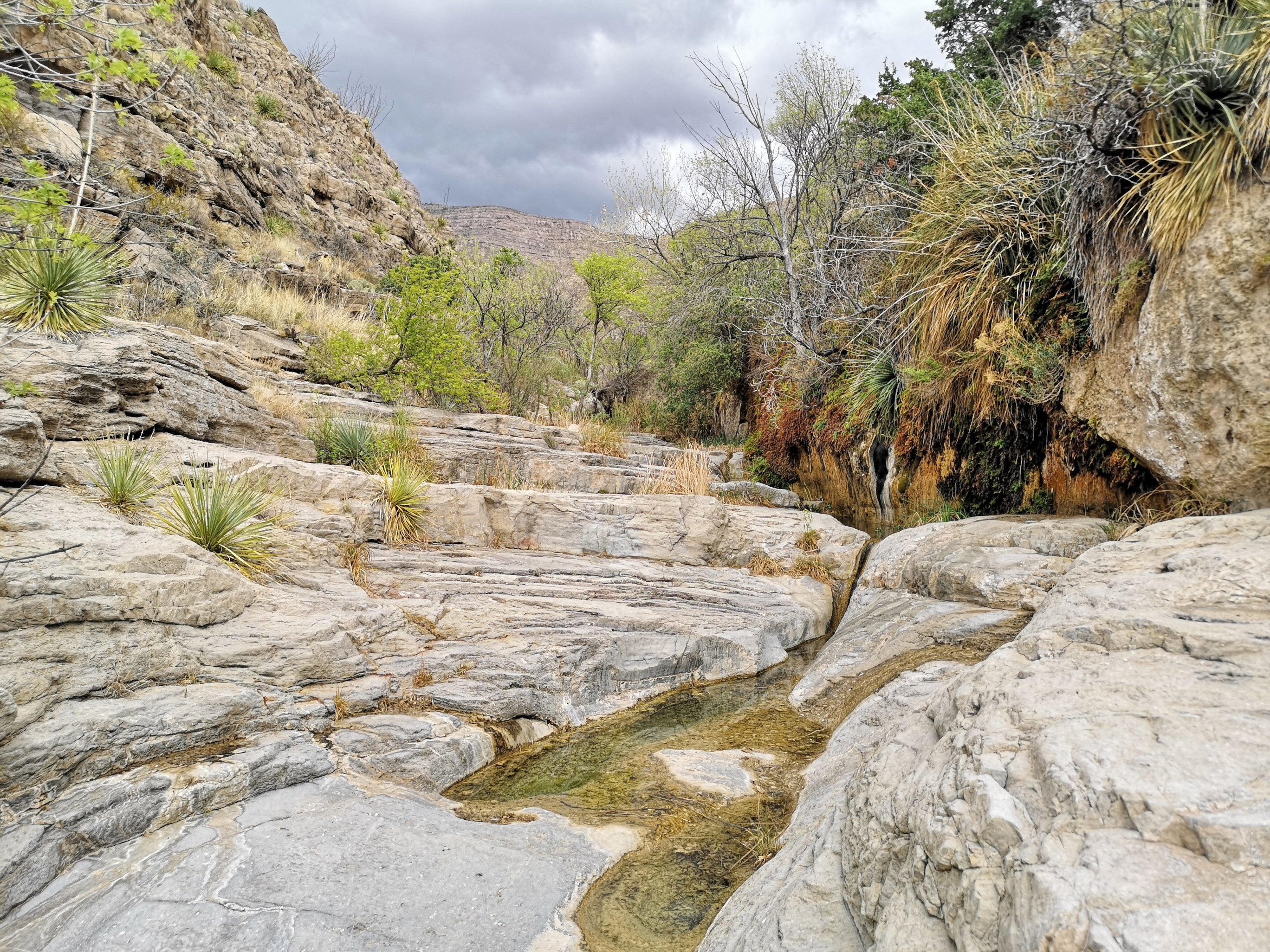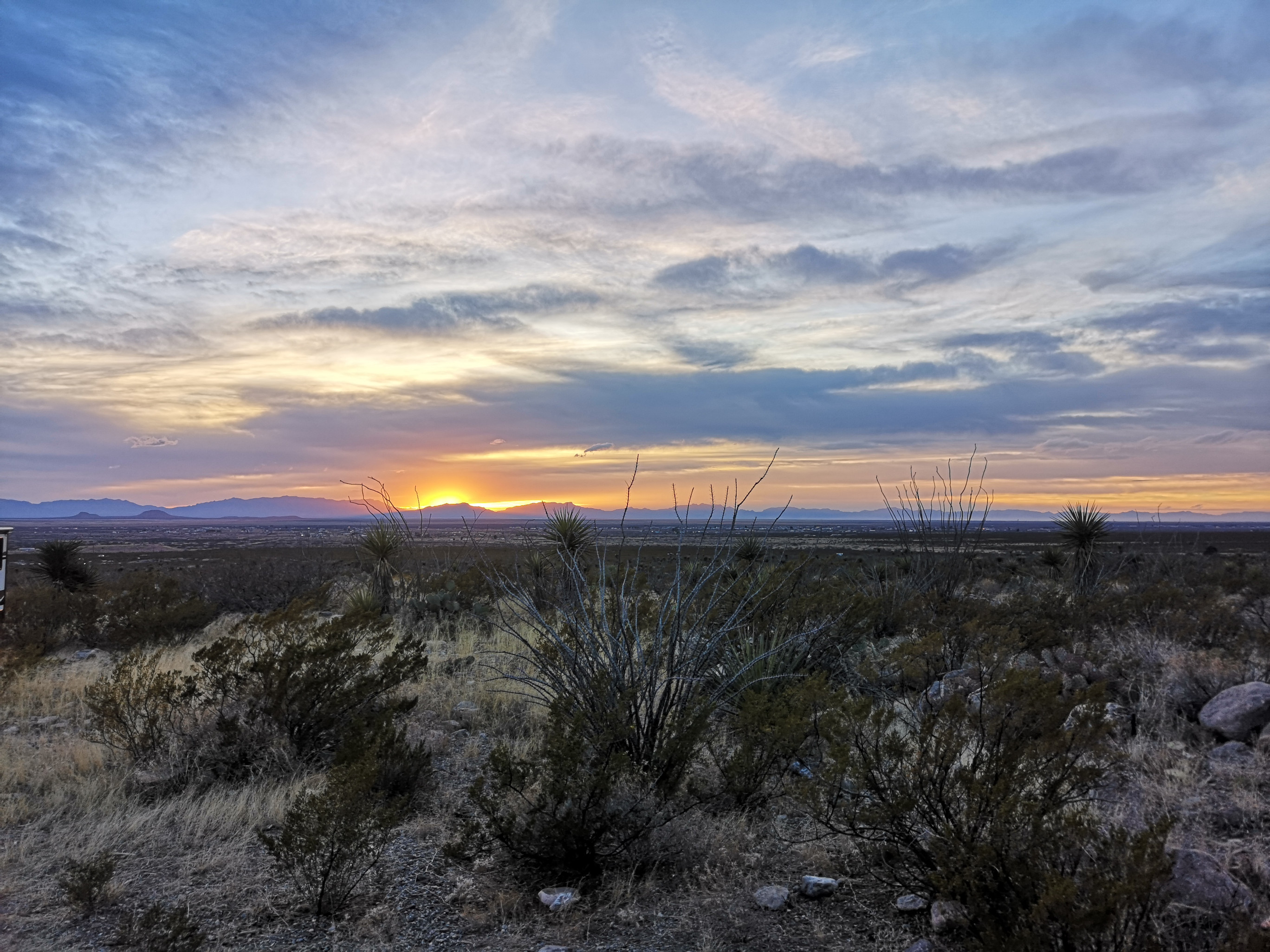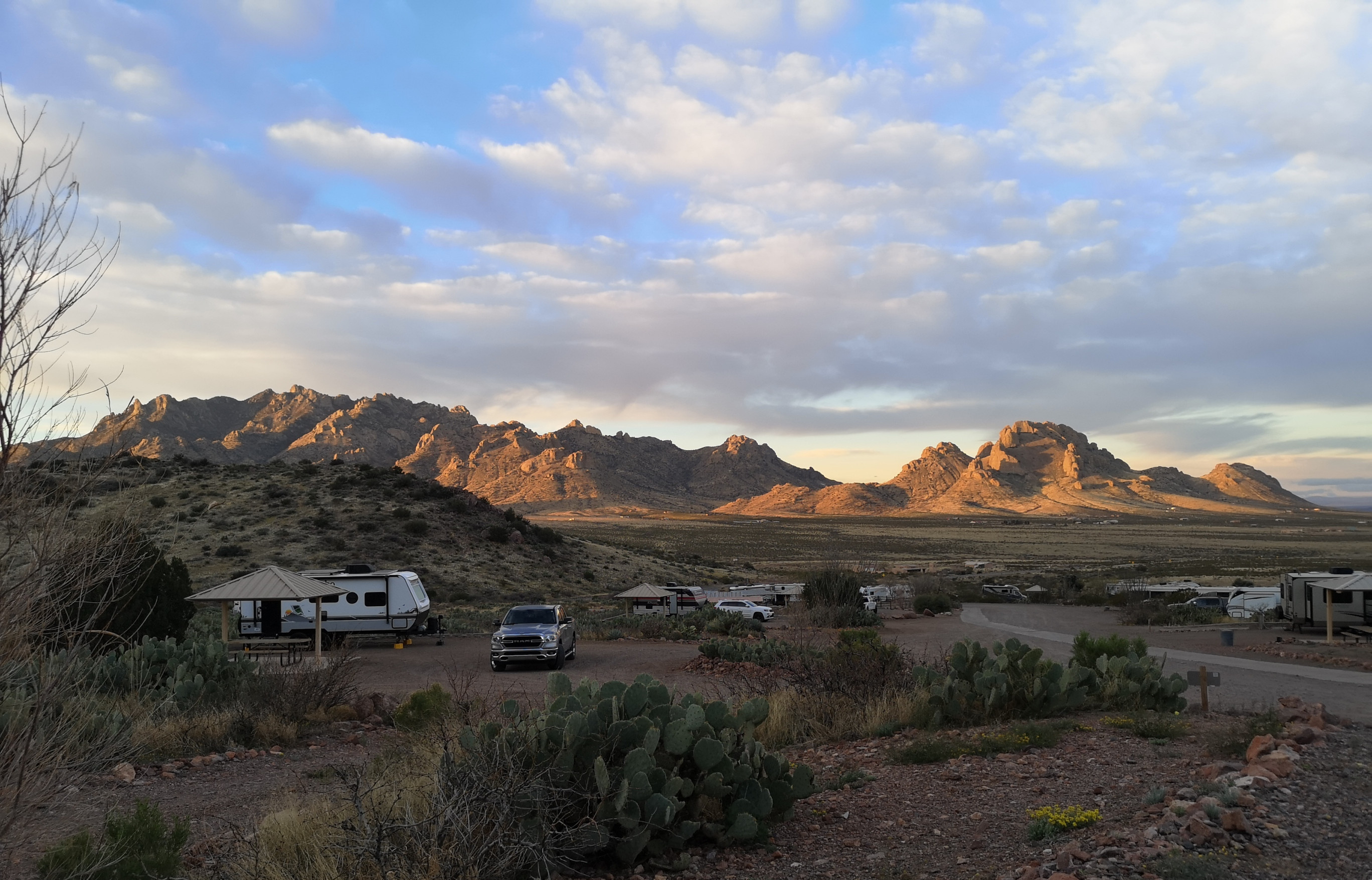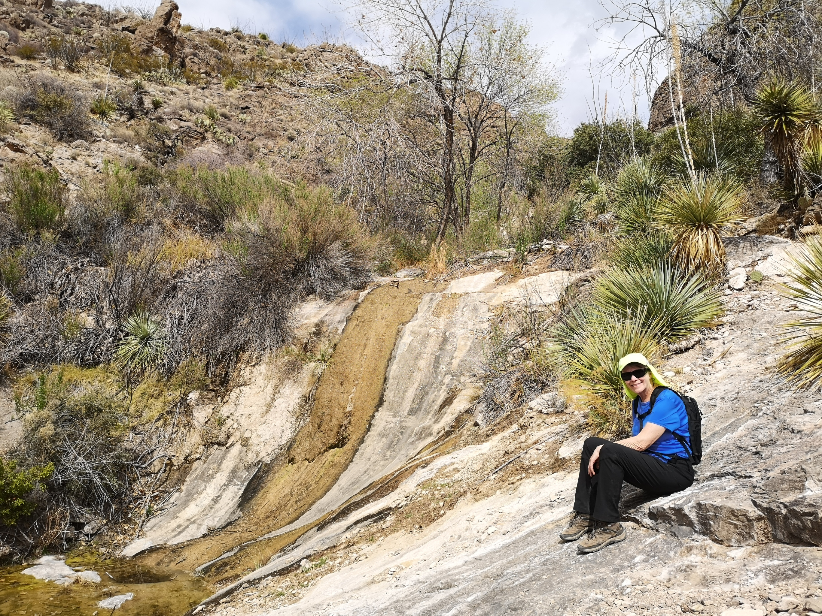 After spending the morning getting a regular site in the campground, we walked through the cactus garden and hiked the Riparian Nature Trail. Along the nature trail we learned about Francois-Jean “Frenchy” Rochas who was a French Immigrant who lived in Dog Canyon from 1886 through 1894. In his short 8-year residency he tapped water from Dog Canyon, grew a successful orchard and vineyard in the desert, tended his cattle herds, and built rock walls around the canyon to contain the cattle. Frenchy was mysteriously found dead in his cabin from a gun shot wound. The archaeologists excavated the remains of the cabin in 1978 and found lots of artifacts. We hiked up the canyon to find some of the freshwater springs and see the remains of the aqueduct used to bring the water out of Dog Canyon by Oliver Lee. It was very cool to see how the rocks had become smooth over time from all the water, again, not much water right now but still a beautiful area to discover. After the trail we saw some of the exhibits in the museum and that evening we had a nice reverse sunset.