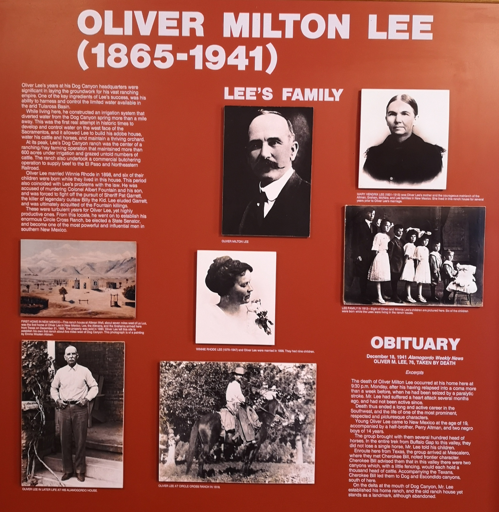 - Oliver Lee was born in 1865 in Buffalo Gap Texas. He moved to the Dog Canyon area in 1889 and understood the power of having water rights, especially when the railroad was coming through.