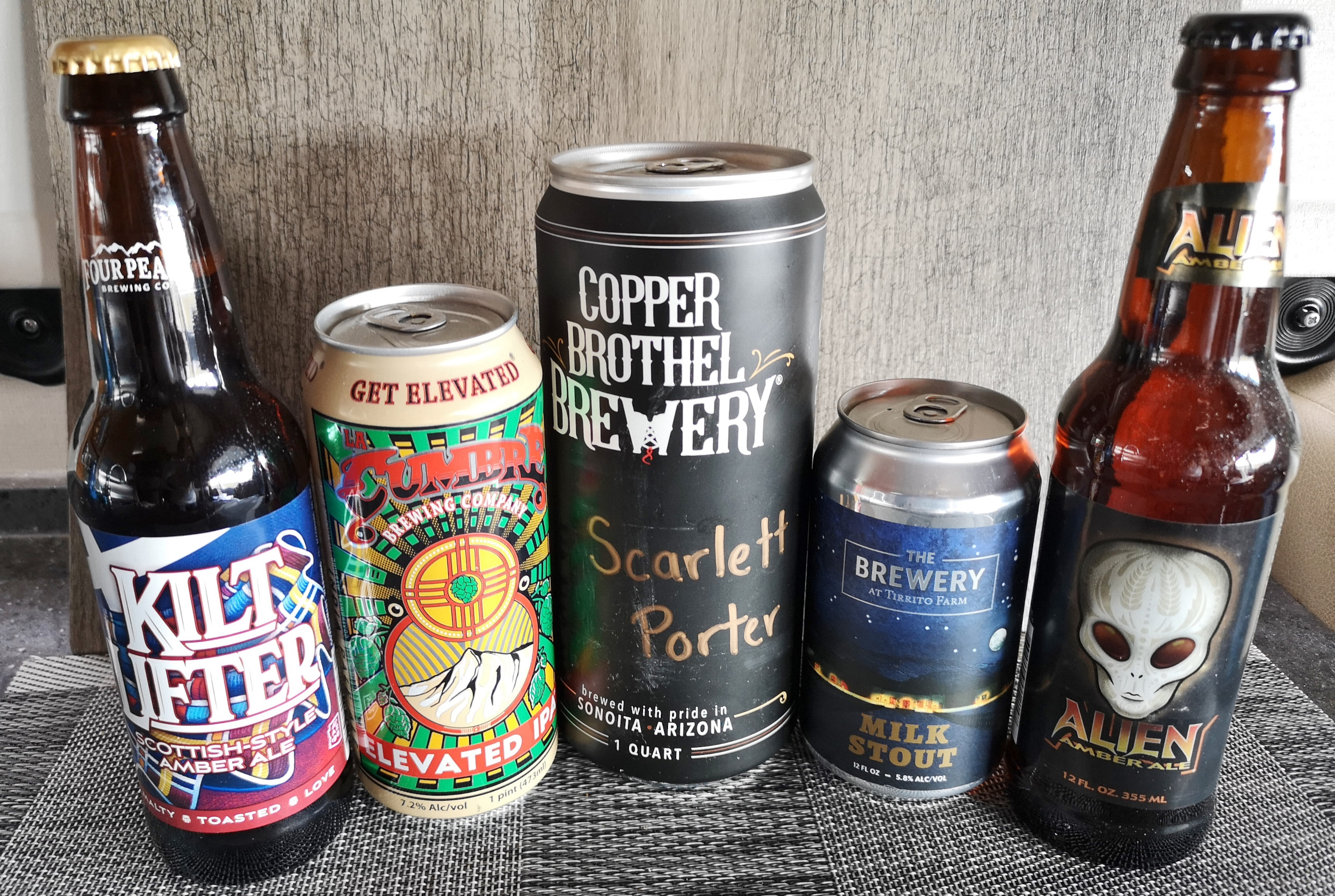 The next morning when we were leaving the park, Dawn and Kirby were also leaving so we got a shot of the 2 RVs at the dump station. I’ll close this blog off with my next beer selection. The favourite here was the Copper Brothel Brewery Scarlett Porter but the Milk Stout from Tirrito Brewery was close. The names were fun on 2 of the others with Kilt Lifter and Alien😉