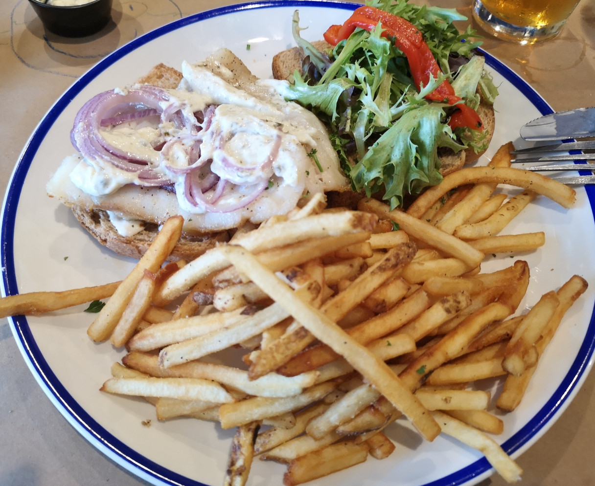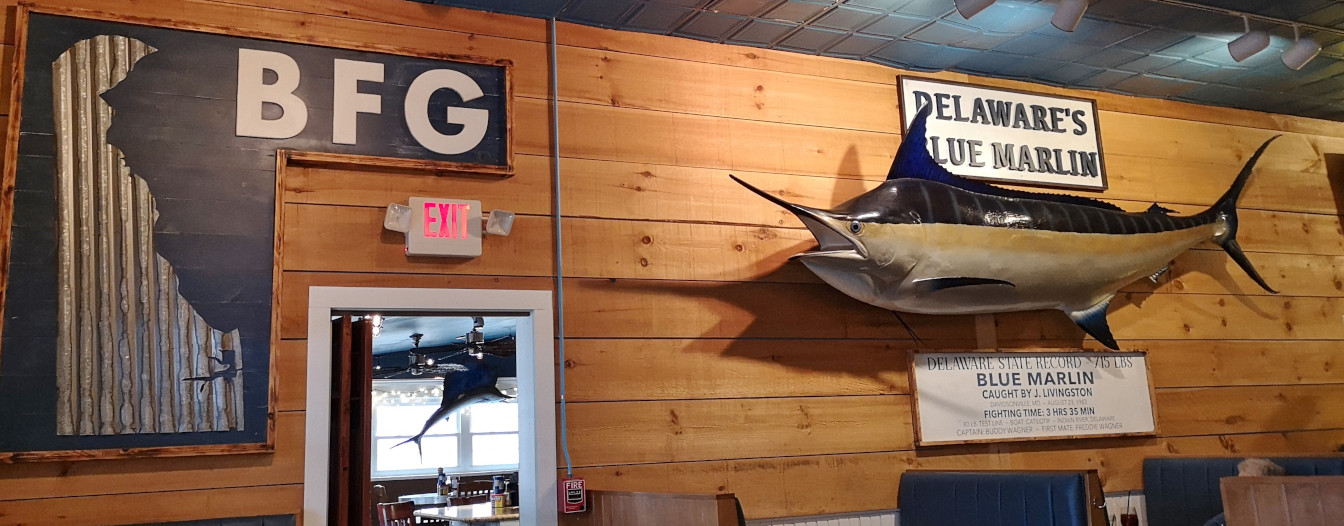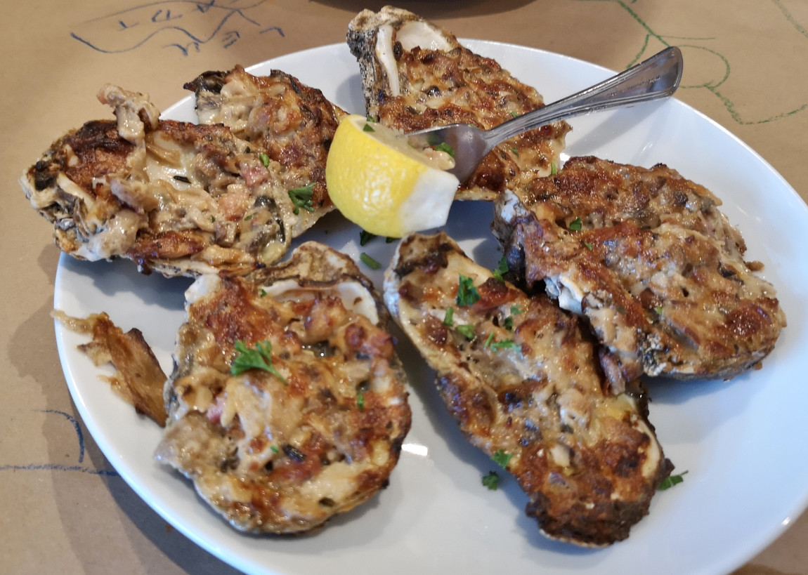 As we were leaving Cape Henlopen SP our campground neighbour told us about a couple of places to visit; Dogfish Head Brewery was too big of a back track so I had to settle for a mixed case of their beer, and about Old World Breads which we did go visit. The bakery was incredibly small but they had a constant line up of people and lots of interesting products to choose from including some delicious olive bread and hearty ancient grain bread. After our bakery stop, we decided to stop at the Big Fish Grill for lunch, we shared some baked oysters and then I had the grouper sandwich and Sharon had the crab cake sandwich, and we followed that with a mega piece of peanut butter pie😉 Right next door they had a seafood market so we got some steamed gulf shrimp to take away for dinner later.